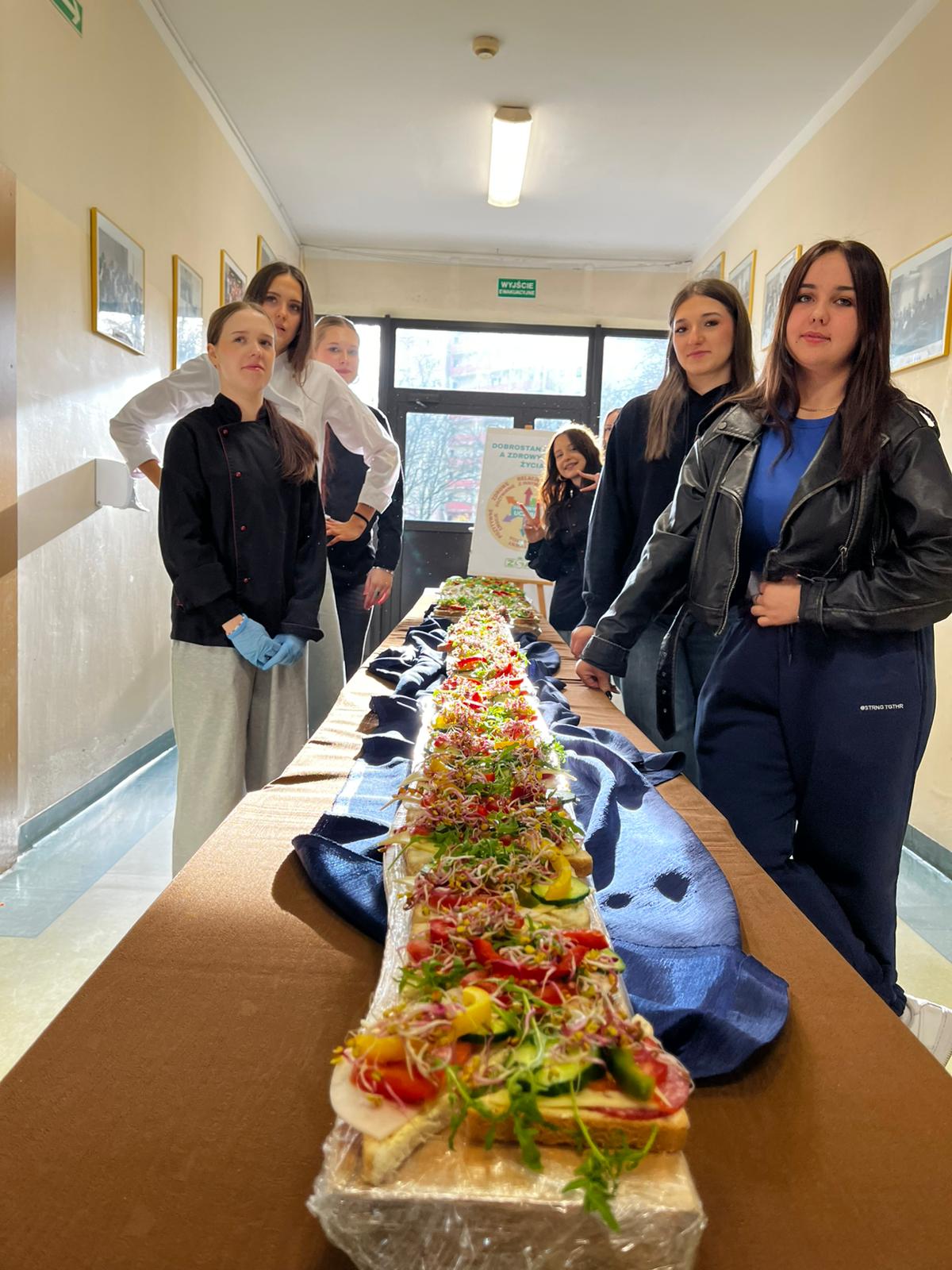 W naszej szkole obchodziliśmy Europejski Dzień Zdrowego Jedzenia i Gotowania. W ramach akcji „Śniadanie Daje Moc" klasa 4 TU przygotowała wyjątkową atrakcję – najdłuższą i najsmaczniejszą kanapkę, która od razu stała się hitem całego wydarzenia!