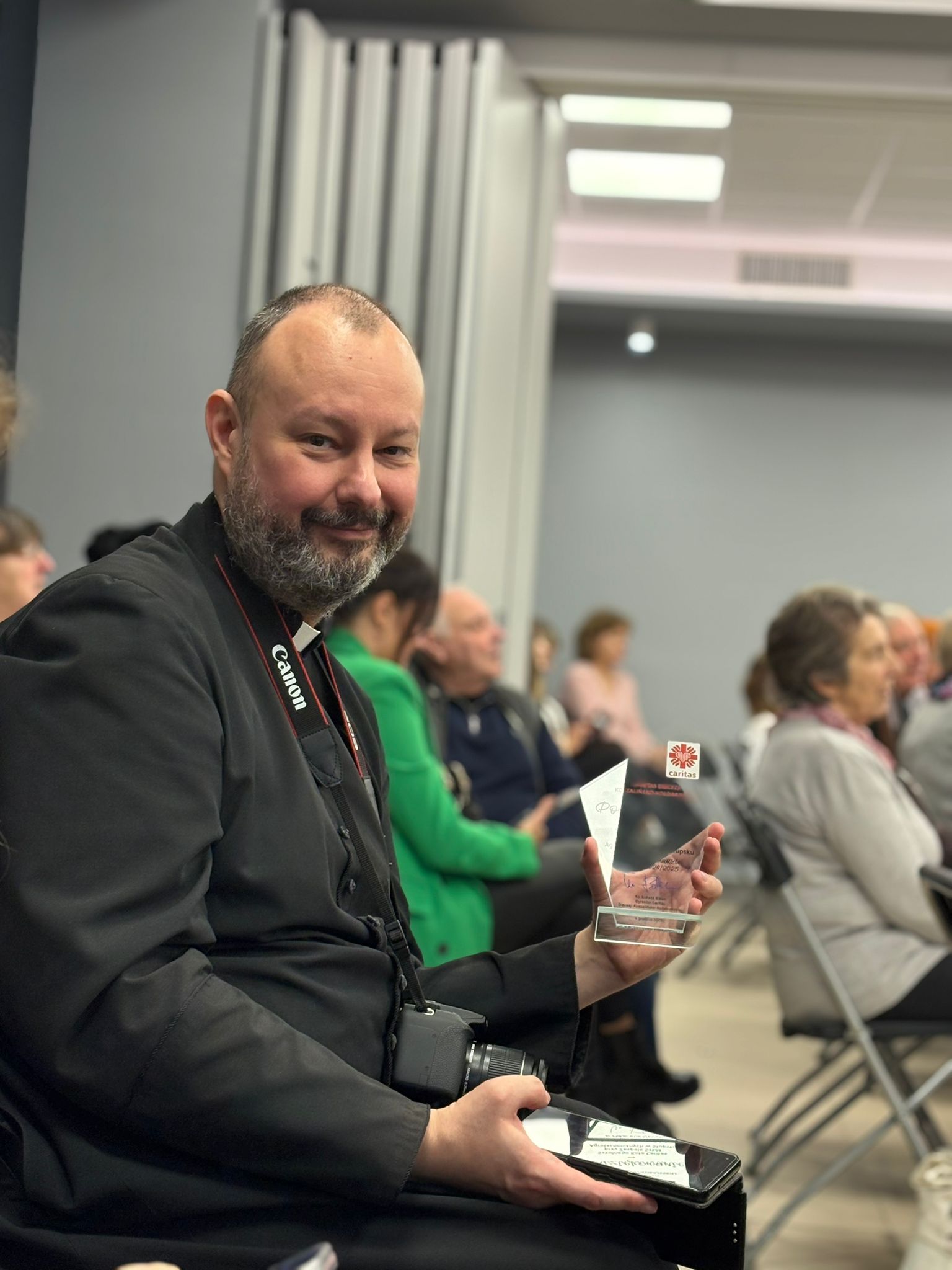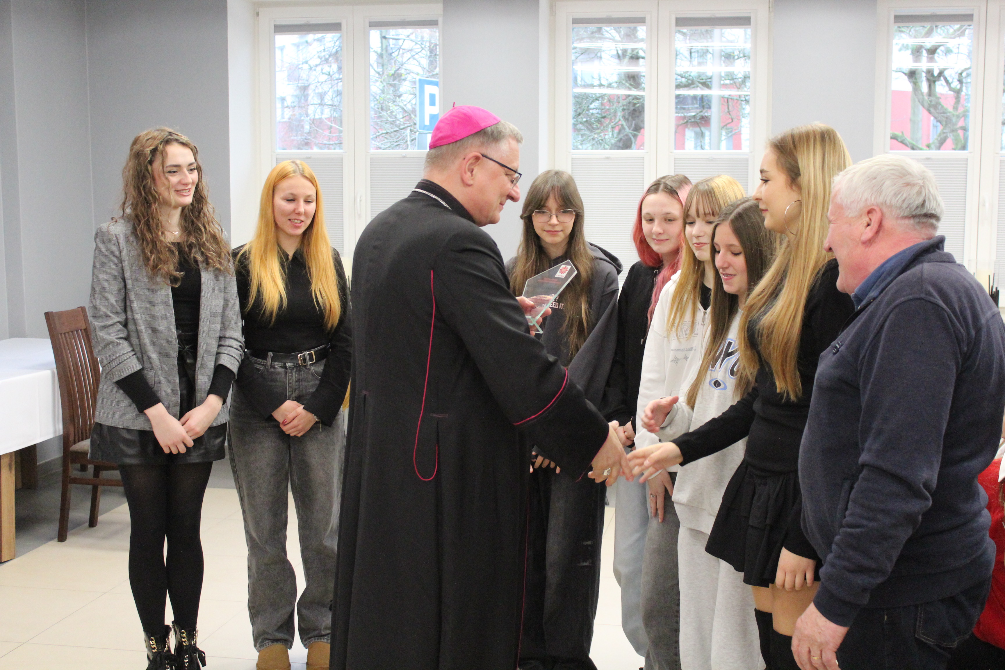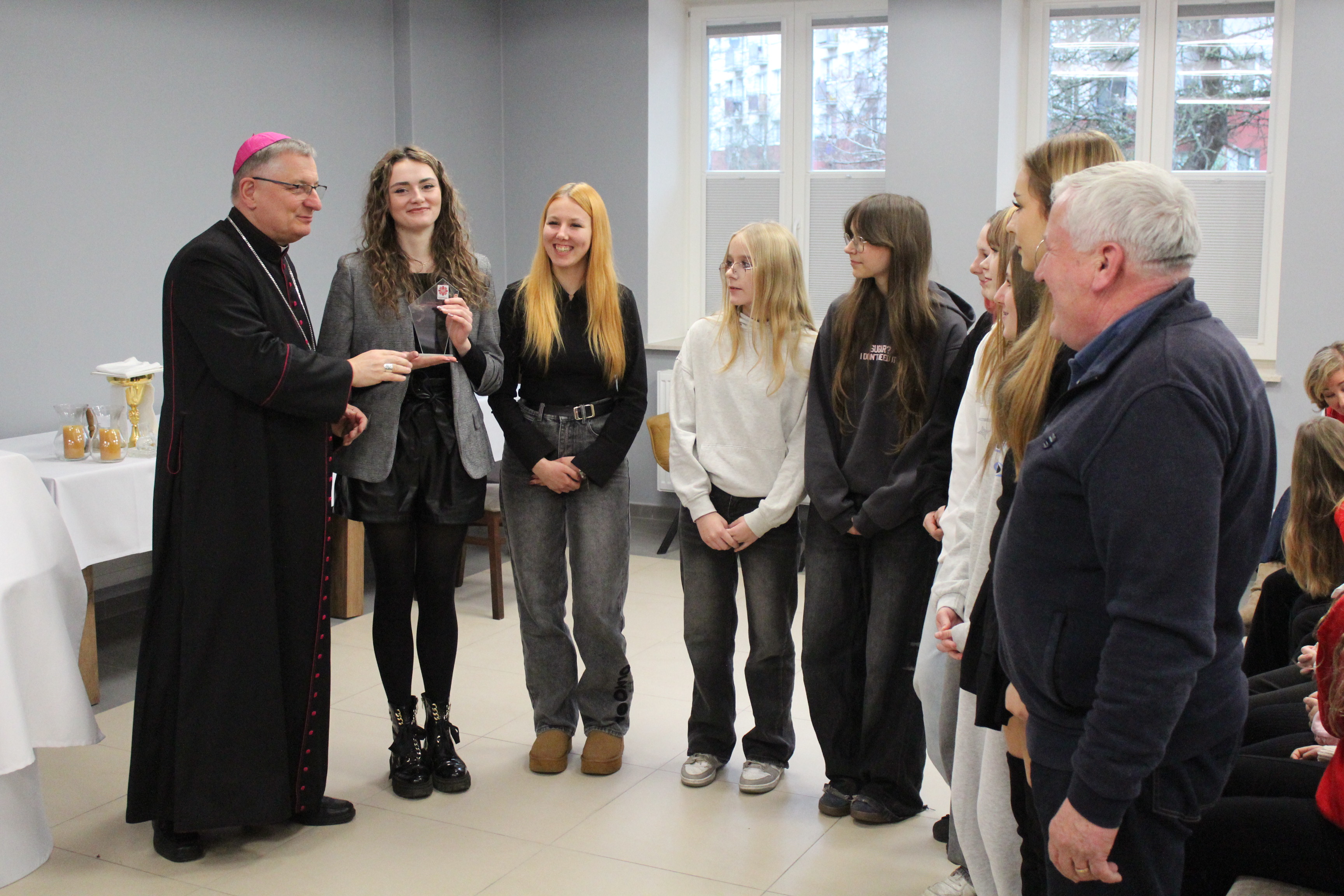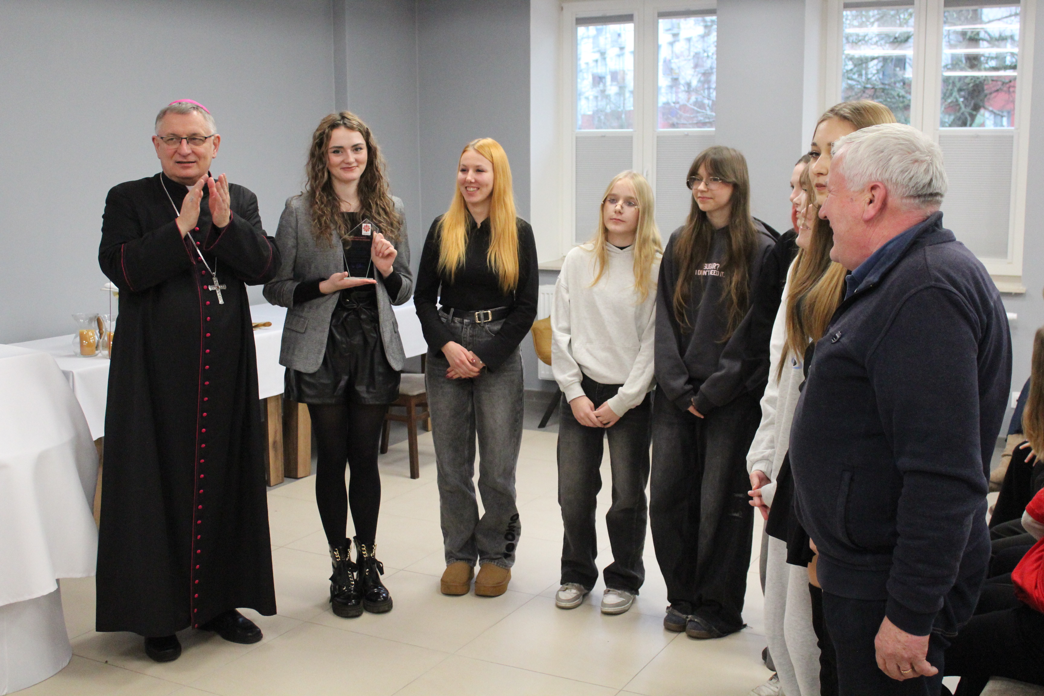 Po niej miała miejsce kolejna oficjalna część gali – przedstawienie ubiegłorocznej pracy przybyłych Szkolnych Kół Caritas oraz Parafialnych Zespołów Caritas, a także wręczenie pamiątkowych statuetek. Cała uroczystość zakończyła się poczęstunkiem.