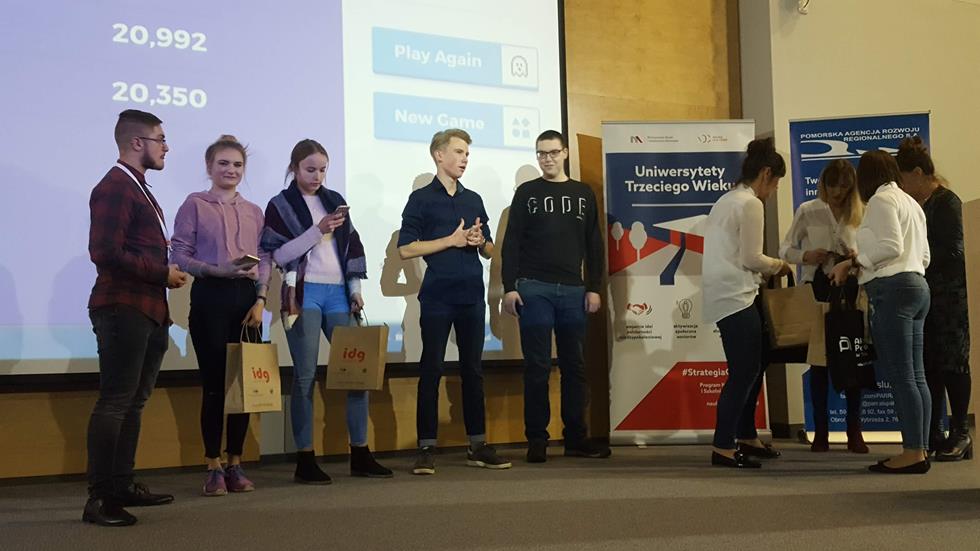 W Pomorskim Dniu Przedsiębiorczości uczestniczyli uczniowie z trzeciej klasy technikum informatycznego oraz pięciu uczniów z czwartej klasy technikum odnawialnych źródeł energii, którzy dodatkowo zaangażowali się w grę miejską i aktywnie rywalizowali z drużynami z innych szkół ponadgimnazjalnych.