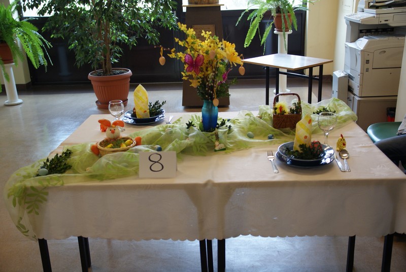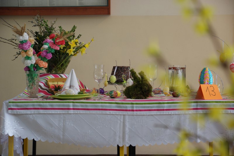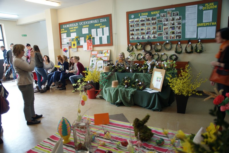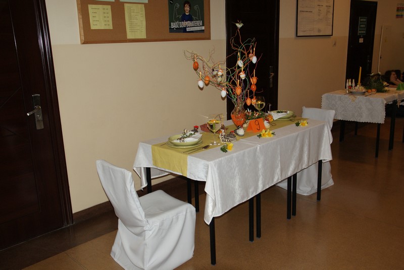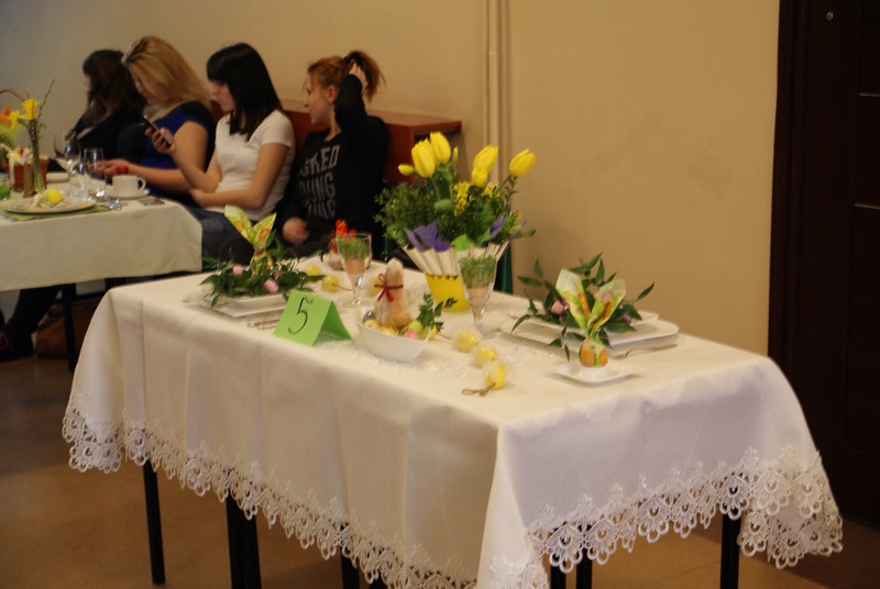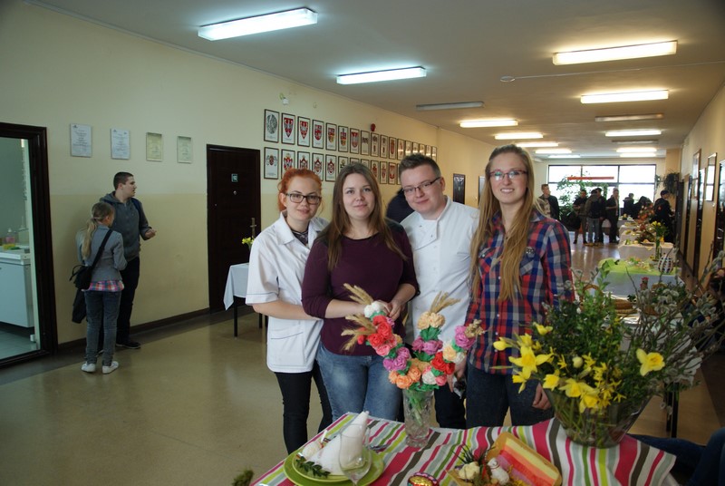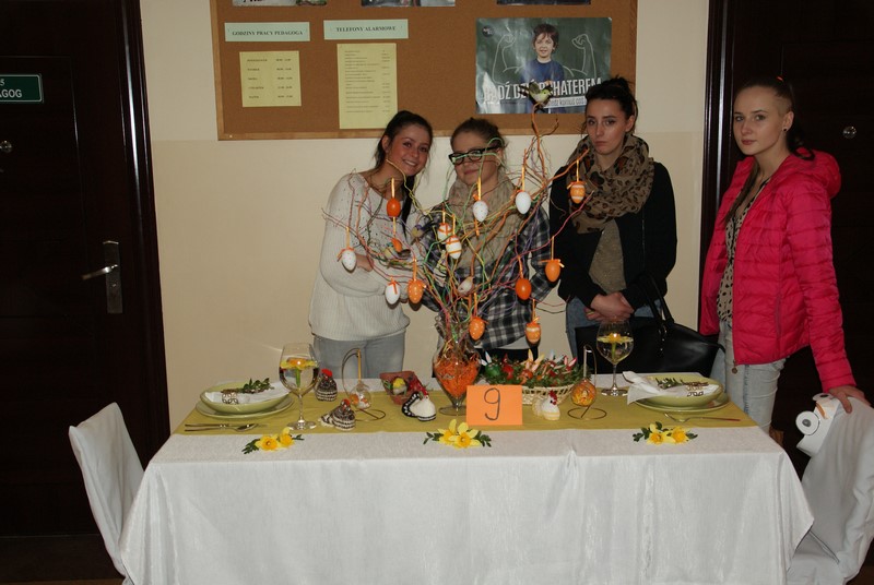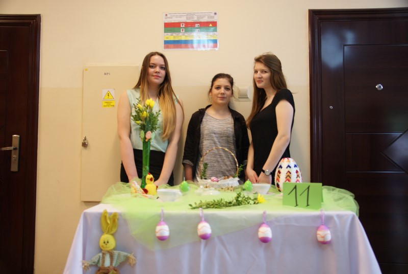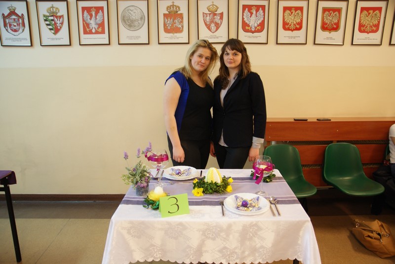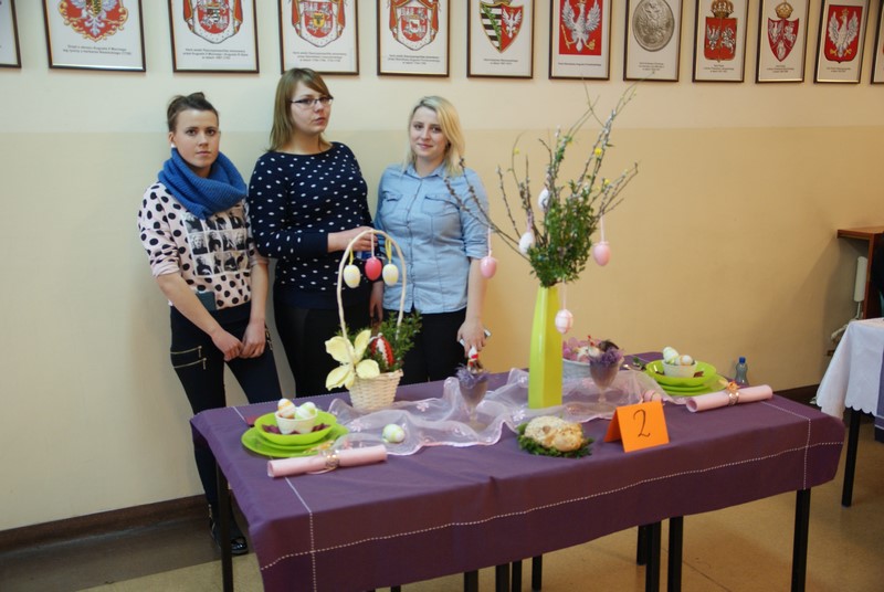 W dniu 24 marca 2015 r. w naszej szkole odbył się konkurs na najpiękniejszy "Stół Wielkanocny". Do konkursu przystąpiło 13 dwuosobowych zespołów, składających się z uczniów klas I - IV kształcących się w technikum oraz szkole zawodowej. Celem było kultywowanie wielkanocnych tradycji świątecznych oraz rozwijanie wrażliwości estetycznej uczniów. Młodzież bardzo poważnie potraktowała konkurs i dołożyła wielu starań, aby ich stół prezentował się jak najlepiej. Wybór był niełatwy. Za najpiękniejszy uznany został stół przygotowany przez uczennice klasy III ZK w składzie Karolina Pieczyńska i Anna Malec, drugie miejsce zajęły uczennice klasy III TUb - Karolina Kondraciuk i Klaudia Brzozowska, a trzecie miejsce uczennice klasy IV TŻiGD - Justyna Konferowicz i Natalia Kowalczyk. Wszyscy uczestnicy otrzymali dyplomy a zwycięzców dodatkowo nagrodzono upominkiem.