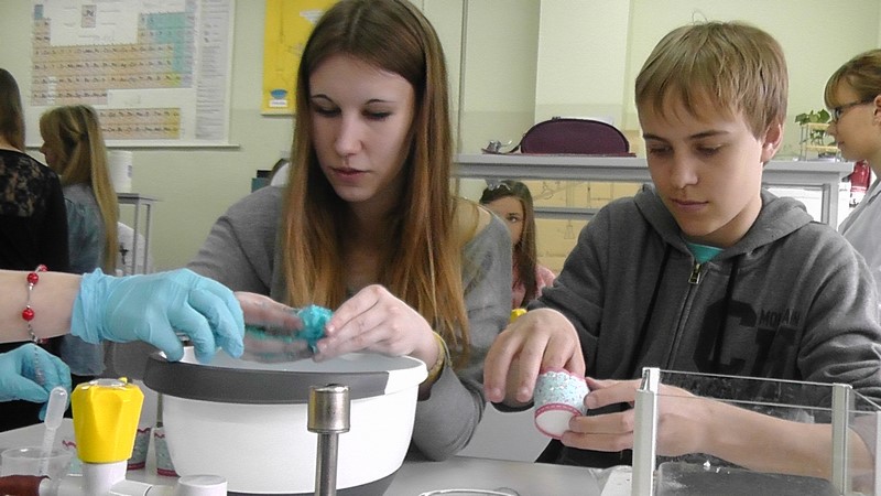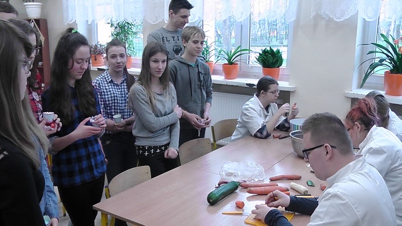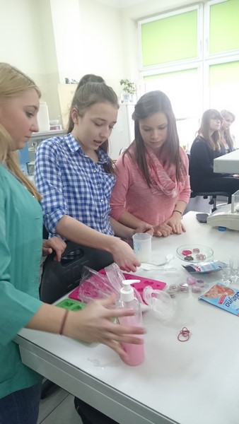 17.04 odbyły się w naszej szkole warsztaty i lekcje otwarte dla gimnazjalistów. Naszymi gośćmi byli uczniowie 3 klasy gimnazjum z Potęgowa. W laboratorium gimnazjaliści wykonywali samodzielnie doświadczenia chemiczne, mydło i kule musujące do kąpieli oraz wzięli udział w zajęciach lekcji otwartych z architektury krajobrazu, geodezji i żywienia (carving).