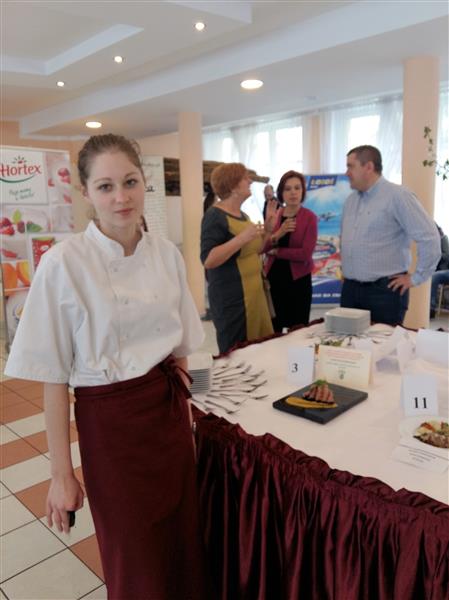Patrycja Korochoda, uczennica klasy IV Technik Technologii Żywności, miała za zadanie przygotować samodzielnie potrawę zwracając uwagę na wszystkie elementy kulinarne. Smak to podstawa, ale walory estetyczne i inwencja twórcza na talerzu też się liczyła. Patrycja przygotowała "Pierś z kaczki glazurowana miodem pomarańczowym z pieprzem seczuańskim, puree z pomarańczy i pęczakotto".
