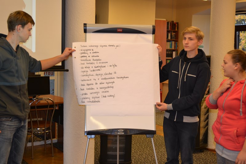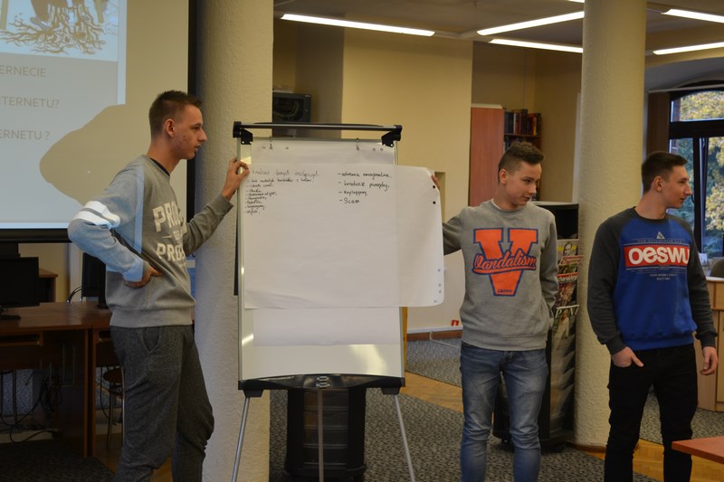21 października 2015 roku uczestniczyliśmy w spotkaniu w Miejskiej Bibliotece Publicznej w Słupsku Jego tematem były zagrożenia i konsekwencje wynikające z intensywnego funkcjonowania w wirtualnym świecie. Spotkanie poprowadziła Hanna Rakowska studentka V roku psychologii na Uniwersytecie SWPS w Sopocie. Spotkanie miało charakter zajęć edukacyjno-warsztatowych. W zajęciach w MBP w Słupsku uczestniczyli uczniowie z klasy 3 technik informatyk i klasy 2 technik architektury krajobrazu.