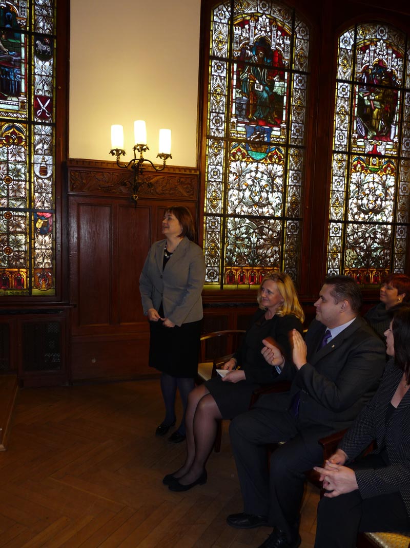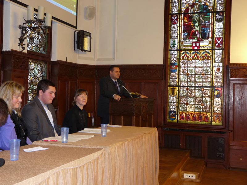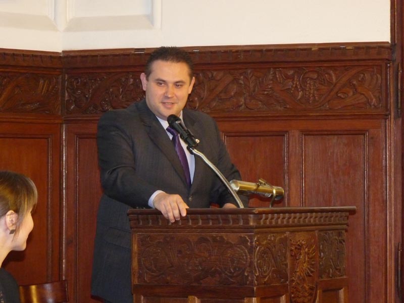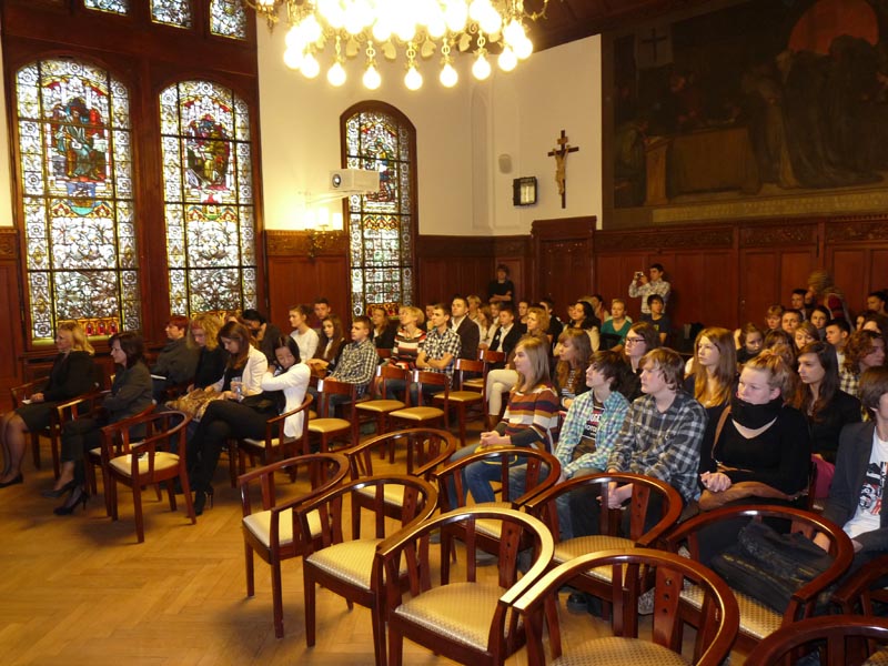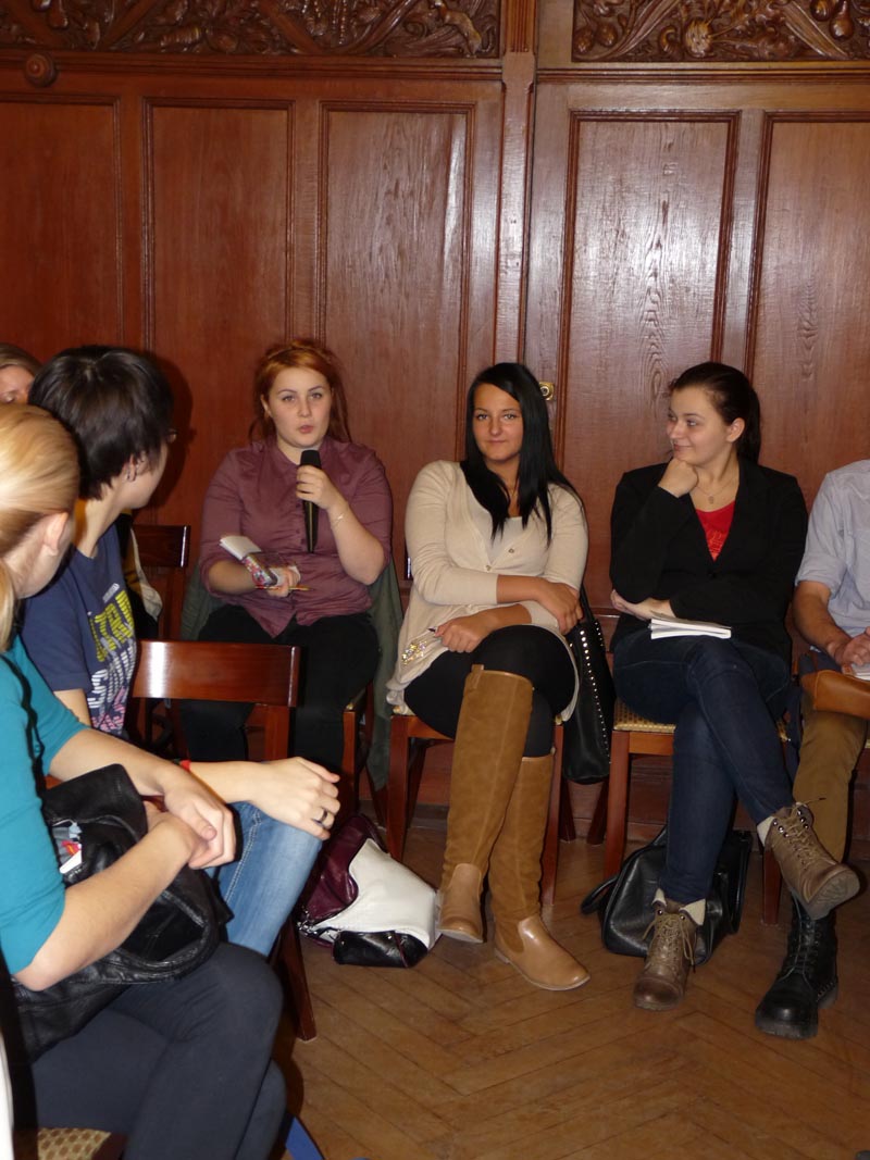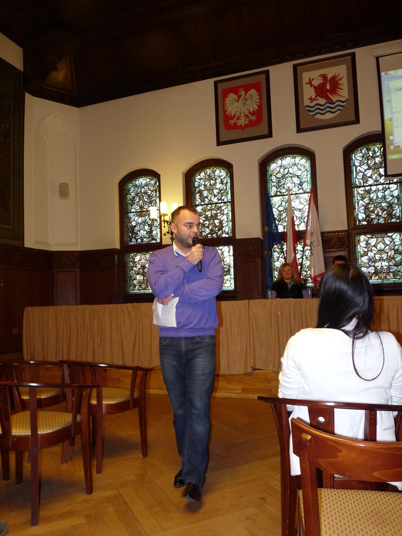 W dniu 23 listopada b.r. dwóch przedstawicieli Samorządu Uczniowskiego wraz z opiekunką wzięło udział w konferencji zorganizowanej w Ratuszu Miejskim w Słupsku. Tematem konferencji było: "Czy można mówić o istnieniu konfliktu między uczniem a nauczycielem?" Spotkanie to zostało zorganizowane przez Młodzieżową Radę Miasta Słupska wraz z IV LO W Słupsku. Konferencja przebiegała w bardzo miłej i serdecznej atmosferze. Przybyło na nią wielu przestawicieli Samorządów Uczniowskich ze szkół podstawowych, gimnazjów oraz szkół ponadgimnazjalnych z naszego miasta. Z przyjemnością informujemy, że prowadzącym konferencję był uczeń naszej szkoły Dariusz Kopczyński, pełniący w MRMS funkcję rzecznika praw ucznia. W programie znalazły się zarówno wyniki i analiza ankiety dotyczącej relacji i zachowań w szkole, prelekcje, prezentacje multimedialne oraz warsztaty. Gościem konferencji była Pani Mesude Civekoglu, nauczycielka z Turcji, która przestawiła ciekawą prelekcję na temat szkolnictwa w swoim kraju. Mamy nadzieję, że tego typu spotkania będą odbywały się cyklicznie i będą równie ciekawe jak ta, w której wzięliśmy udział.