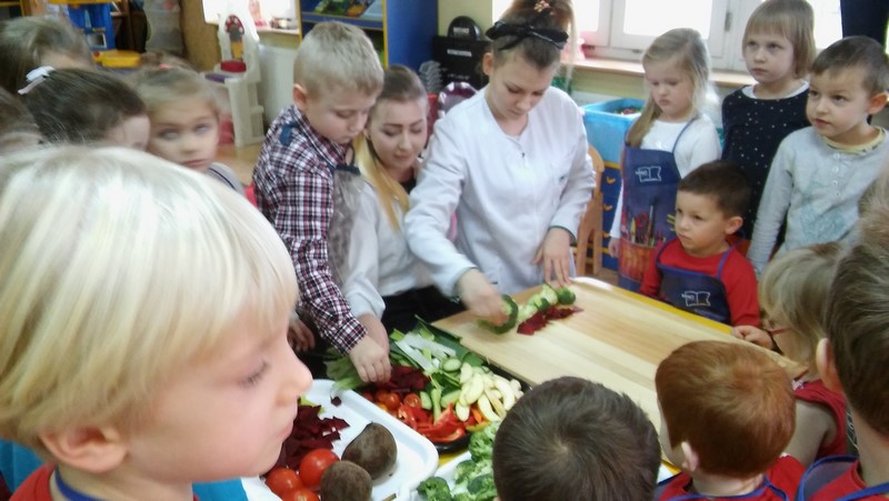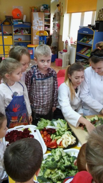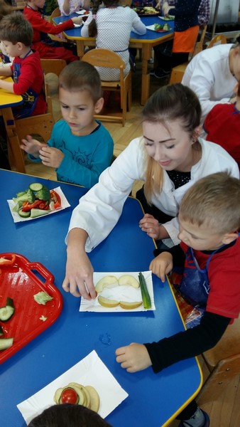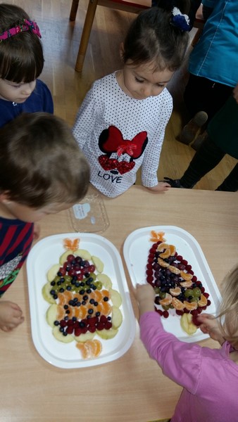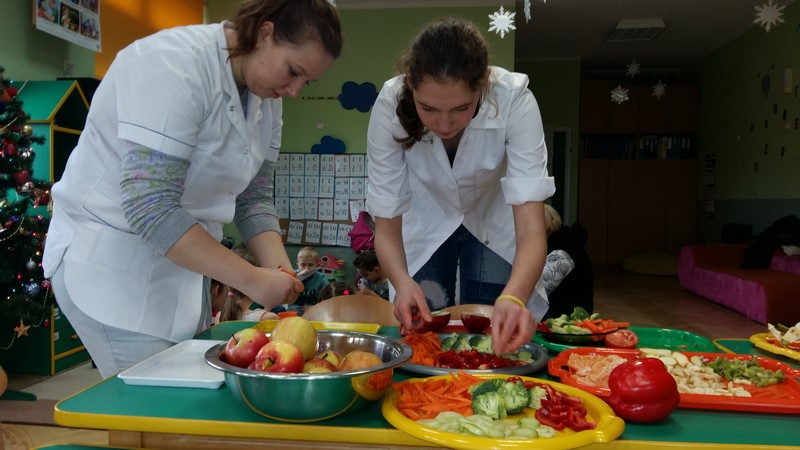 Aby umilić najmłodszym czas oczekiwania na święta, dnia 15 grudnia 2016r. uczennice z klasy 1 TUŻ i 2 TUA odwiedziły Miejskie Przedszkole Integracyjne nr 8 w Słupsku. Wspólnie z dziećmi komponowały owocowo-warzywne choinki. Poprzez zabawę dziewczęta chciały zachęcić najmłodszych do codziennego spożywania warzyw i owoców. Dzieci podczas warsztatów poznały techniki tworzenia i dekorowania choinek przy użyciu wybranych przez siebie warzyw i owoców. Wspólne zajęcia dostarczyły maluchom dużo radości i uśmiechu.
