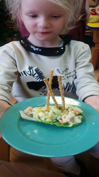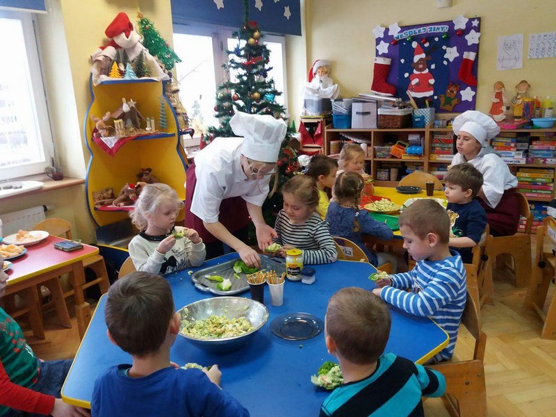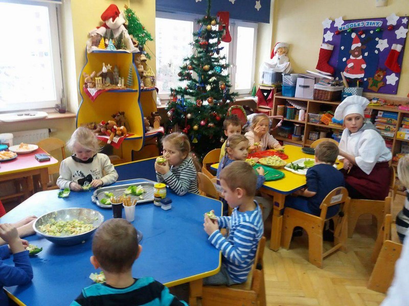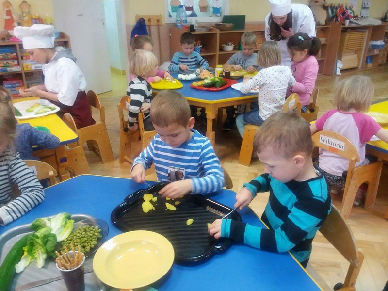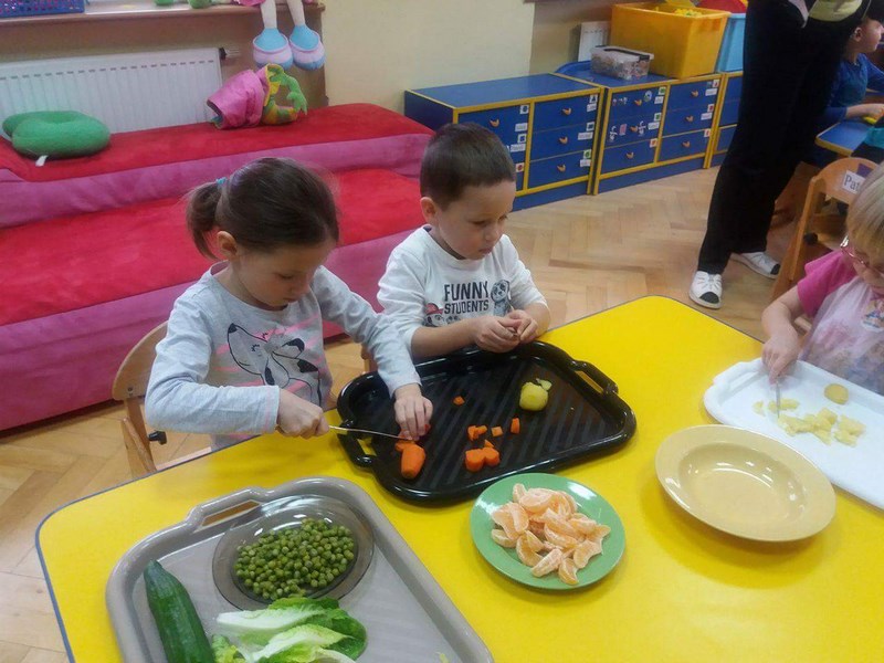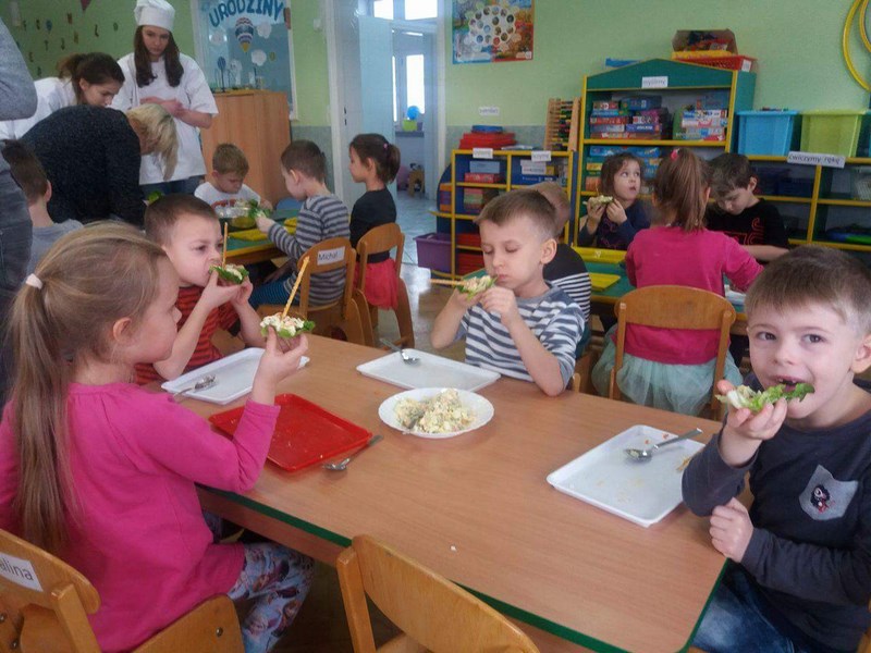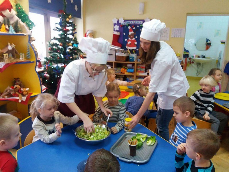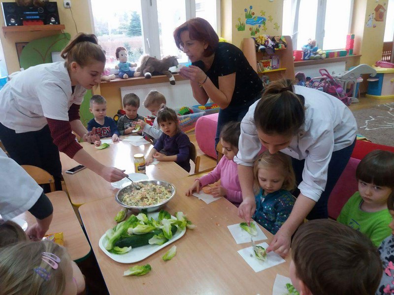 W ramach współpracy z Miejskim Przedszkolem Integracyjnym nr 8 w Słupsku realizowany jest projekt „Zdrowe Drugie Śniadanie”. 10 stycznia 2017r. dziewczęta ze Szkolnego Klubu Wolontariusza ( z klasy 1 TUŻ i 2 TUa) poprowadziły, już po raz trzeci, zajęcia z zakresu żywienia dla dzieci. Tym razem postanowiły one zachęcić najmłodszych do jedzenia warzyw proponując wspólne wykonanie jarzynowych żaglówek. Okazało się, że dzieci z wielkim entuzjazmem zabrały się do realizacji tego pomysłu. Warzywne kompozycje bardzo je zaciekawiły i zainspirowały do twórczej pracy. Wspólne tworzenie okazało się bardzo wesołą i zdrową zabawą.