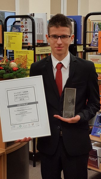 Kacper Firkowski - uczeń Zespołu Szkół Agrotechnicznych w Słupsku - został laureatem w kategorii: WOLONTARIAT