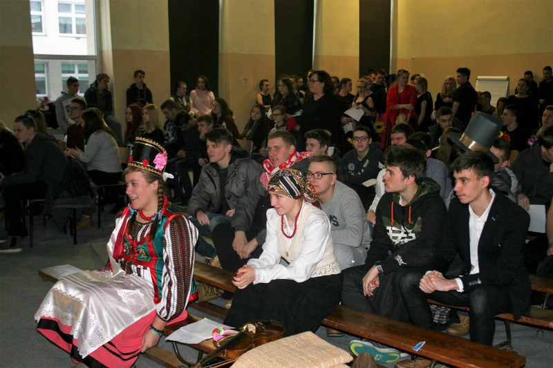 Podczas tegorocznego Dnia Reymonta uczniowie klas pierwszych wzięli udział w następujących konkurencjach: konkurs wiedzy o życiu i twórczości patrona ZSA, piosenka ludowa w wykonaniu całej klasy, żywy obraz przedstawiający realia XIX – wiecznej wsi, konkursy dotyczące życia wiejskiego i pracy, wybór Miss Jagny i Mistera Boryny, prezentacja pt. Wieś dawniej i dziś. Pierwsze miejsce zajęła klasa 1 TU, drugie kl. 1 TAK i trzecie miejsce kl. 1 TIa. Gratulujemy :)