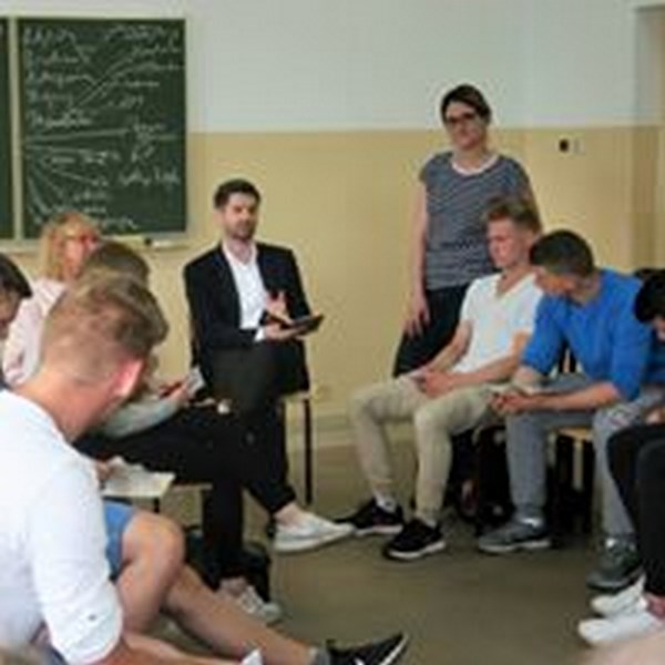 Uczniowie klas I TA, I TG, I TU oraz II TA uczestniczyli w zajęciach prowadzonych przez doświadczonych prawników: p. Danutę Wawrowską, p. Krzysztofa Śmiszka oraz p. Bartosza Rumińskiego. Serdecznie dziękujemy za niezwykle interesujące spotkanie. W przystępny i interesujący sposób pokazano nam, że problematyka konstytucyjna ma bezpośredni wpływ na codzienne życie każdego z nas. Mamy nadzieję, że zobaczymy się w następnej edycji projektu.