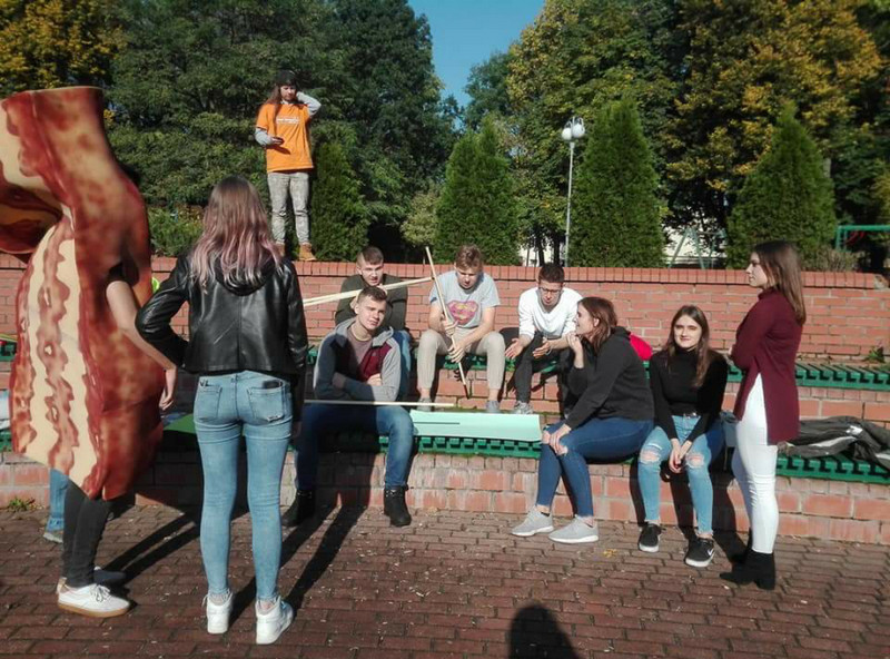 W miejskiej grze terenowej - podczas gry 5-8 osobowe grupy ze szkół średnich i gimnazjów miasta Słupska mogli się wzajemni poznać i wspólnie działać w przestrzeni miejskiej. Tematyka wydarzenia dotyczyła niemarnowania żywności. Naszą szkołę reprezentowała młodzież z Wolontariatu: Adrianna Zielonka, Gosia Kwietniewska, Angelika Machajewska, Karina Jazowska, Patrycja Stachowiak i Kacper Firkowski.