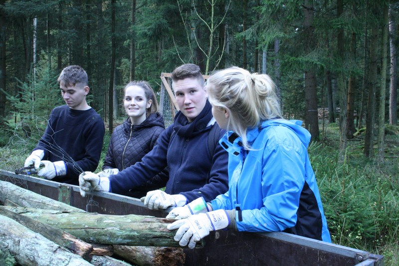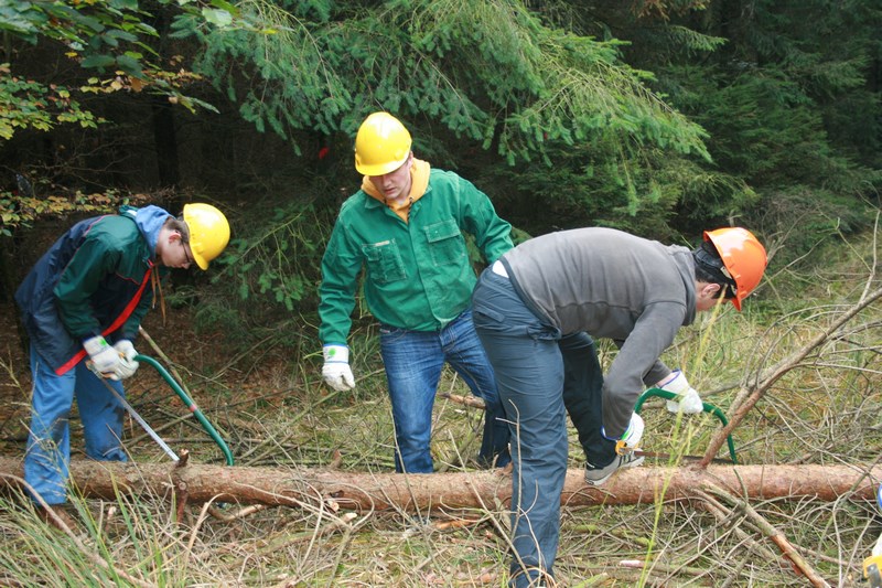 - uczestniczyli w pracach na terenie nadleśnictwa Hartenholm, których celem było przywrócenie pierwotnego drzewostanu na tych terenach oraz ochrona młodych drzew liściastych przed zwierzętami oraz inwazją drzew iglastych (zabezpieczanie młodych pędów drzew liściastych wełną owczą; zabezpieczanie młodych drzewek liściastych płotkami; wycinanie drzew iglastych, okorowywanie ich i cięcie na bale),