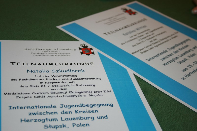 - brali udział w warsztatach w Hartenholm, mających na celu przybliżenie młodzieży tematyki leśnej i ukazanie możliwości wypoczynku w zgodzie z naturą (wędrówka na orientację z leśną mapą numeryczną, budowa ambony myśliwskiej, warsztaty przetrwania, sporządzanie naturalnych kosmetyków, zabawa w parku linowym, nocna wędrówka po lesie),