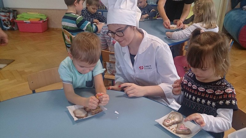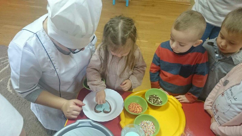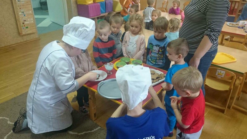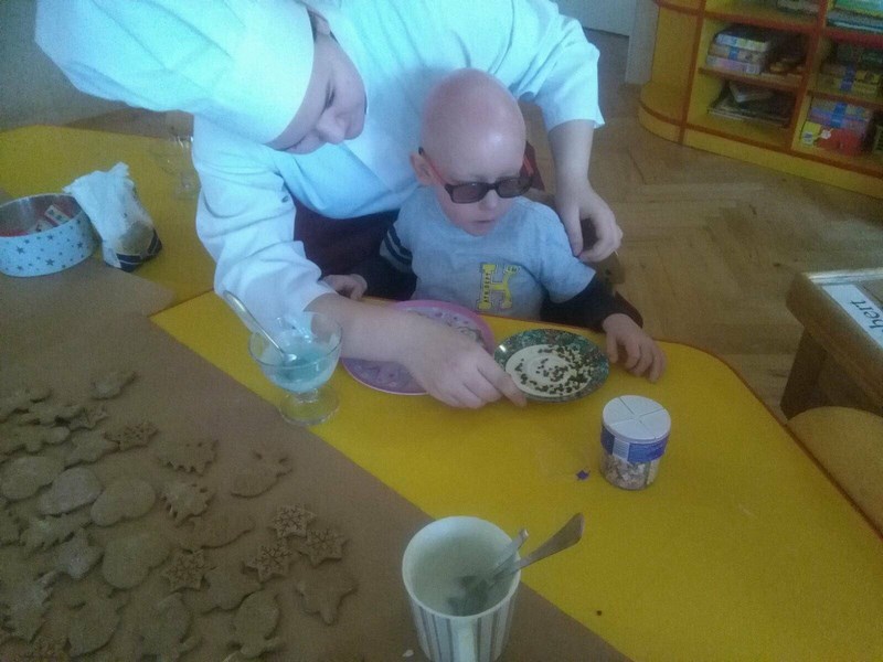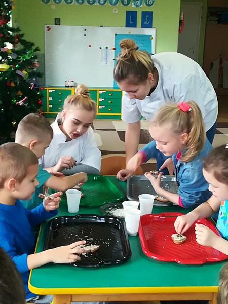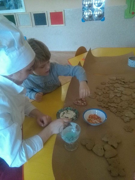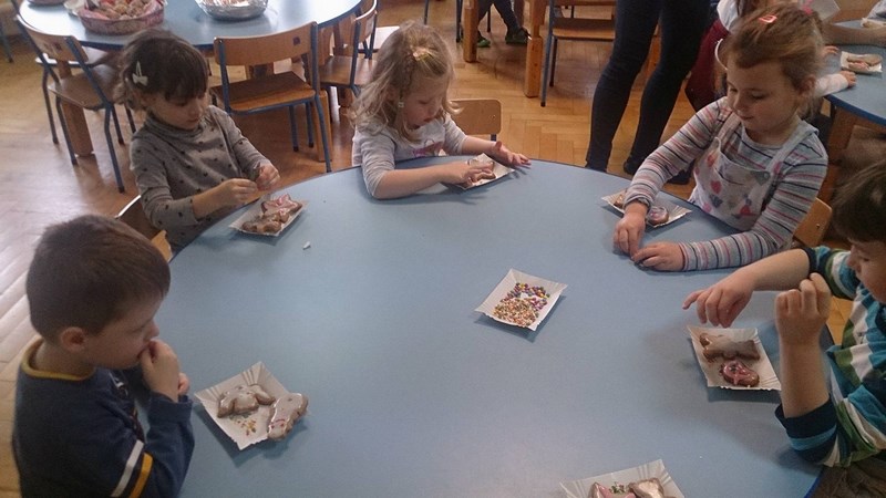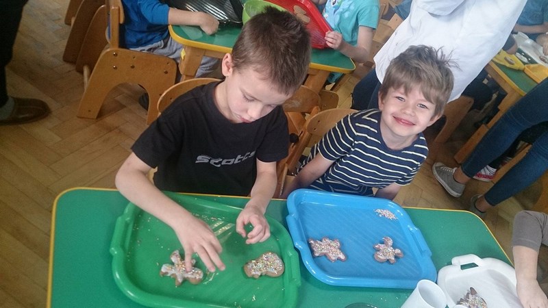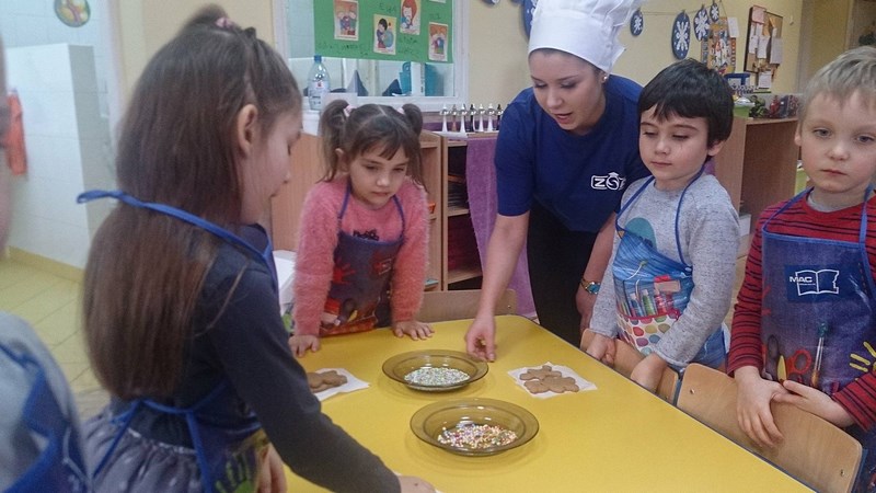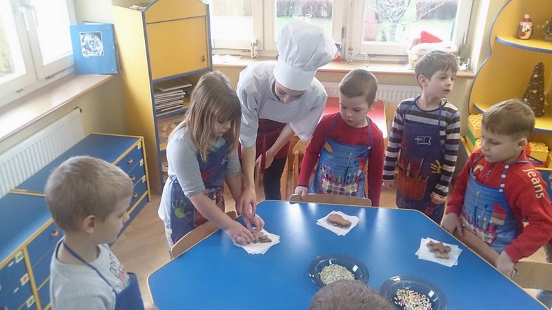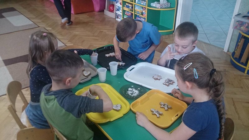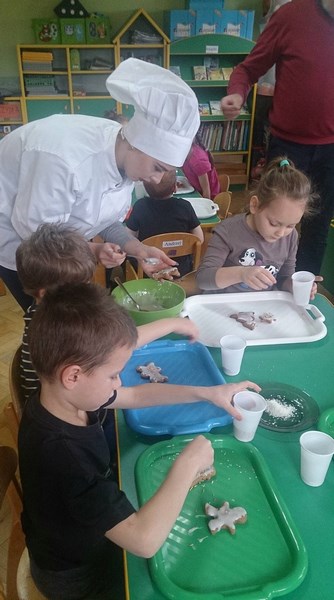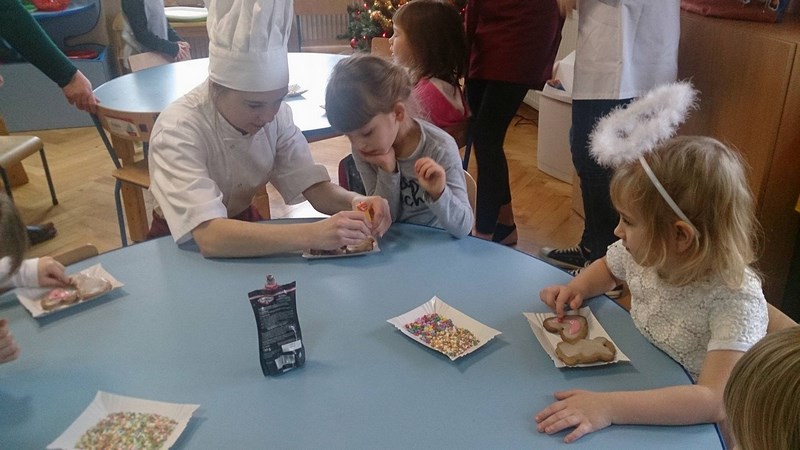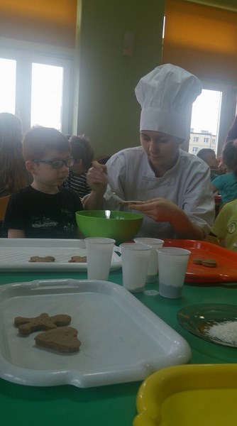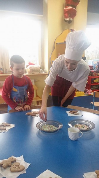 15 grudnia 2017r. w Miejskim Przedszkolu Integracyjnym nr 8 w Słupsku odbyły się z naszym udziałem warsztaty kulinarne dla przedszkolaków pod hasłem „Świąteczne pierniczki”. Celem spotkania było ukazanie dzieciom piękna świąt Bożego Narodzenia oraz zapoznanie z tradycjami i zwyczajami świątecznymi. Na tę okoliczność uczniowie klasy 2 ZK (opiekun p.Bożena Skrzypek) upiekli różnokształtne pierniki, natomiast uczennice z klasy 1 TUŻ (wspólnie z pracownikami przedszkola i przedstawicielami Uniwersytetu Trzeciego Wieku w Słupsku) pomagały dzieciom w lukrowaniu i dekorowaniu pierniczków. Dzieci z wielkim zapałem i zaangażowaniem ozdabiały ciasteczka różnokolorowymi lukrami, barwnymi posypkami, cukrowymi pisakami i kolorowymi cukiereczkami. Każdy pierniczek był wyjątkowy i niepowtarzalny.