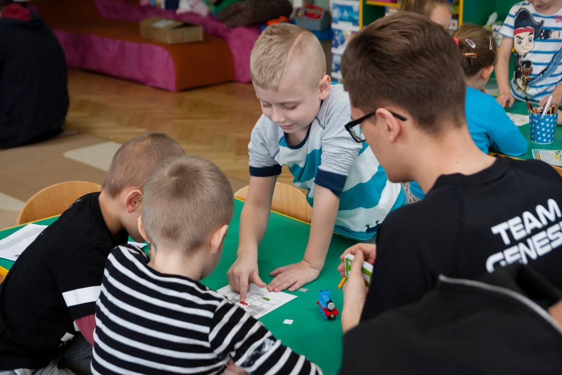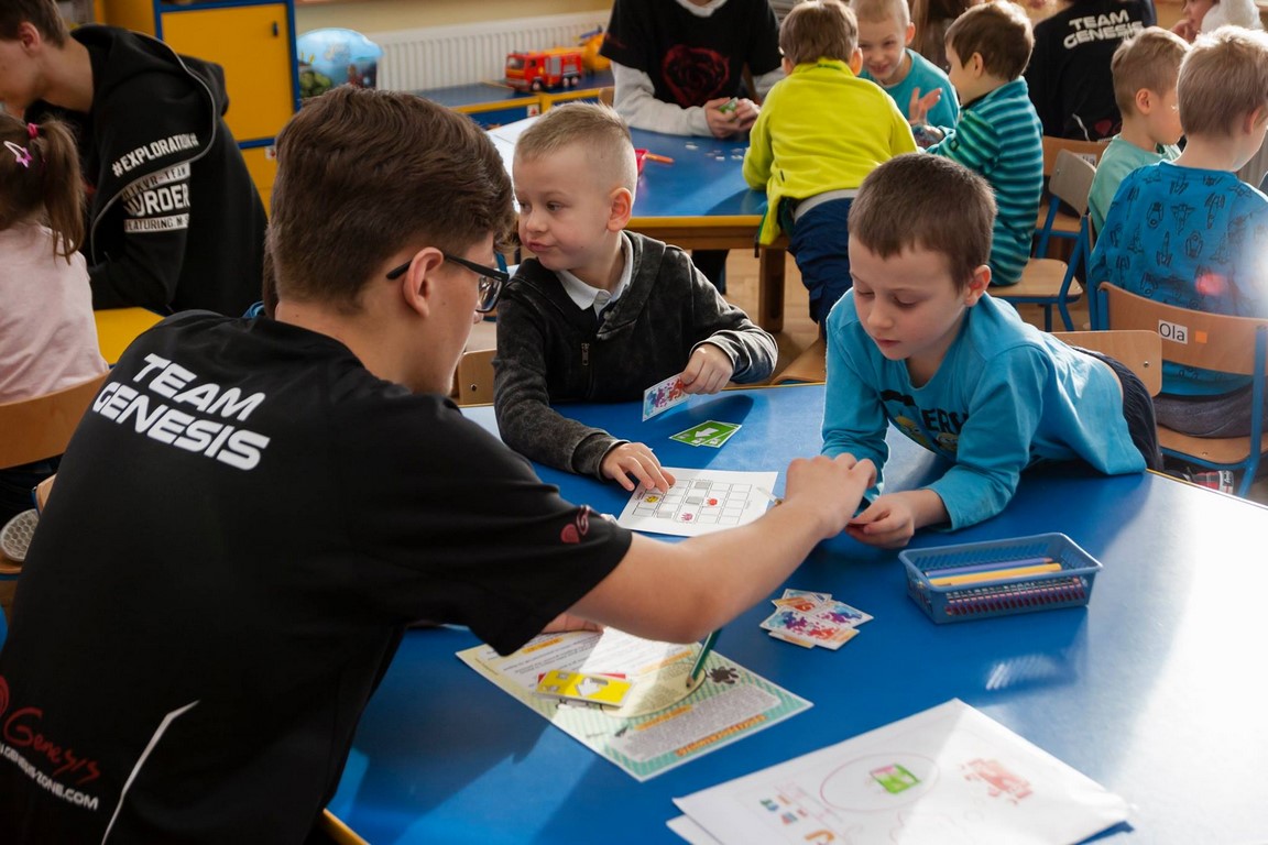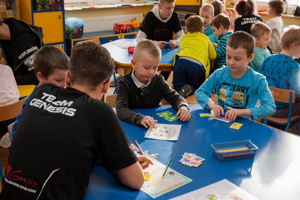 Już po raz trzeci odwiedziliśmy Przedszkole Miejskie Integracyjne nr 8 w Słupsku. Tym razem kodowaliśmy roboty za pomocą gry karcianej Cody Roby. Dzieci programowały wykorzystując karty z instrukcjami, musiały przewidywać ruchy przeciwników oraz układać polecenia w ciąg zdarzeń. Maluchy wykazały się ogromnym zaangażowaniem, a nauka poprzez zabawę dostarczyła im sporo radości. Za miesiąc kolejna wizyta w "ósemce". Zajęcia poprowadziła klasa 2TIb z wychowawcą.