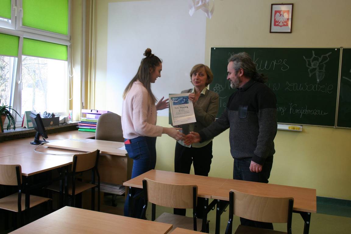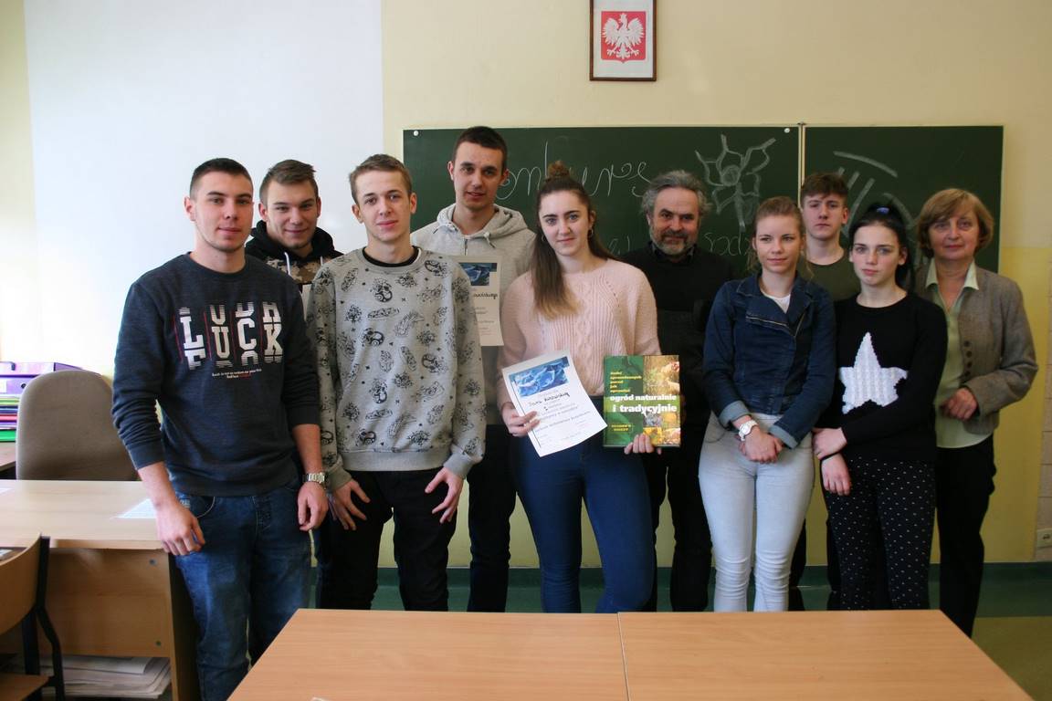 W dniu 28.02.2018r. odbyła się w naszej szkole III edycja konkursu "Najlepszy w zawodzie" dla technika architektury krajobrazu. Do konkursu przystąpiło 6 uczniów z klasy III, którzy wykazali się wiedzą teoretyczną rozwiązując test pisemny. W części praktycznej uczniowie rozpoznawali drzewa i krzewy roślin ozdobnych, zaprojektowali obsadzenie kwietnika sezonowego oraz zaproponowali i opisali wybraną metodę stabilizacji drzewa formy piennej. Pierwsze miejsce zajęła Daria Kitowska, natomiast drugie miejsce Wojciech Roskowiński. Składamy gratulacje uczniom i życzymy dalszych sukcesów zawodowych.