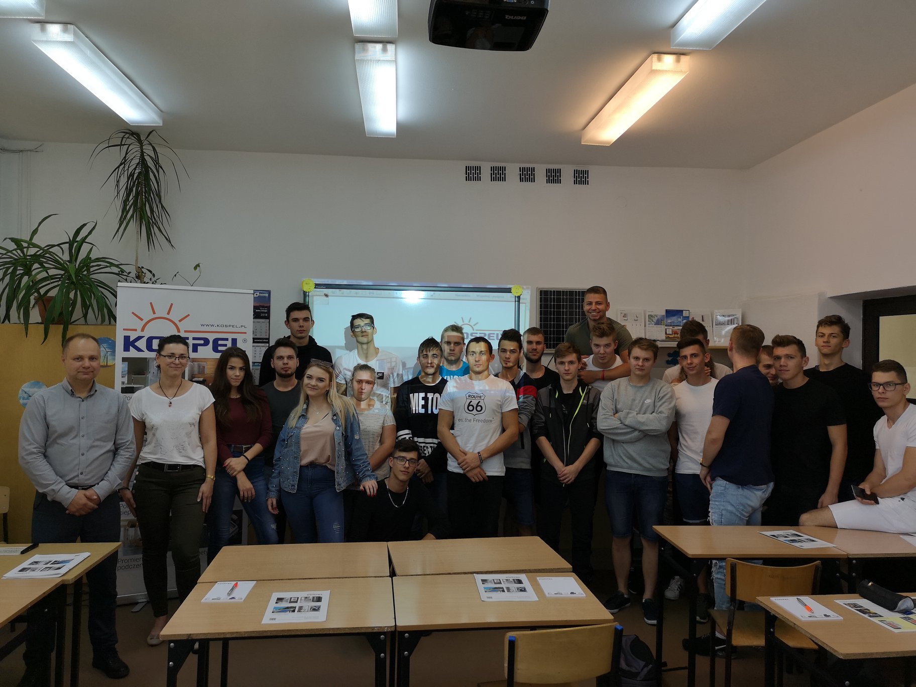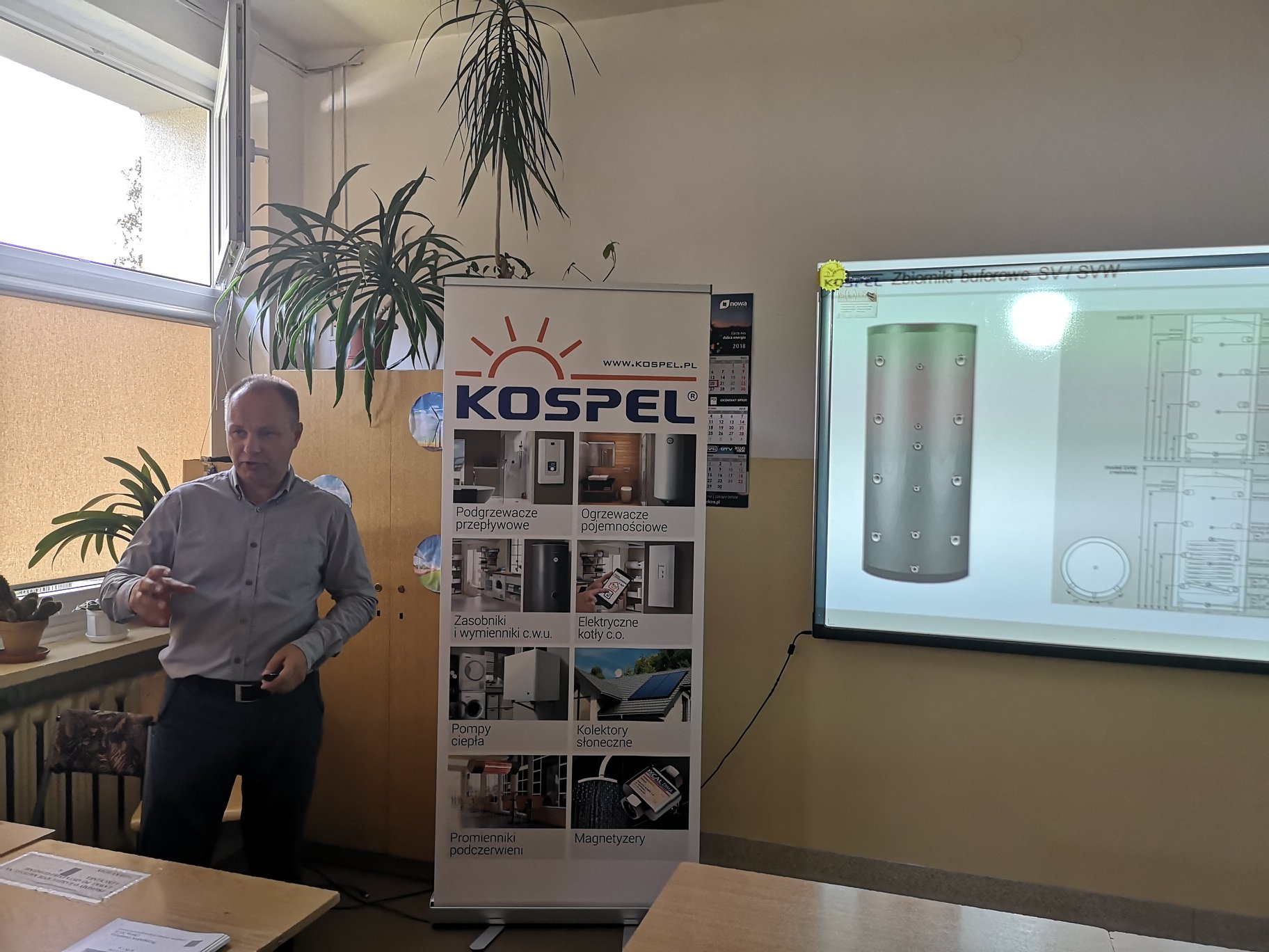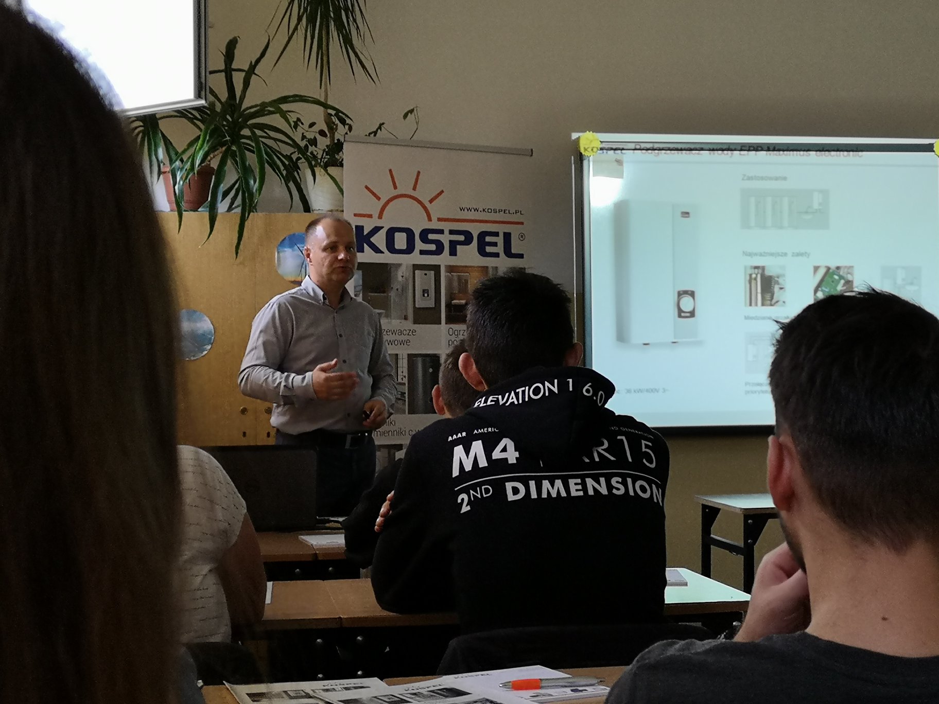 W dniu 20 września 2018 mieliśmy niepowtarzalną okazję wysłuchać wystąpienia Pana Arkadiusza Świerada z firmy Kospel S.A. w Koszalinie. Firma jako producent m.in.: kolektorów słonecznych, podgrzewaczy, zbiorników ciepłej wody użytkowej oraz pomp ciepła ma wiodącą pozycję na polskim rynku energetycznym. Pierwszy z cyklu wykładów Akademii Kospel przewidzianych na kierunku technik urządzeń i systemów energetyki odnawialnej poszerzył wiedzę uczniów z praktycznego punktu widzenia na energetykę odnawialną oraz wprowadził ich w tajniki pracy najlepszych specjalistów z branży. Uczniowie najczęściej zadawali pytania dotyczące sposobu zastosowania urządzeń dla poszczególnych wariantów oraz radzenia sobie z trudnymi przypadkami montażu.