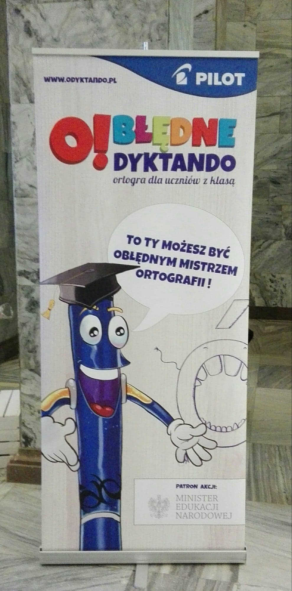 Nasza szkoła zajęła 2. miejsce w etapie on-line ogólnopolskiej akcji pod nazwą „O! Błędne Dyktando” organizowanej pod patronatem Ministra Edukacji Narodowej. Wzięło w niej udział 6597 uczestników z 2372 szkół z całej Polski. 500 najlepszych, młodych znawców ortografii zakwalifikowało się do Wielkiego Finału, który odbył się 27 października w Pałacu Kultury i Nauki w Warszawie. Naszą szkołę reprezentowali: Agata Laskowska (kl. 3 TEG), Mariusz Roguski (kl. 2 TKA), Julian Dobrosielski, Bartłomiej Komisarczuk, Wiktor Sobczak (kl. 3TIb). W finale konkursu napisali niezwykle trudne dyktando. W ich kategorii wiekowej wzięło udział 209 uczestników. Najlepszy wynik z naszej szkoły odnotował Mariusz Roguski. Tylko jeden błąd zadecydował o tym, że nie znalazł się on wśród dziesięciu nagrodzonych.