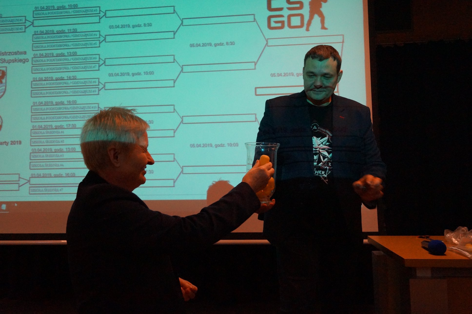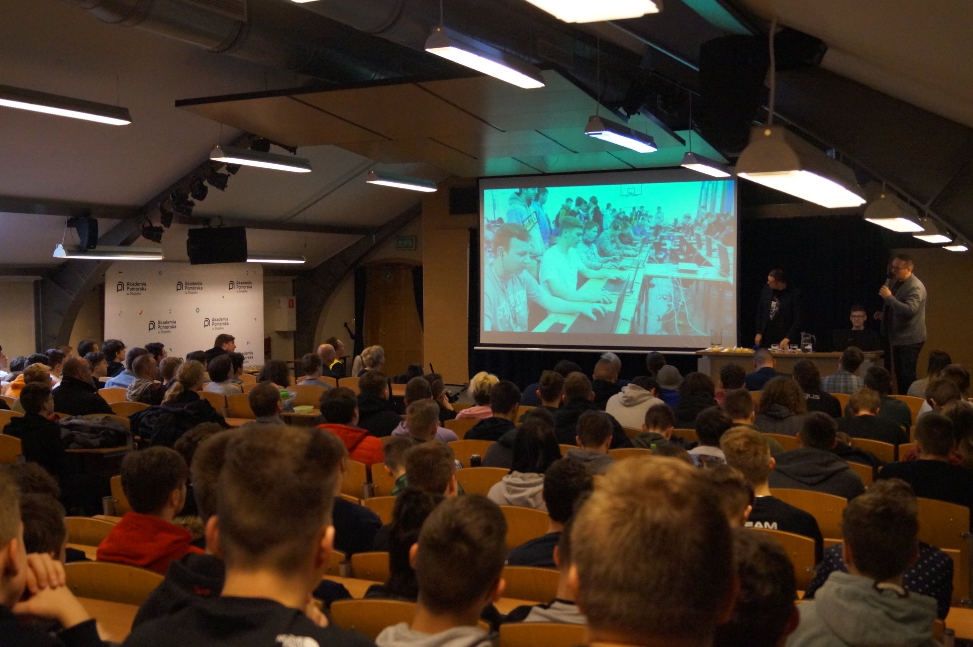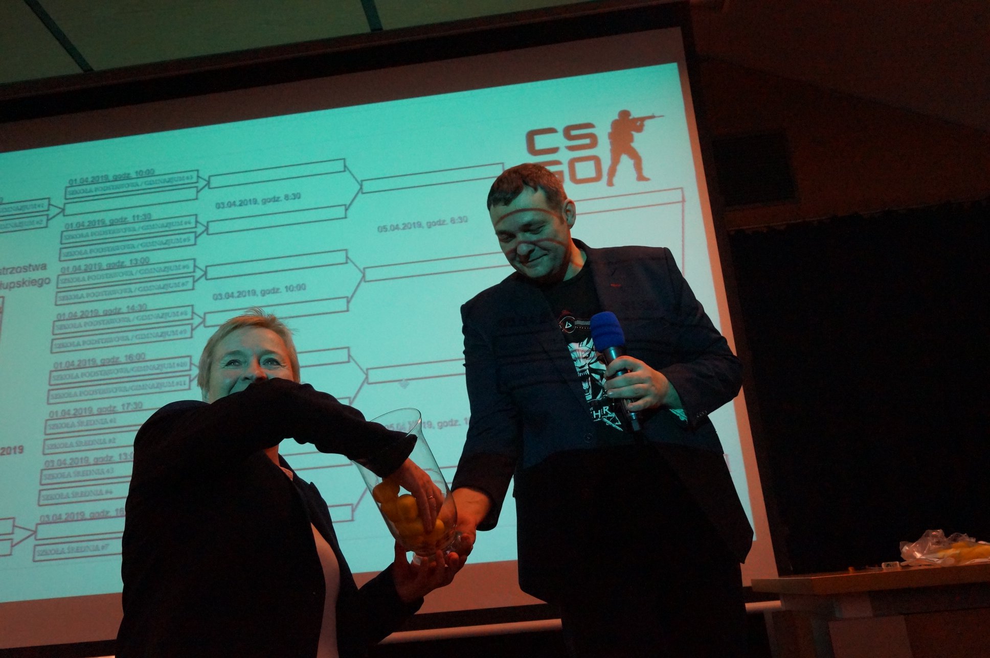 Uroczyste otwarcie już za nami. 21.03.2019 prawie 200 miłośników e-sportu spotkało się w auli Akademii Pomorskiej, przy ul. Boh. Westerplatte 64. Podczas wydarzenia rozlosowaliśmy pary turniejowe (w mistrzostwach bierze udział aż 31 drużyn - 18 szkół powalczy o mistrzostwo w CS:GO, 13 szkół powalczy o mistrzostwo w League of Legends). Przeprowadziliśmy interaktywny quiz z nagrodami dotyczący wiedzy o e-sporcie, podczas którego emocje zawodników sięgały zenitu. Na deser odbyło się spotkanie z Kubą "KubiKiem" Kubiakiem - komentatorem e-sportowym ESL, który w przeszłości był zawodowym graczem, później trenerem takich drużyn jak AGG, Pride, Vexed Gaming oraz analitykiem taktycznym Virtus.pro.