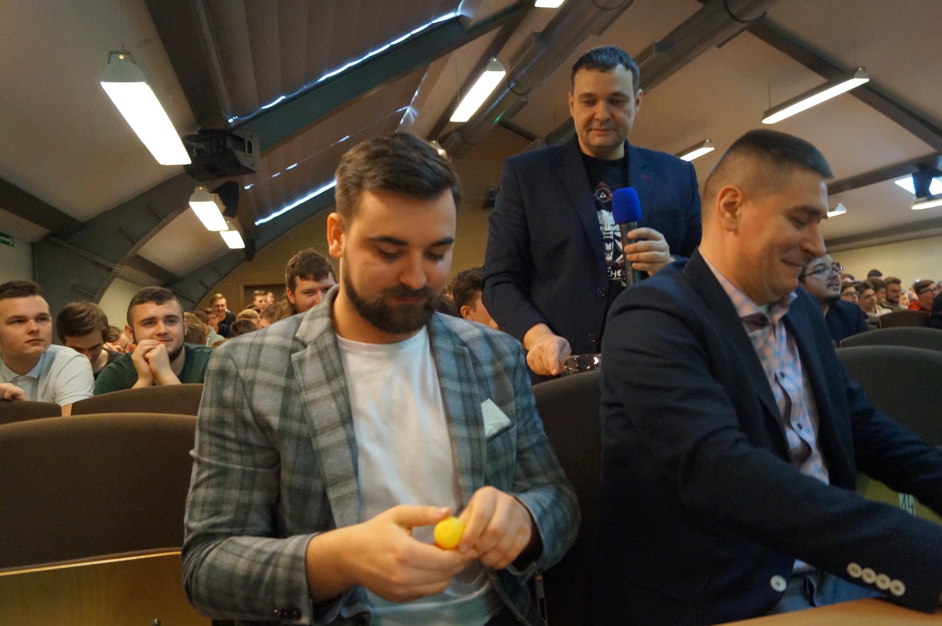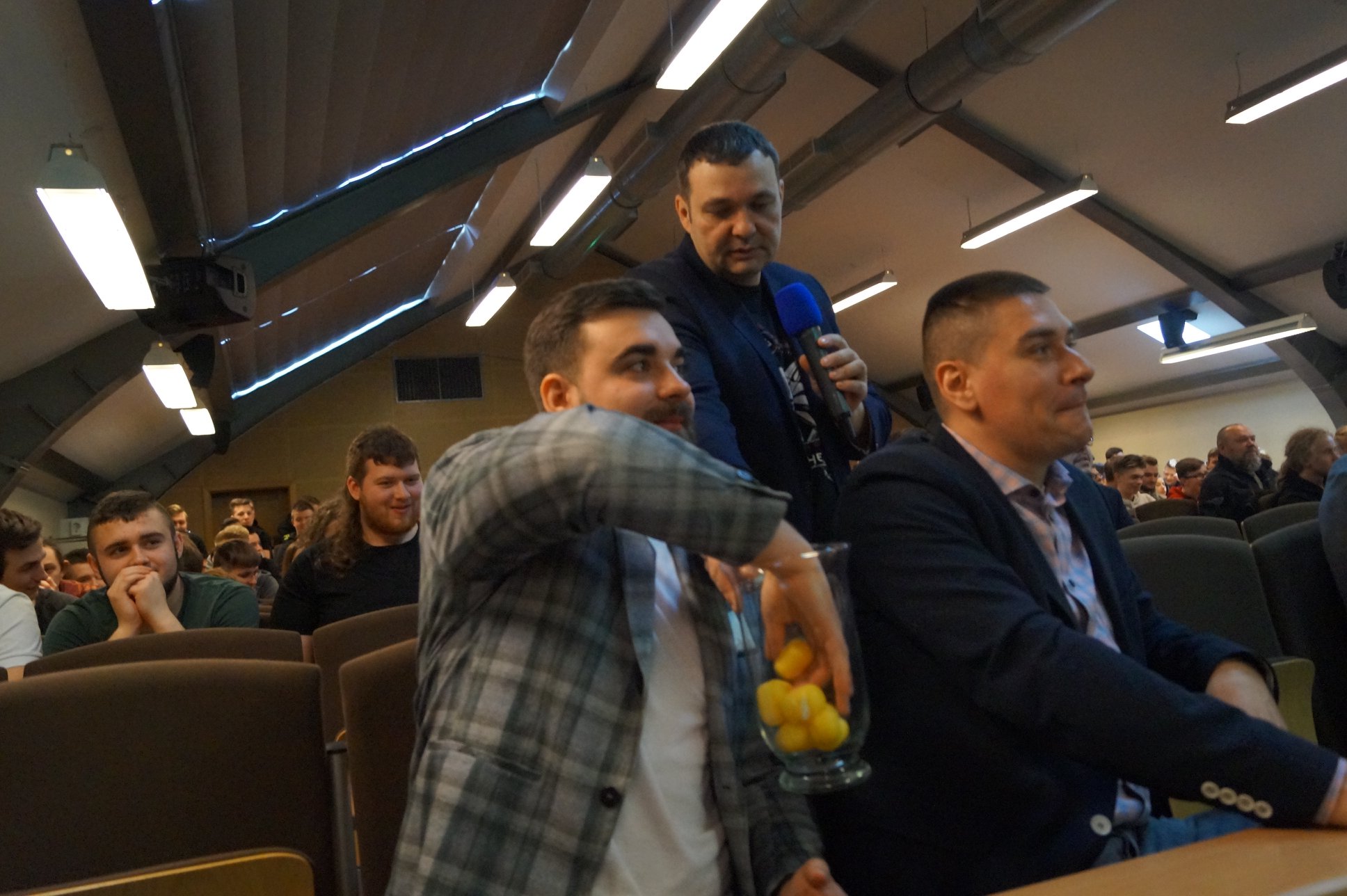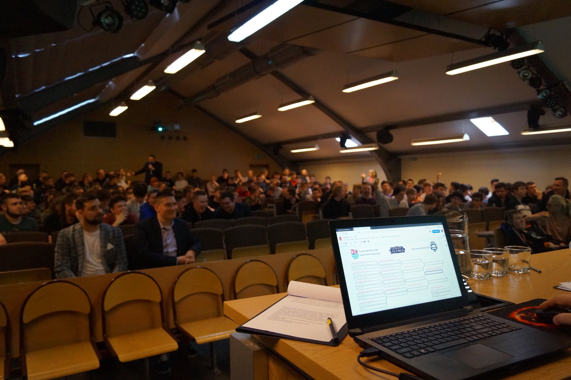 Uroczyste otwarcie już za nami. 21.03.2019 prawie 200 miłośników e-sportu spotkało się w auli Akademii Pomorskiej, przy ul. Boh. Westerplatte 64. Podczas wydarzenia rozlosowaliśmy pary turniejowe (w mistrzostwach bierze udział aż 31 drużyn - 18 szkół powalczy o mistrzostwo w CS:GO, 13 szkół powalczy o mistrzostwo w League of Legends). Przeprowadziliśmy interaktywny quiz z nagrodami dotyczący wiedzy o e-sporcie, podczas którego emocje zawodników sięgały zenitu. Na deser odbyło się spotkanie z Kubą "KubiKiem" Kubiakiem - komentatorem e-sportowym ESL, który w przeszłości był zawodowym graczem, później trenerem takich drużyn jak AGG, Pride, Vexed Gaming oraz analitykiem taktycznym Virtus.pro.