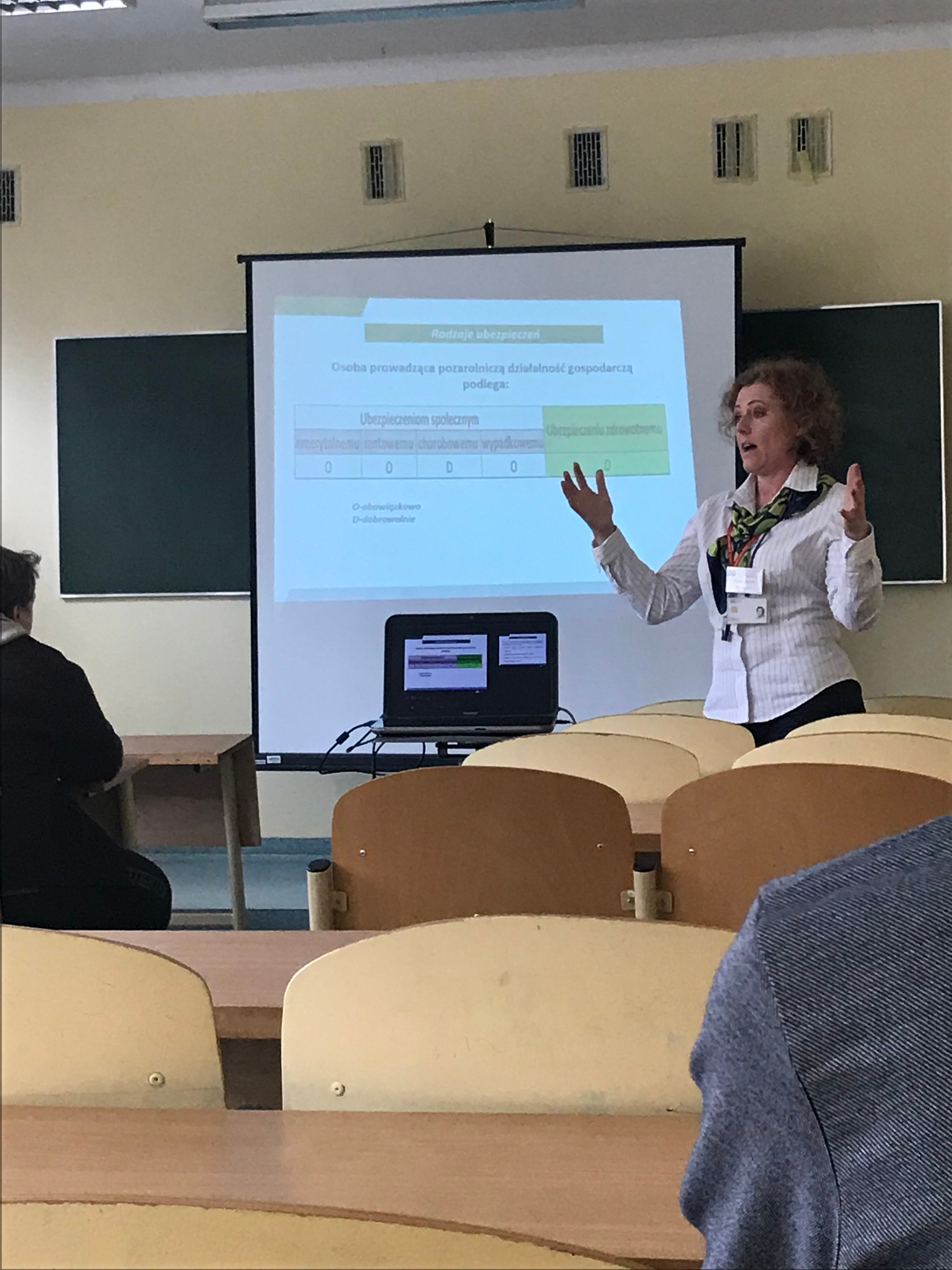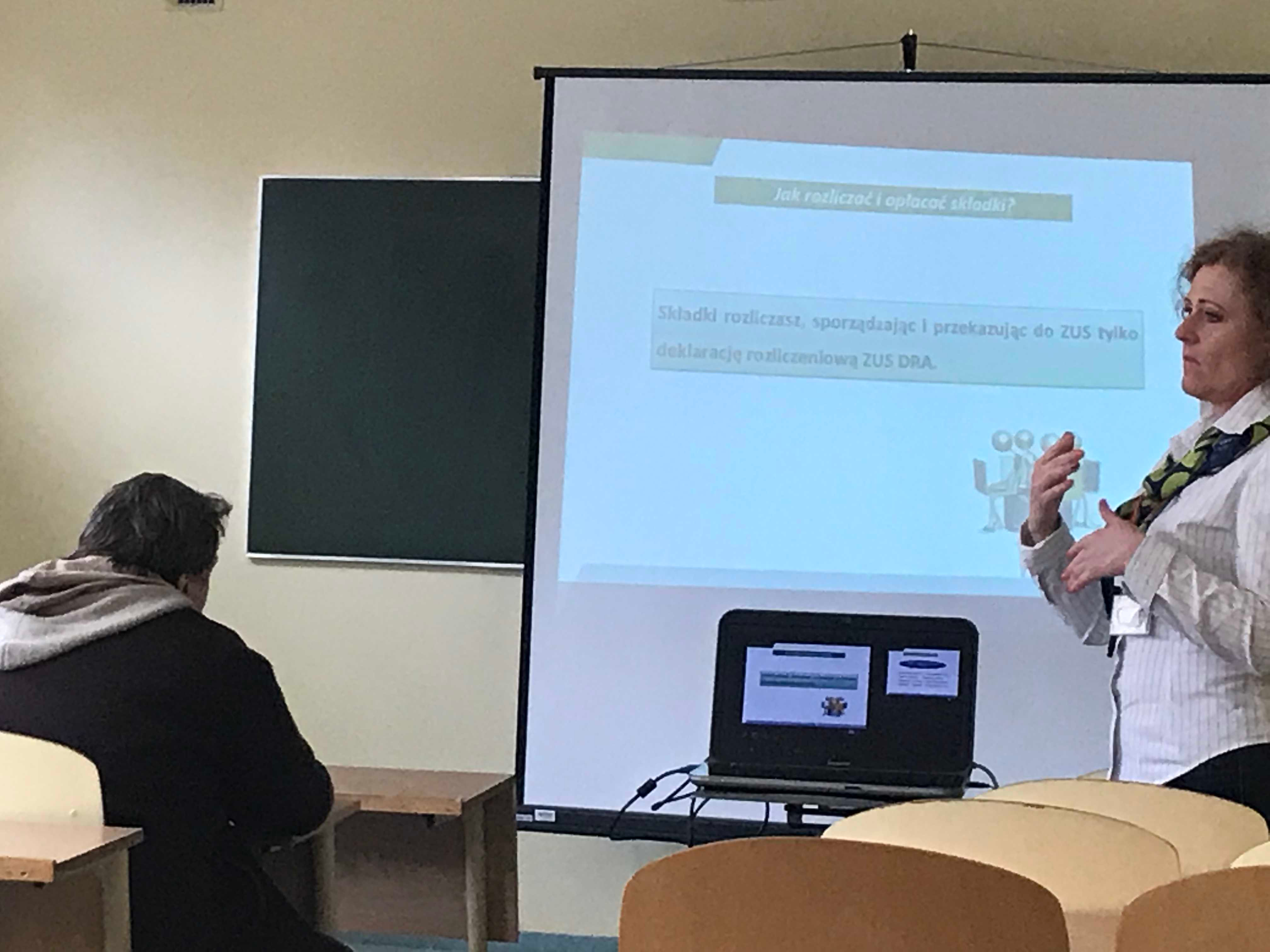 Uczniowie ZSA uczestniczący w tegorocznych Akademickich Spotkaniach z Przedsiębiorczością mieli okazję wziąć udział w prelekcjach na temat „ABC działalności – Mały ZUS” poprowadzonych przez pracownicę Zakładu Ubezpieczeń Społecznych o/w Słupsku.