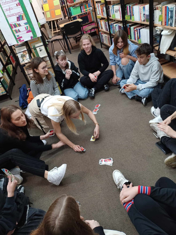 25 października biblioteka szkolna zorganizowała dla wolontariuszy naszej szkoły "Dzień Gier Planszowych". Mieli w ten sposób oni szansę na integrację w otoczeniu książek, przekąsek i napojów.