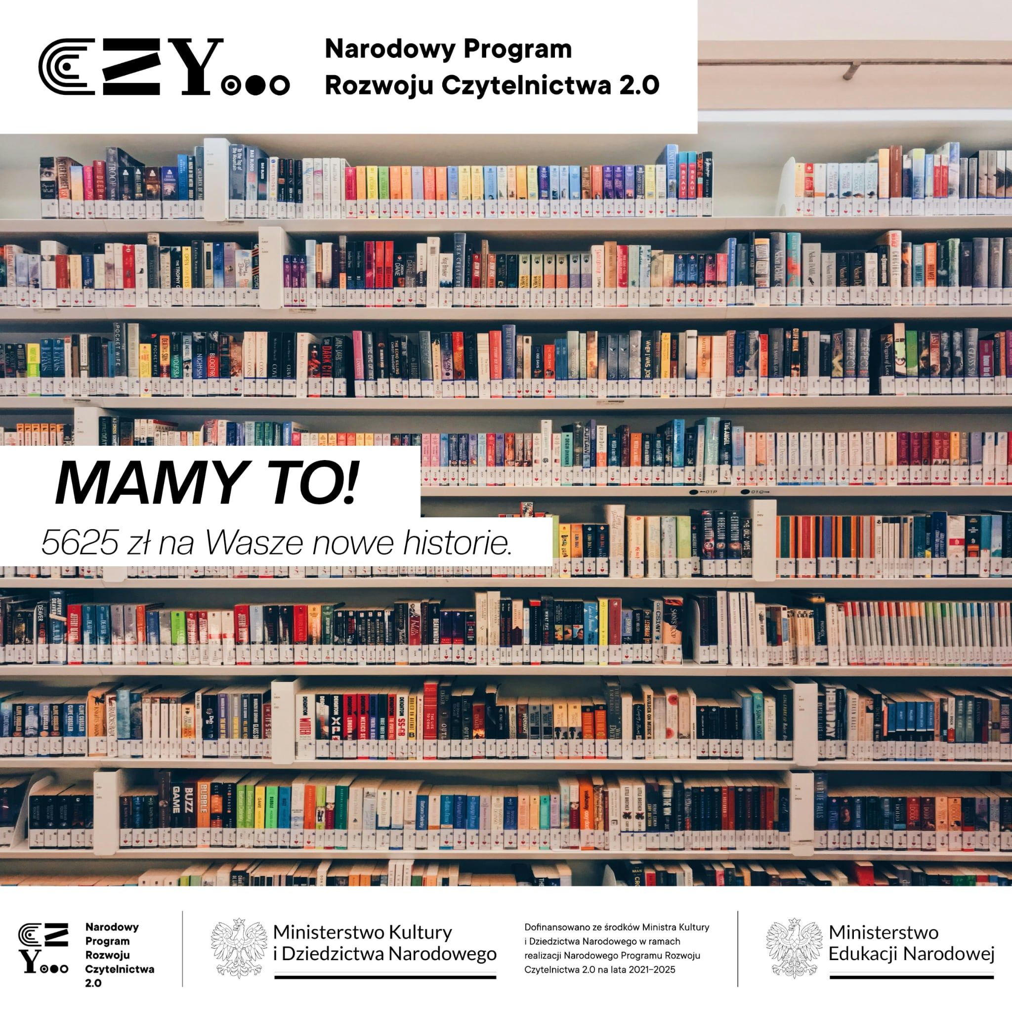 Z radością informujemy, że nasza biblioteka szkolna otrzymała dotację w wysokości 5625 zł! Środki pochodzą z Narodowego Programu Rozwoju Czytelnictwa 2.0.