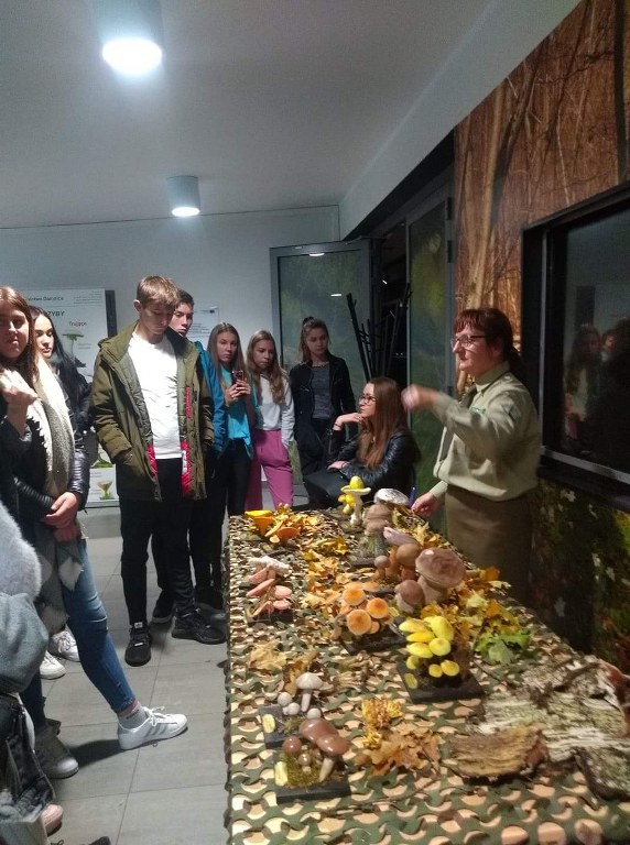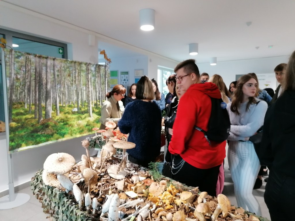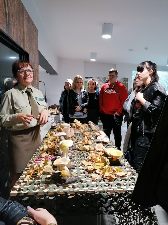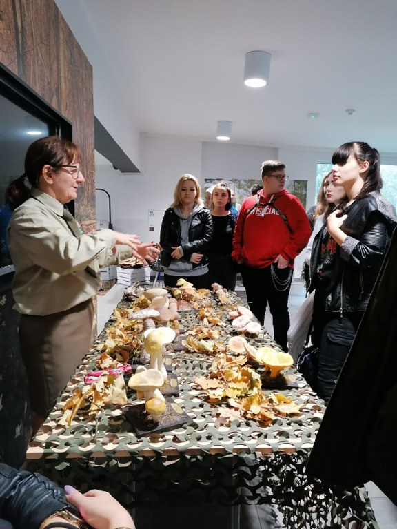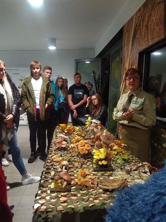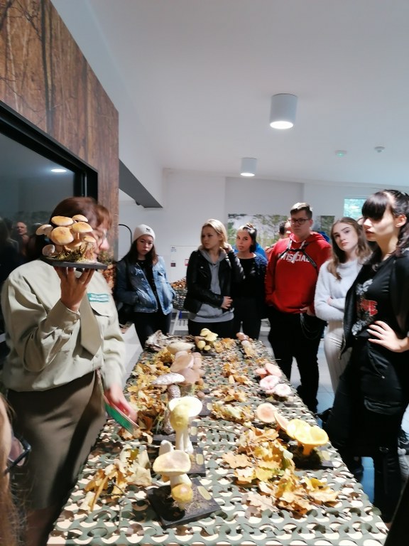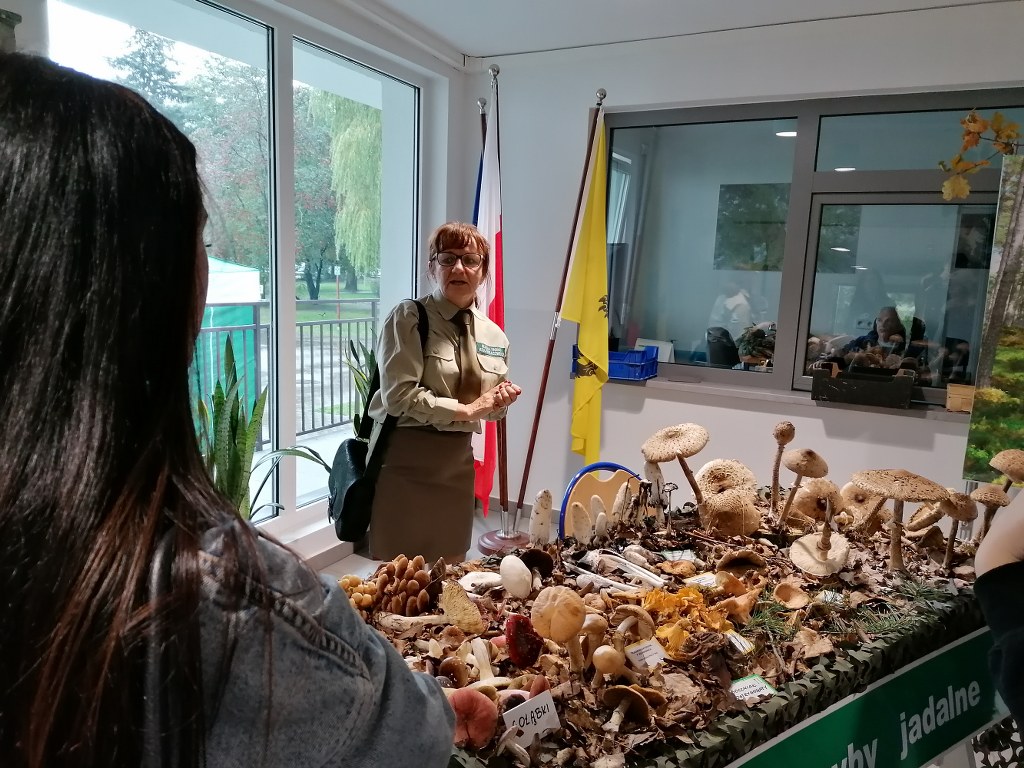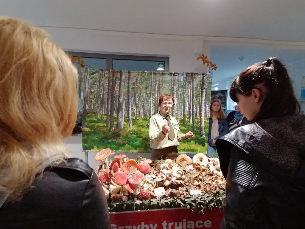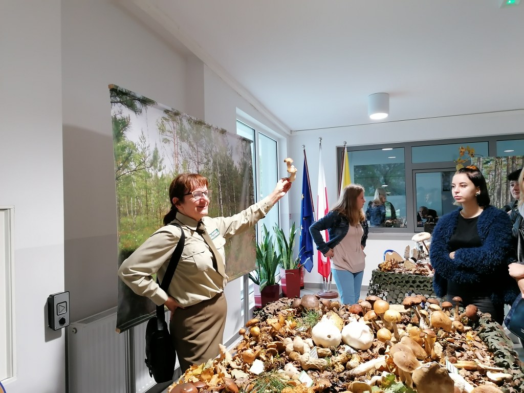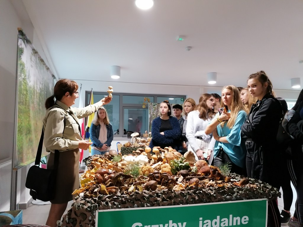 Pogadanki prowadzili pracownicy Lasów Państwowych oraz pracownicy Pomorskiego Zespołu Parków Krajobrazowych - nas oprowadzała bardzo sympatyczna Pani Anna Mariola Kasprzak - starszy specjalista ds.edukacji ekologicznej - Dziękujemy! Zwróciła nam m. in. uwagę jak prawidłowo przygotować się do grzybobrania i nie popełnić błędu przy zbiorze. Mieliśmy okazję obejrzeć ciekawy film, który pokazywał życie grzybów z innej perspektywy. Na ostatnim stoisku mogliśmy zobaczyć grzyby nadrzewne i porosty oraz poznać ich znaczenie w świecie przyrody. Ekspozycja grzybów i runa leśnego stanowiła dla nas uczniów doskonałą lekcję biologii.