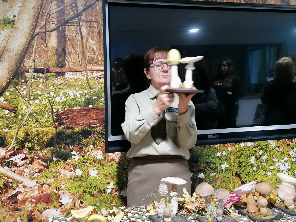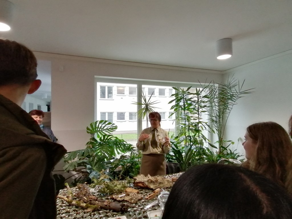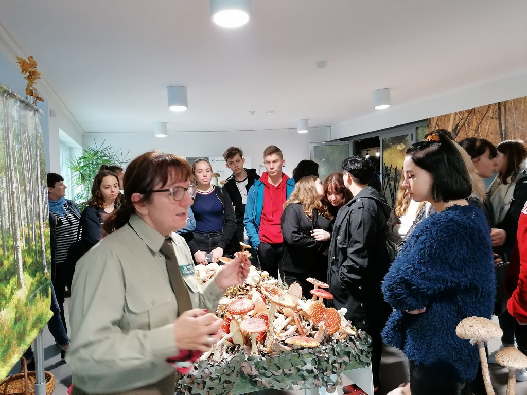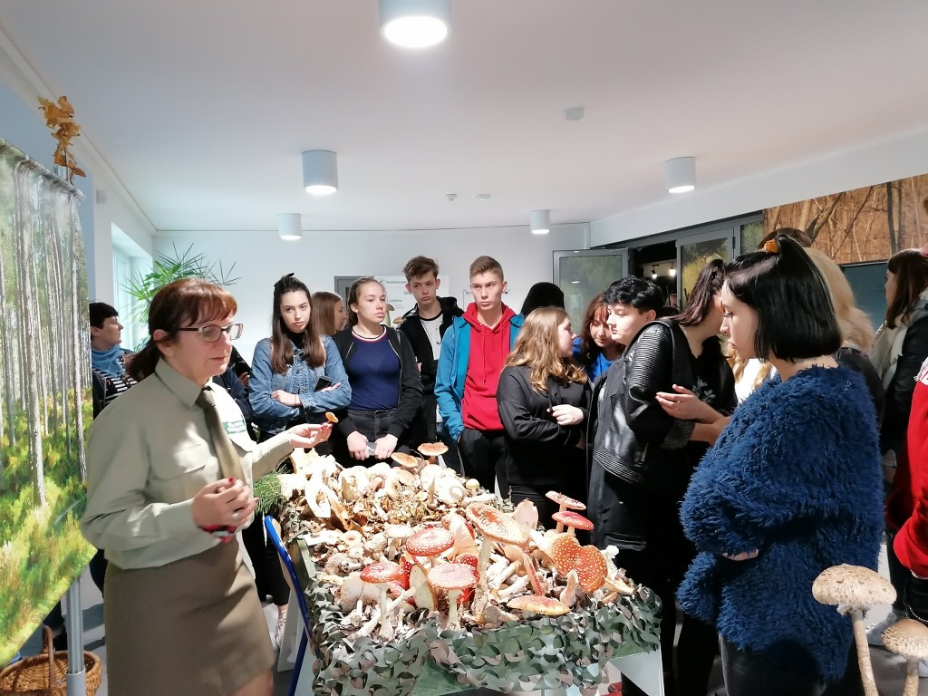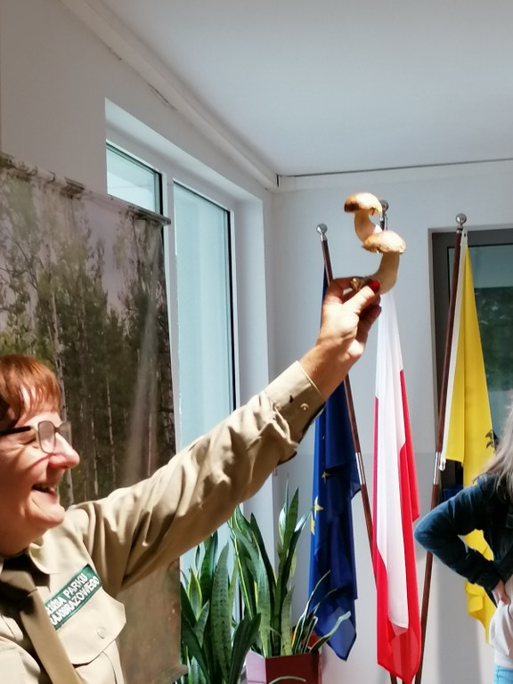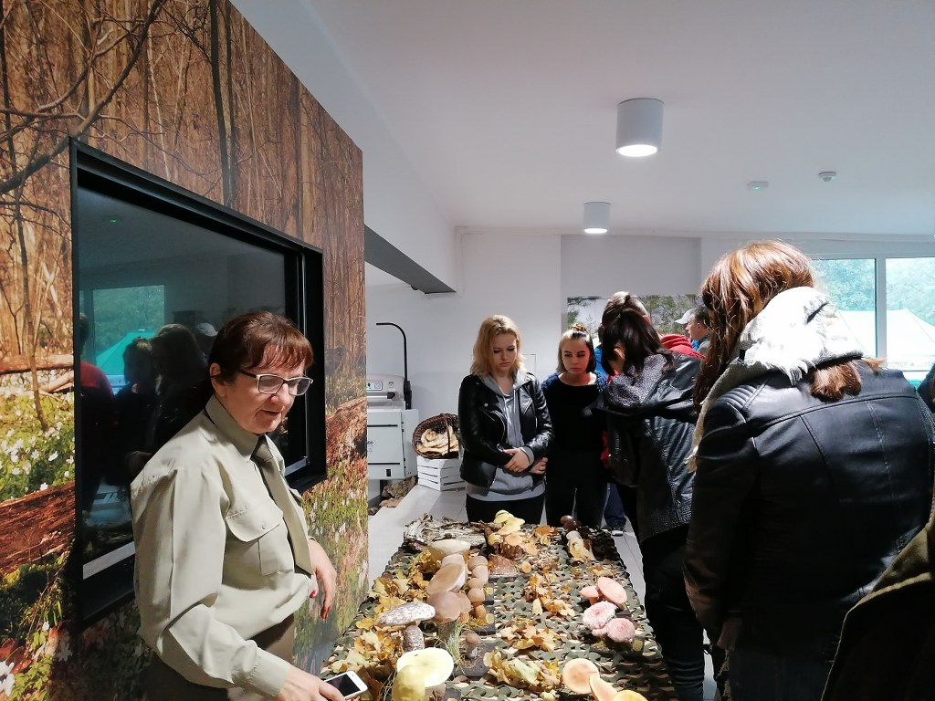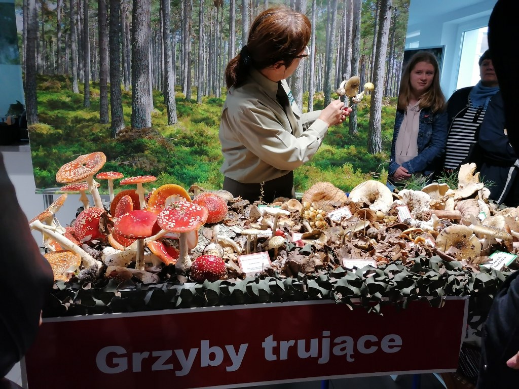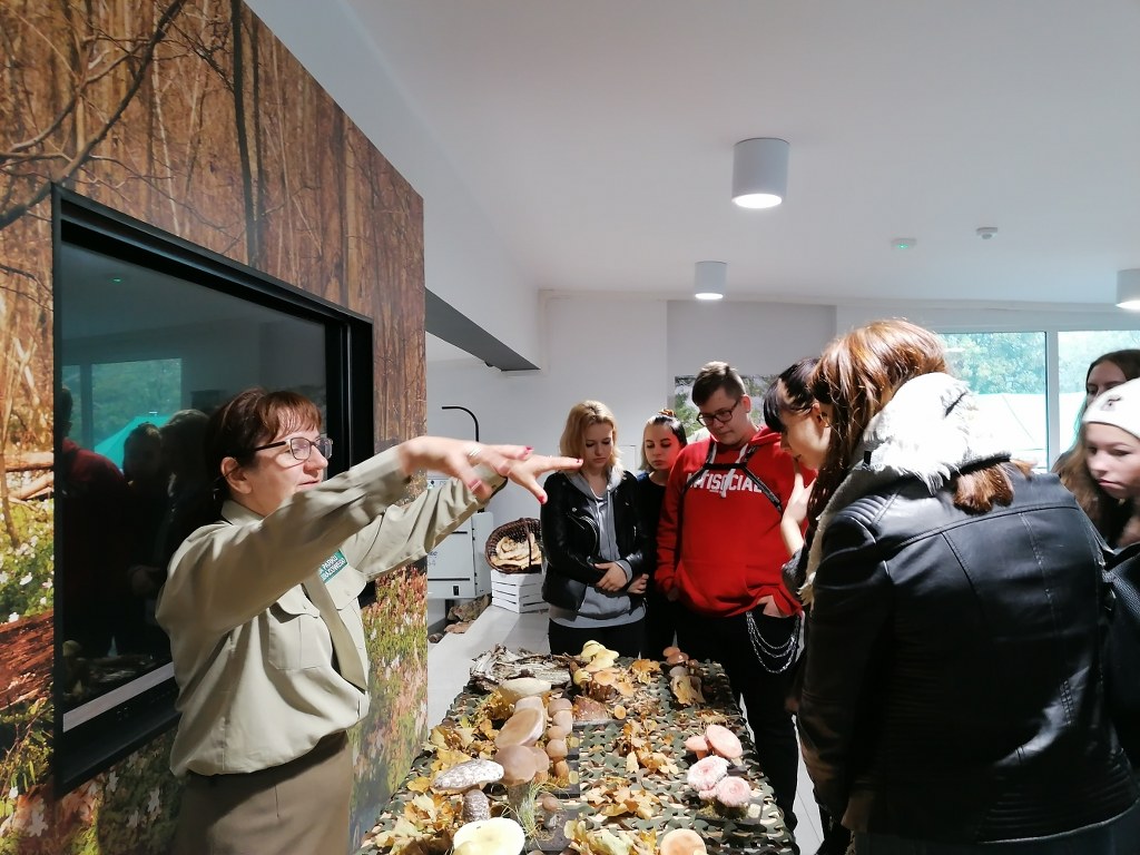 Pogadanki prowadzili pracownicy Lasów Państwowych oraz pracownicy Pomorskiego Zespołu Parków Krajobrazowych - nas oprowadzała bardzo sympatyczna Pani Anna Mariola Kasprzak - starszy specjalista ds.edukacji ekologicznej - Dziękujemy! Zwróciła nam m. in. uwagę jak prawidłowo przygotować się do grzybobrania i nie popełnić błędu przy zbiorze. Mieliśmy okazję obejrzeć ciekawy film, który pokazywał życie grzybów z innej perspektywy. Na ostatnim stoisku mogliśmy zobaczyć grzyby nadrzewne i porosty oraz poznać ich znaczenie w świecie przyrody. Ekspozycja grzybów i runa leśnego stanowiła dla nas uczniów doskonałą lekcję biologii.