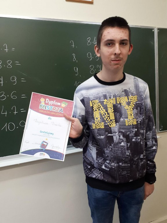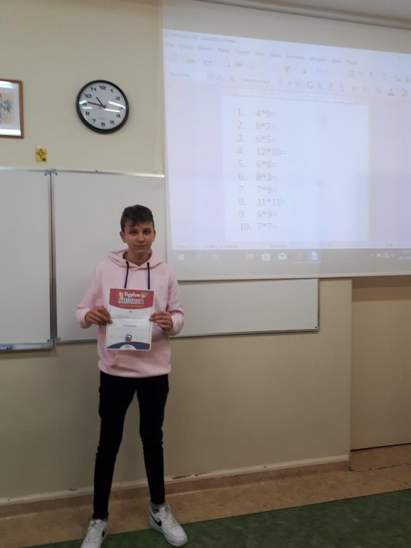 4 października obchodziliśmy w naszej szkole Światowy Dzień Tabliczki Mnożenia. Jest to międzynarodowa akcja, która ma na celu zachęcenie wszystkich do przypomnienia sobie tabliczki mnożenia po długich wakacjach, a także uświadomienie, iż znajomość tabliczki mnożenia jest niezbędna w życiu codziennym. W tym dniu zostały przeprowadzone w każdej klasie zawody z tabliczki mnożenia i wyłoniono mistrzów tabliczki mnożenia. Oprócz tego na terenie szkoły były pochowane prezenty. Osoba która znalazła i poprawnie rozwiązała otrzymała ocenę bardzo dobrą.