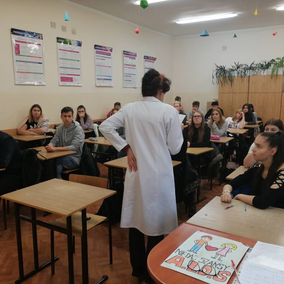 W dniu 28.11. 2019 odbyła się w naszej szkole Międzyklasowa Olimpiada Wiedzy o HIV/AIDS pod hasłem "Nie daj szansy AIDS-młodzi bez HIV. W konkursie uczestniczyło 32 uczniów, którzy rozwiązywali test wielokrotnego wyboru. Najlepiej napisali i tym samym zostali laureatami Karolina Kachel i Kamil Huryn. Będą oni reprezentować naszą szkołę na Powiatowej Olimpiadzie Wiedzy o HIV/AIDS, która odbędzie się 4.12.2019. Zwycięzcom gratulujemy i życzymy powodzenia w następnym etapie konkursu, a wszystkim uczestnikom dziękujemy za udział.