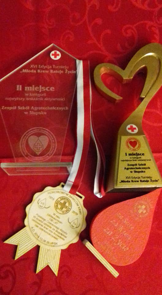 08.12.2019 w restauracji Aureus odbyła się gala Polskiego Czerwonego Krzyża, podczas której zostali uhonorowani honorowi dawcy krwi obszaru Słupskiego. Uczniowie naszej szkoły uczestniczyli w XVI Edycji Turnieju "Młoda krew ratuje życie" i odnieśli ogromny sukces: zajęli I miejsce w województwie pomorskim w kategorii największa ilość oddanej krwi i II miejsce w kategorii najwyższy wskaźnik aktywności.