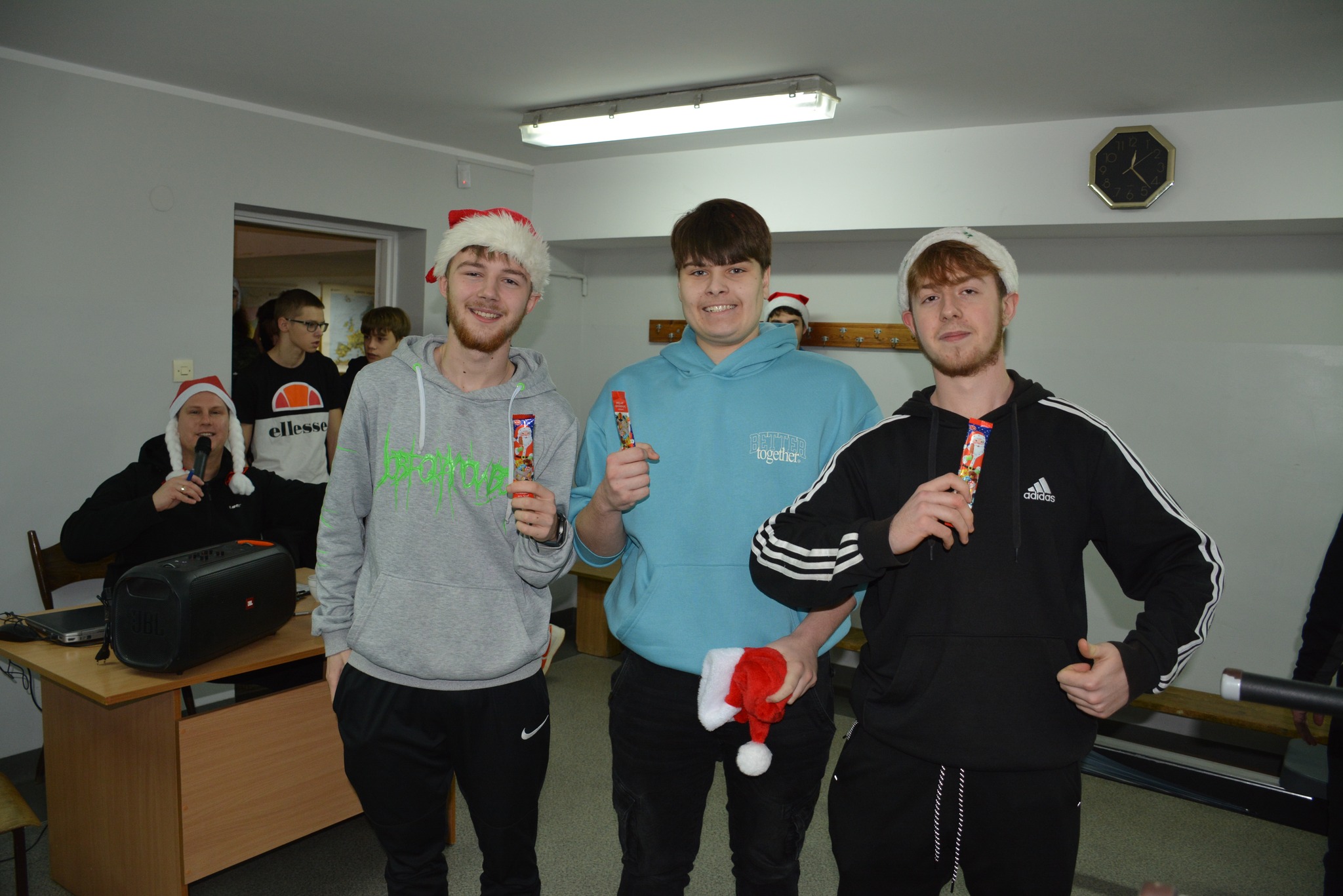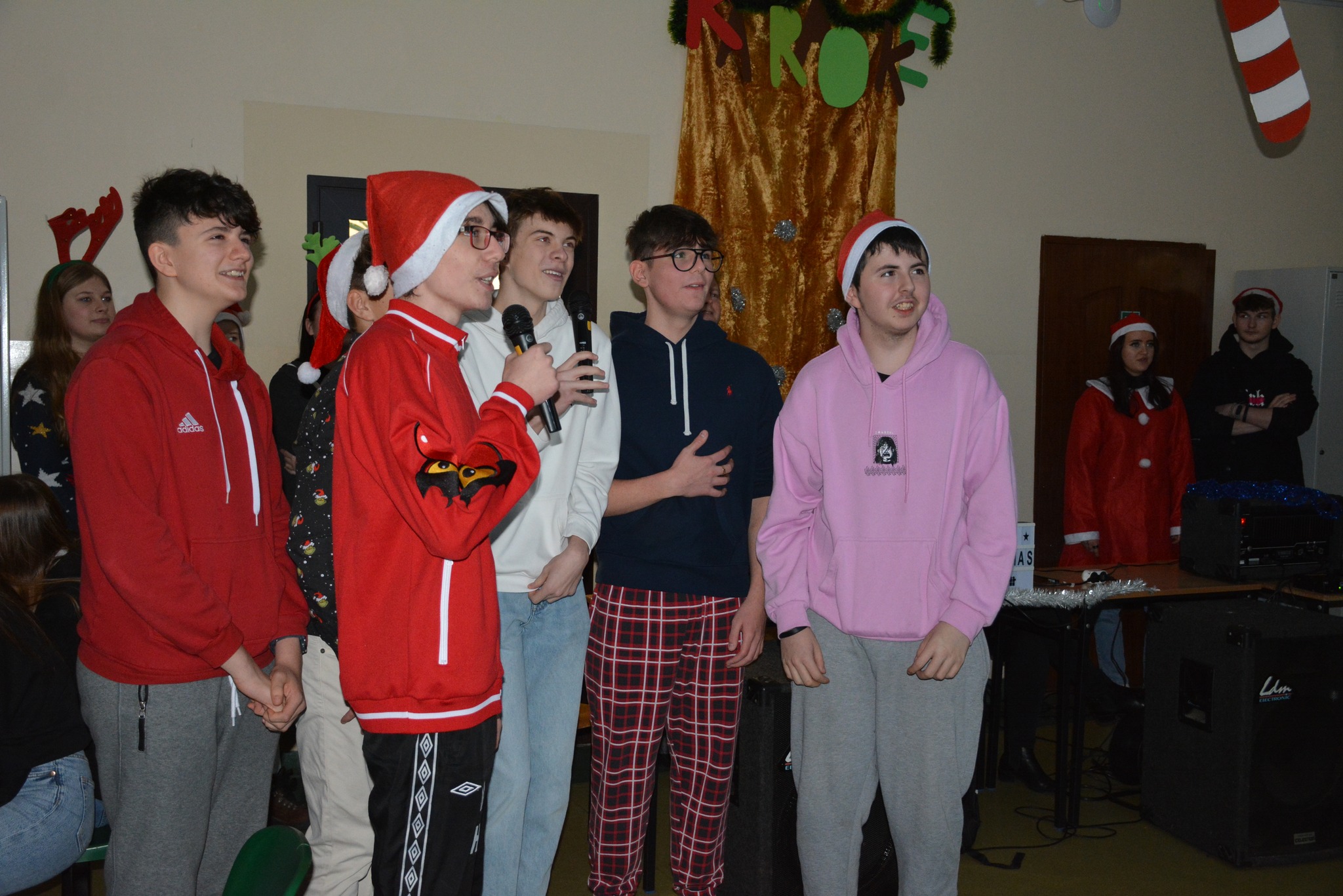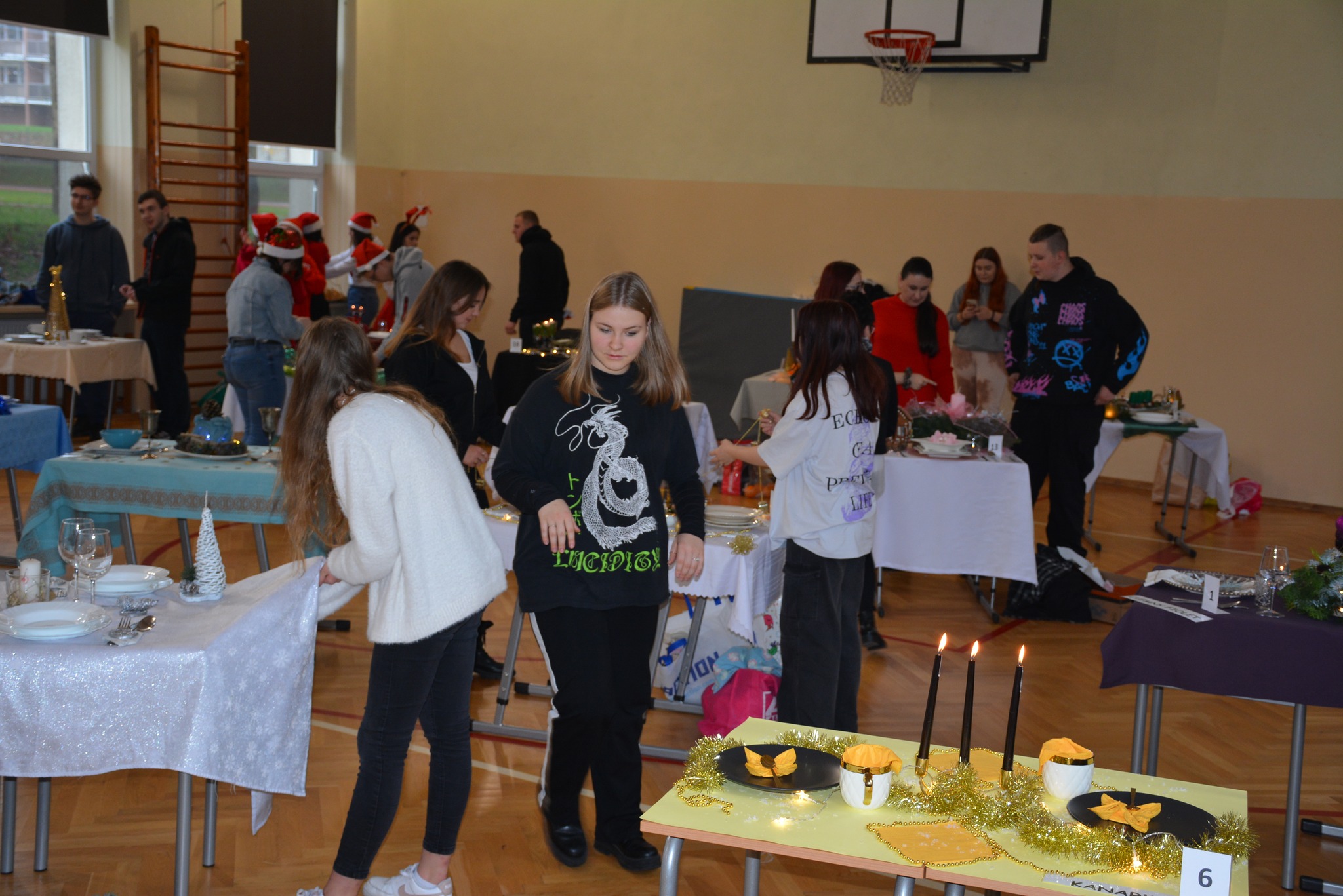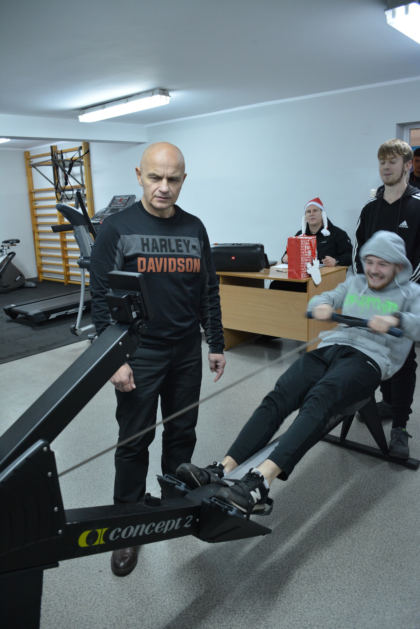 Impreza mikołajkowa - aranżacja stołów Bożonarodzeniowych, zdobienie bombek, wykonanie stroików, świąteczne karaoke, mistrzostwa szkoły na ergometrze wioślarskim, świąteczna rewia mody i zdjęcia w czapkach mikołajkowych.
