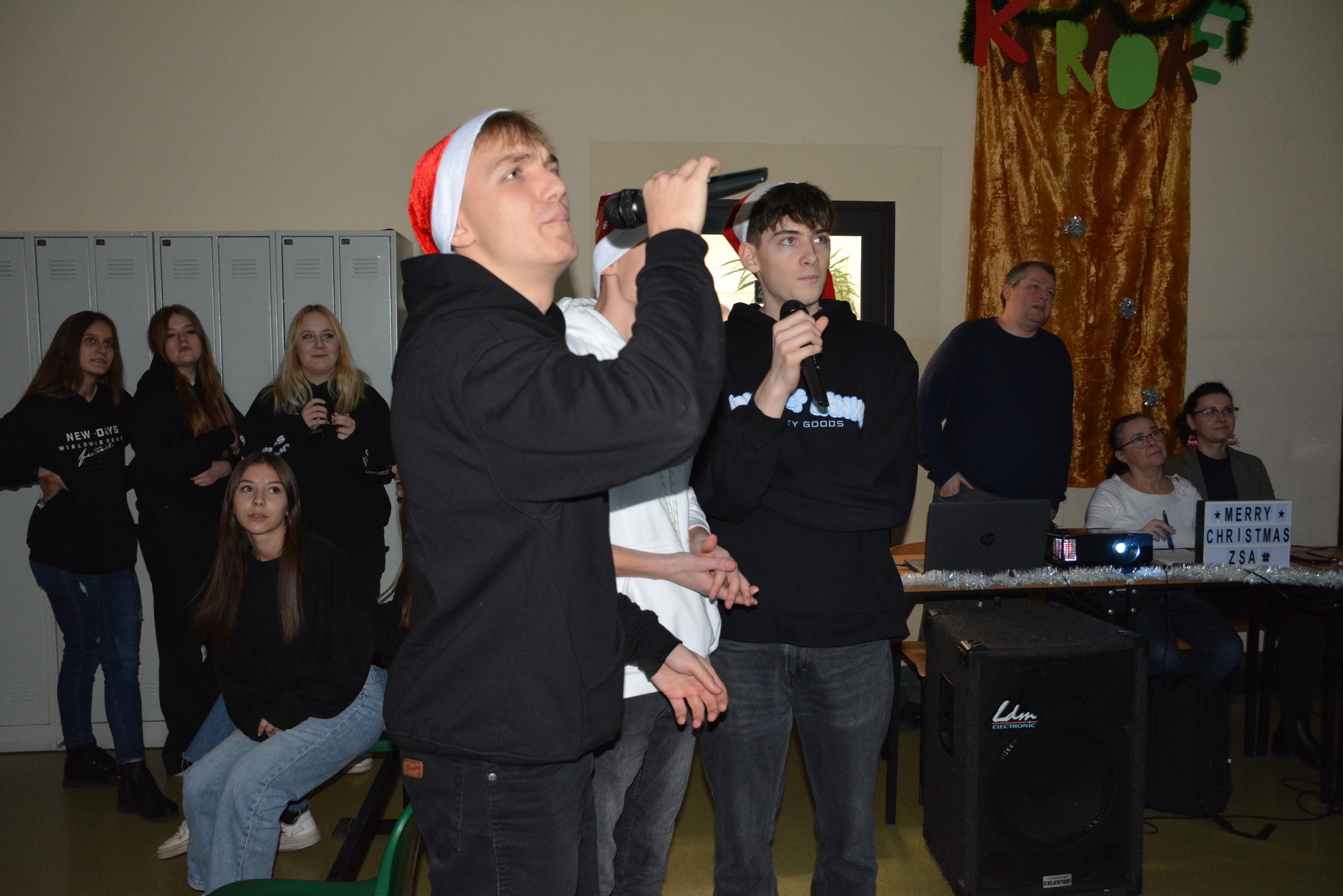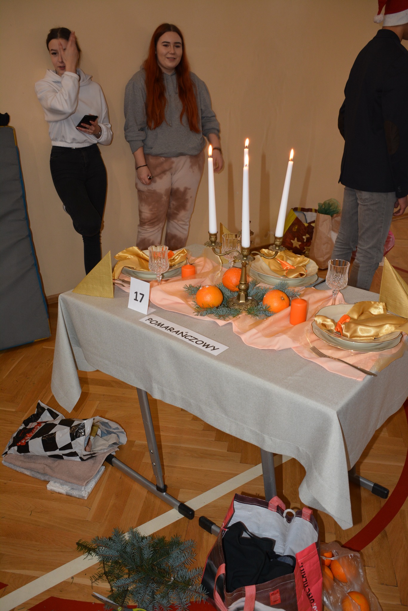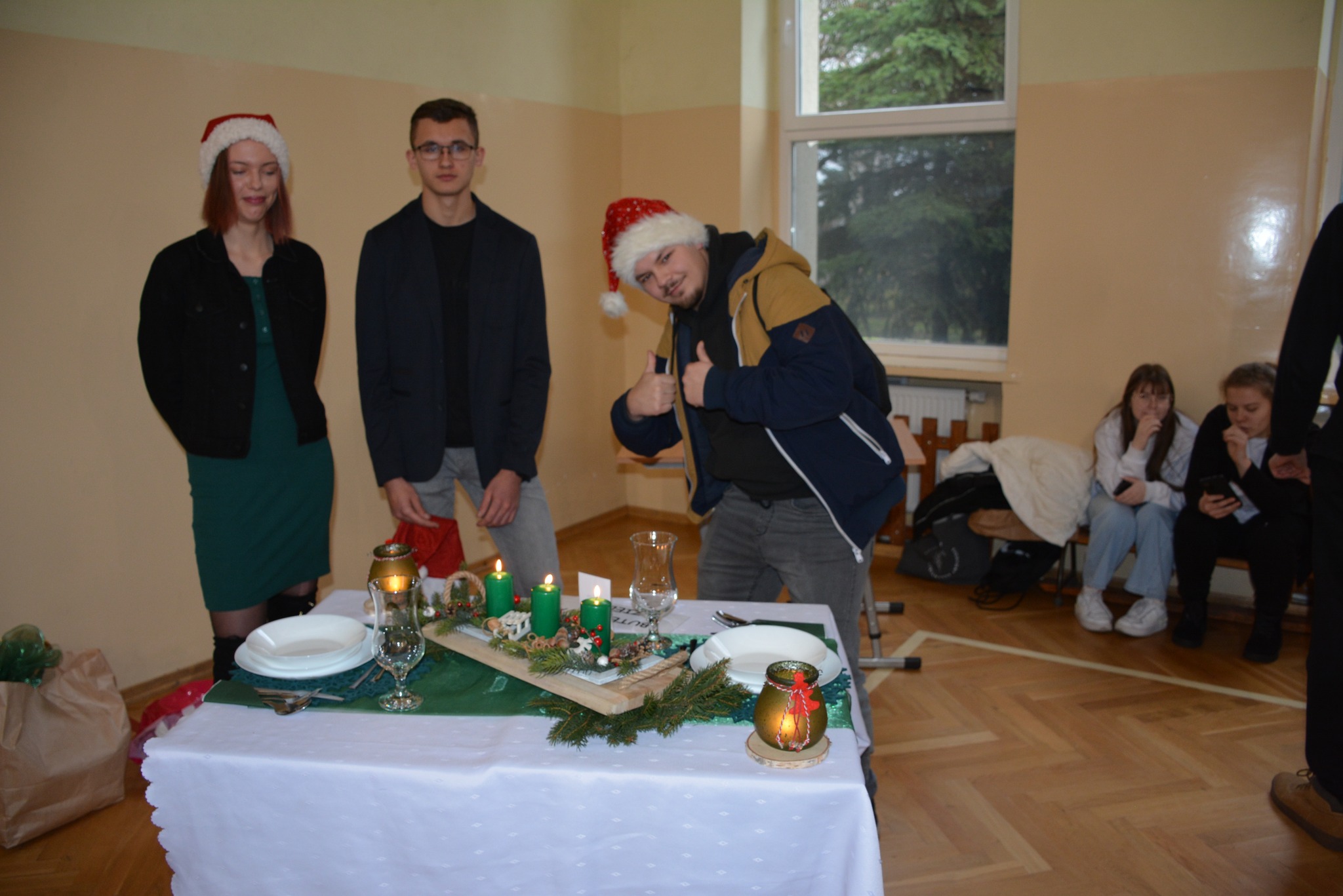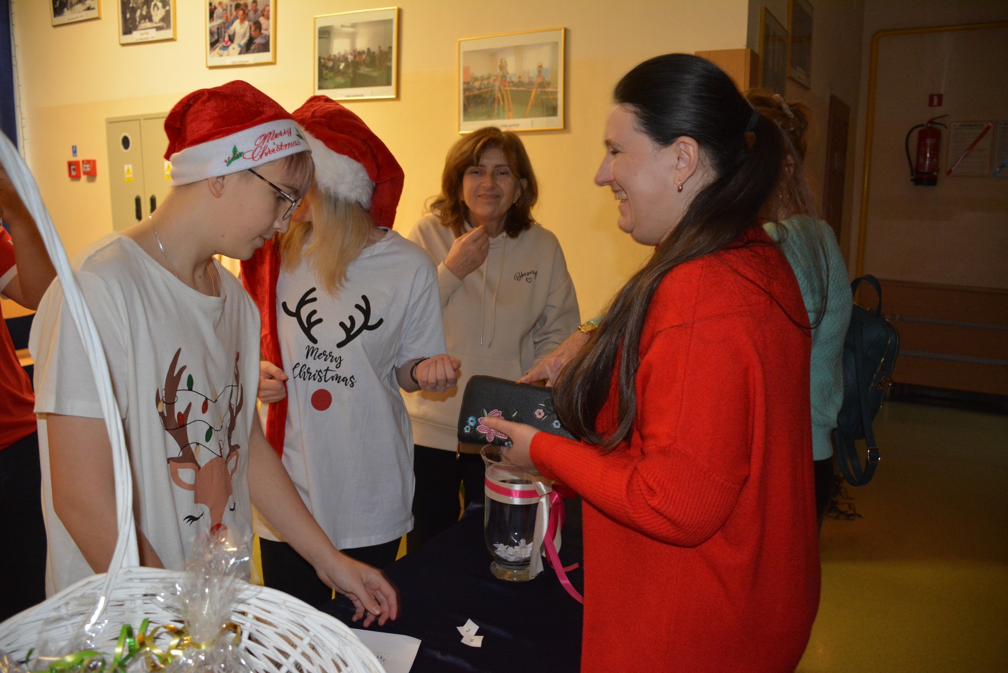Impreza mikołajkowa - aranżacja stołów Bożonarodzeniowych, zdobienie bombek, wykonanie stroików, świąteczne karaoke, mistrzostwa szkoły na ergometrze wioślarskim, świąteczna rewia mody i zdjęcia w czapkach mikołajkowych.