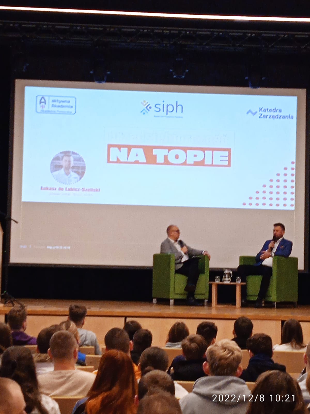 Spotkanie promujące przedsiębiorczość miało formę rozmowy moderatora z gościem, który odniósł spektakularny sukces w biznesie.