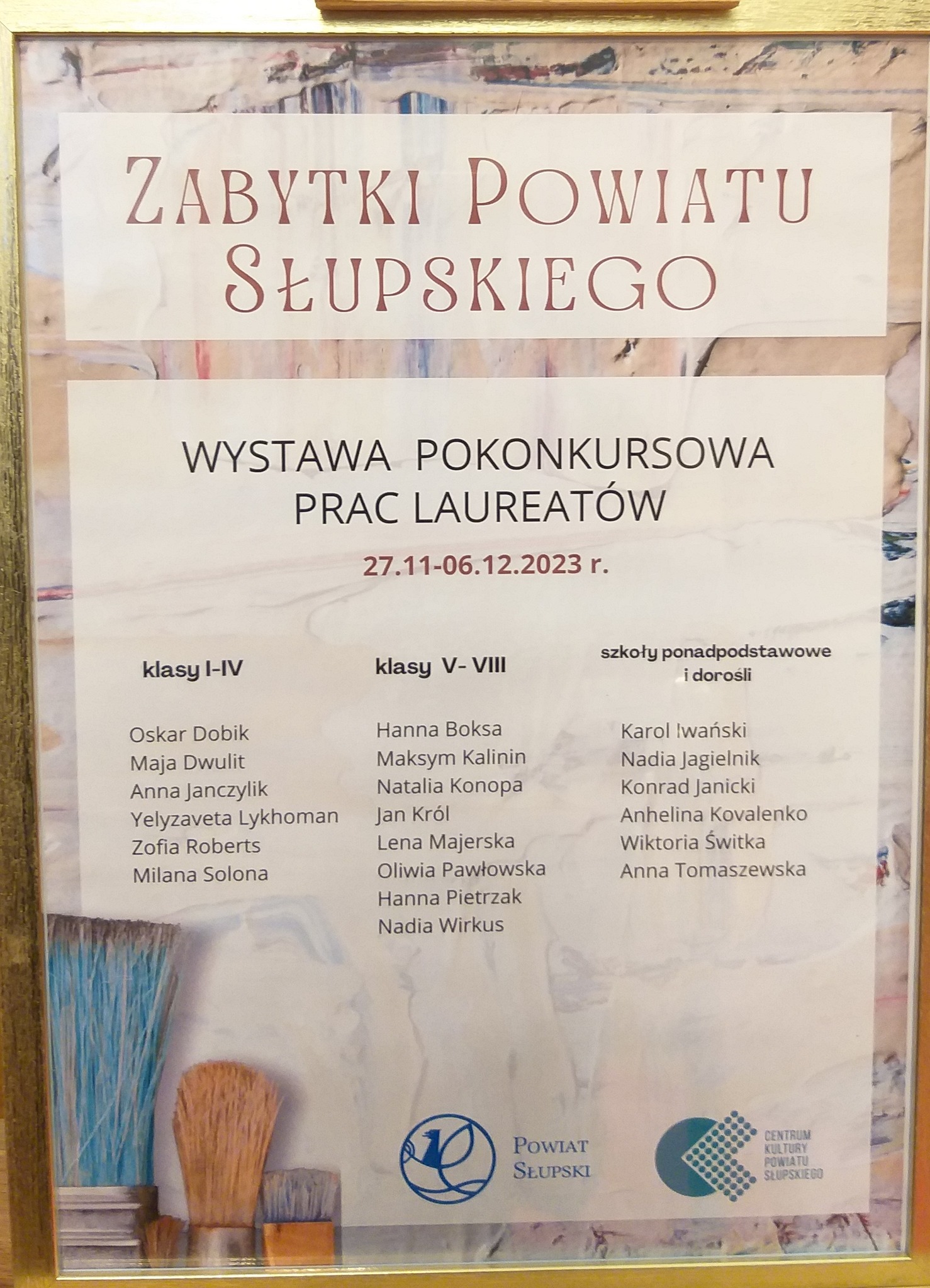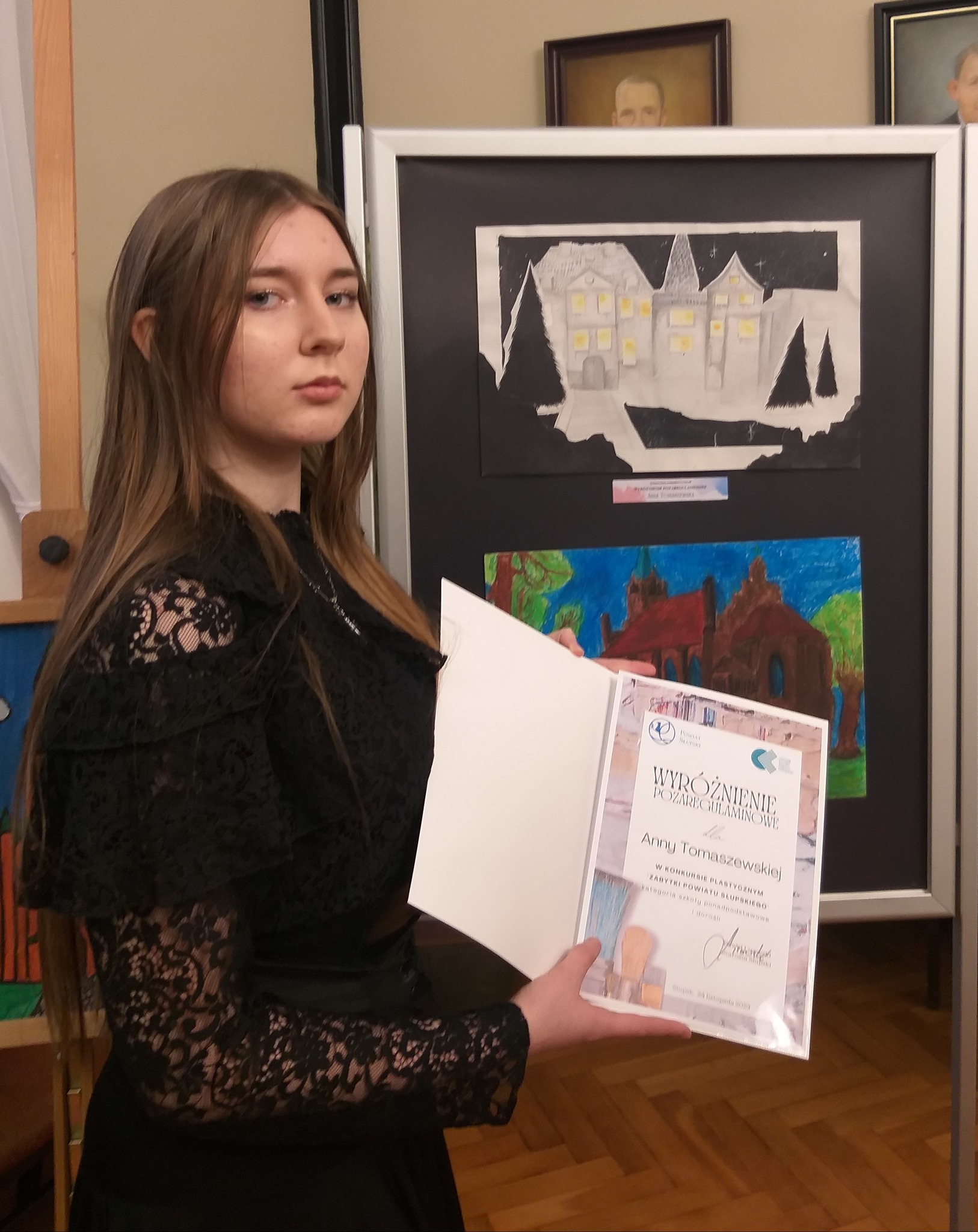 Miło nam poinformować, że uczennica naszej szkoły Anna Tomaszewska ( kl. I TKŚ) otrzymała wyróżnienie w Powiatowym Konkursie Plastycznym „Zabytki Powiatu Słupskiego”. Organizatorami konkursu było Centrum Kultury Powiatu Słupskiego i Powiat Słupski. Konkurs skierowany był do uczniów szkół podstawowych, ponadpodstawowych oraz osób dorosłych. Na konkurs nadesłano ponad 340 prac. Serdecznie gratulujemy!