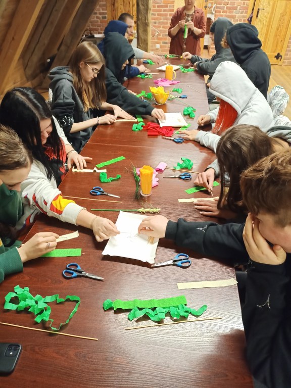 20.03.2024 - wyjazd klasowy w poszukiwaniu wiosny przez klasę 2BK. Warsztaty w Swołowie, robienie palm wielkanocnych i baranków z cukru oraz fajne wspólne ognisko z kiełbaskami i placuszkami drożdżowymi, oczywiście z wychowawcą Waldemarem Stachowskim i panią Janiną Woznicką . Było tak miło i fantastycznie, że za rok wrócimy do Muzeum w Swołowie!