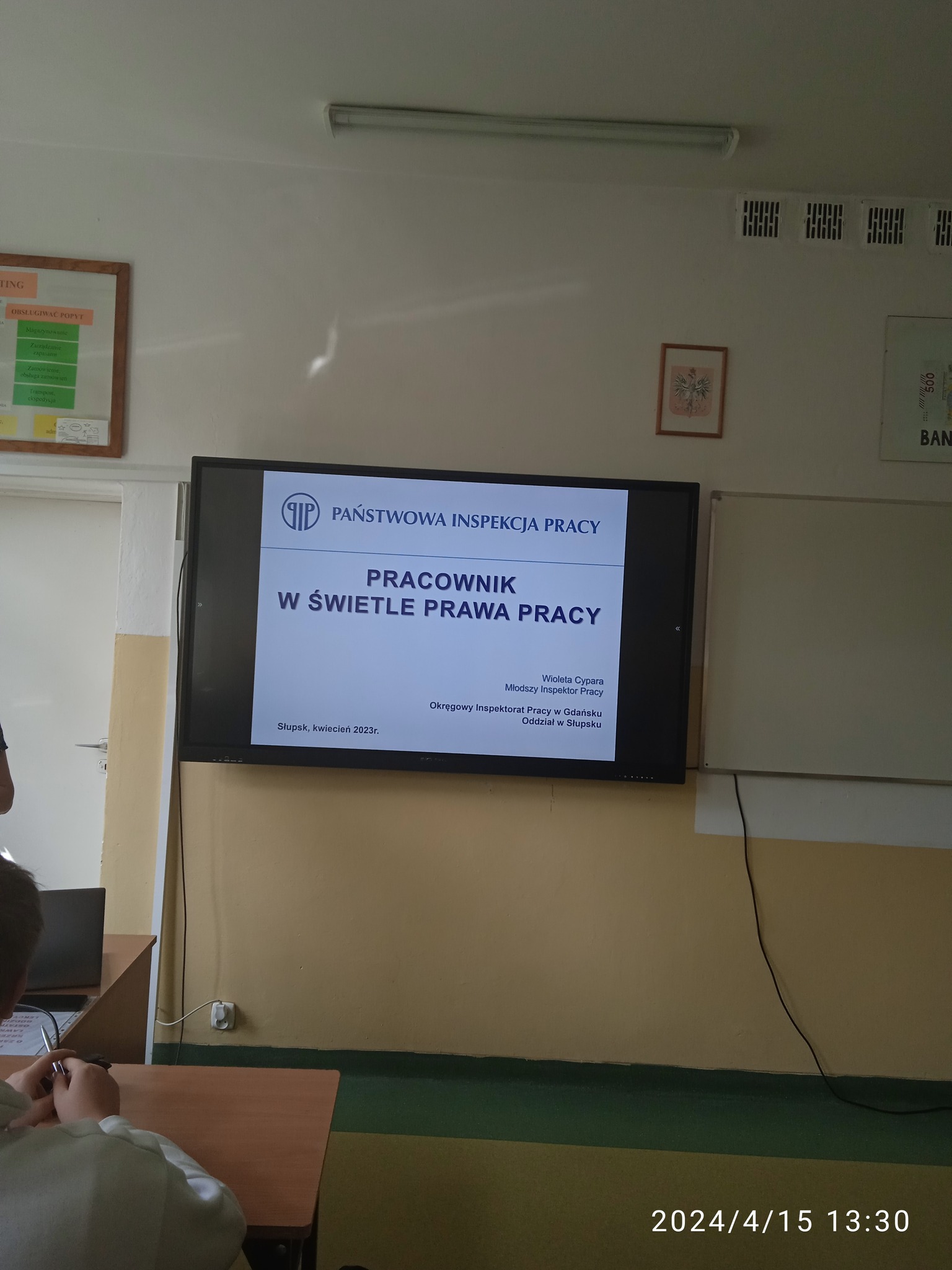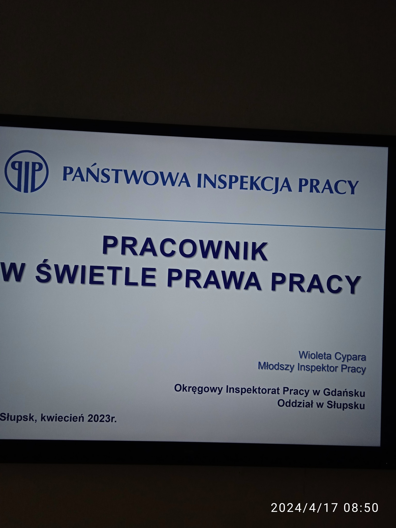 Prelekcje, których tematem był "Pracownik w świetlne prawa pracy", przeprowadzone zostały przez przedstawiciela Okręgowego Inspektoratu Pracy w Gdańsku, Oddział w Słupsku, panią Wioletę Cypara,