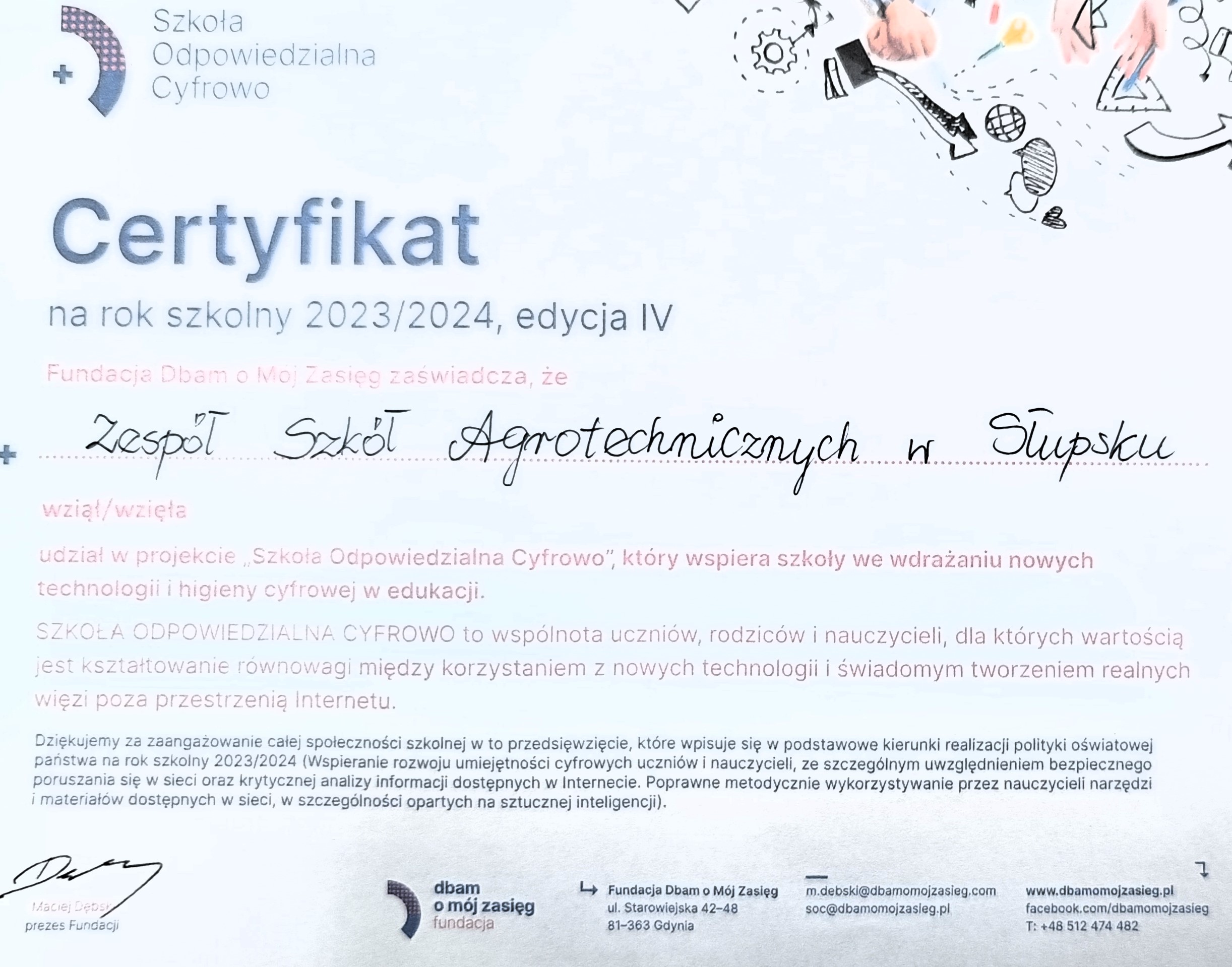 Witaj na stronie Zespołu Szkół Agrotechnicznych im. Władysława Reymonta w Słupsku. Zapraszamy do zapoznania się z ofertą kształcenia oraz aktualnościami szkolnymi.