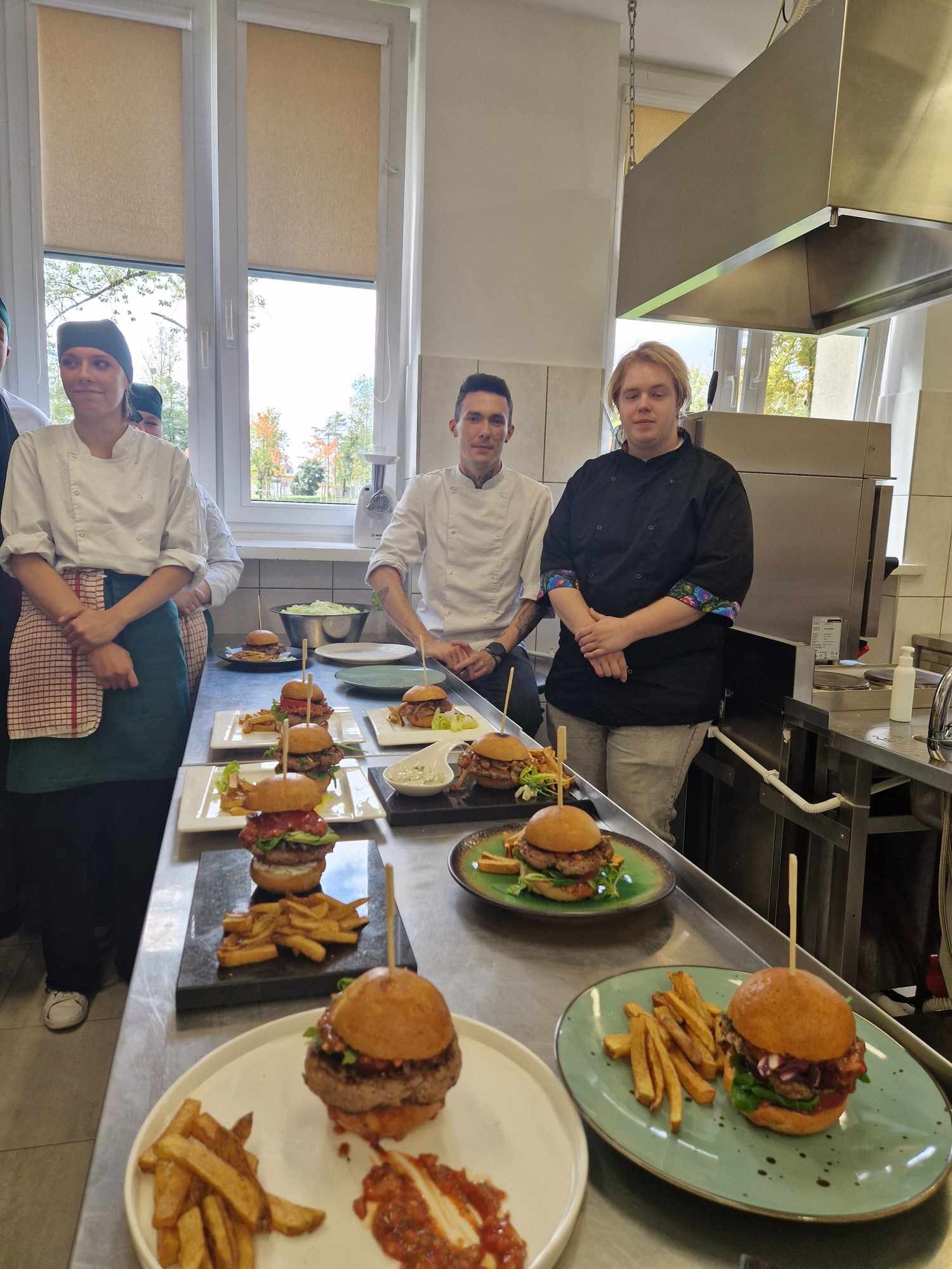 Klasyk kuchni amerykańskiej gościł w naszej pracowni gastronomicznej. BURGERY - to coś bardziej wyrafinowanego niż amerykańska kanapka. Szkolenie dla klas gastronomicznych przeprowadził szef kuchni restauracji "HOKUS- POKUS" Patryk Początko wraz ze starszym kucharzem Mateuszem Głowińskim- który jest absolwentem naszej szkoły. Kulinarne umiejętności szefa kuchni pomogą na pewno zainspirować swoimi pomysłami młodych kucharzy i techników żywienia. Liczymy na to, że zdobyte doświadczenie przyczyni się do rozwoju młodych Masterchef.
