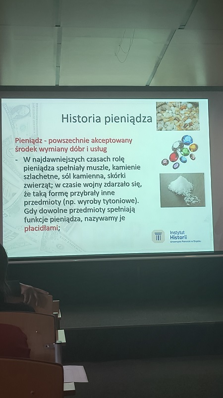 Celem projektu jest rozszerzenie zagadnień z zakresu ekonomii i przedsiębiorczości realizowanych w ramach przedmiotu biznes i zarządzanie w szkołach ponadpodstawowych. Na spotkaniu, które odbyło się na Uniwersytecie Pomorskim, uczniowie poszerzyli swoją wiedzę z historii pieniądza obejmującą cały proces ewolucji form pieniądza od barteru do czasów współczesnych.