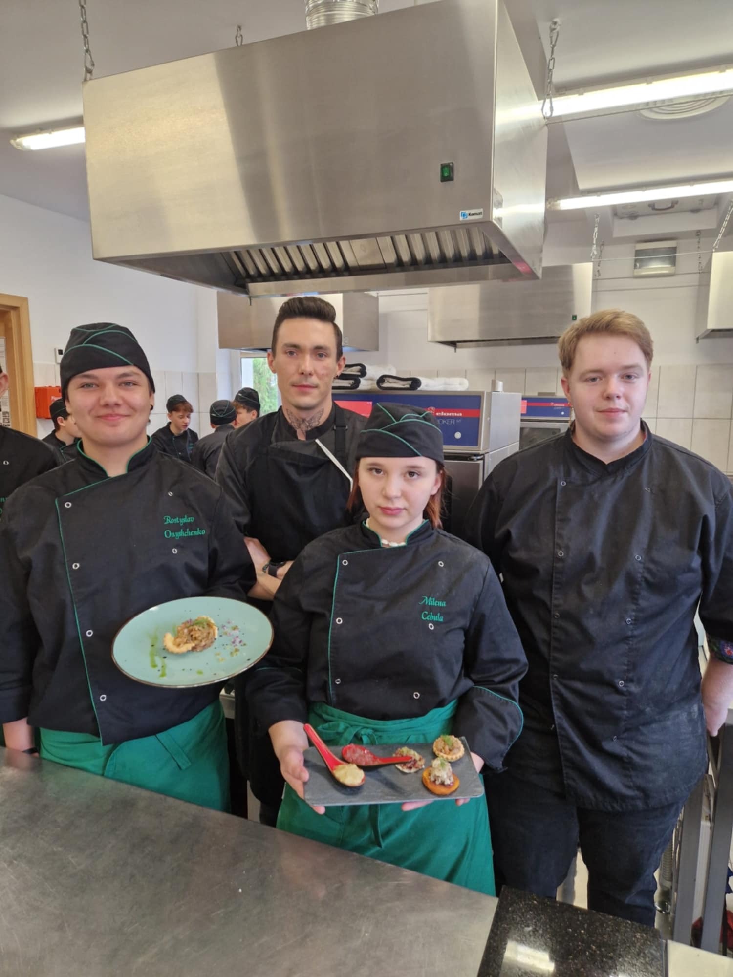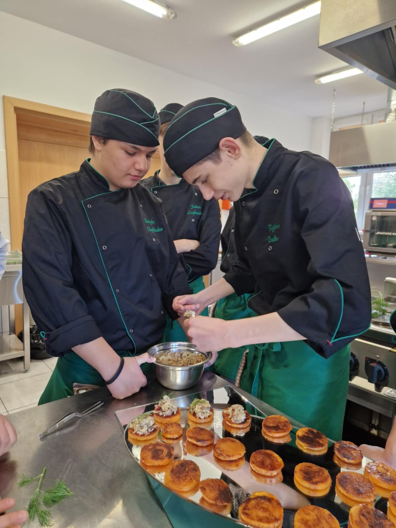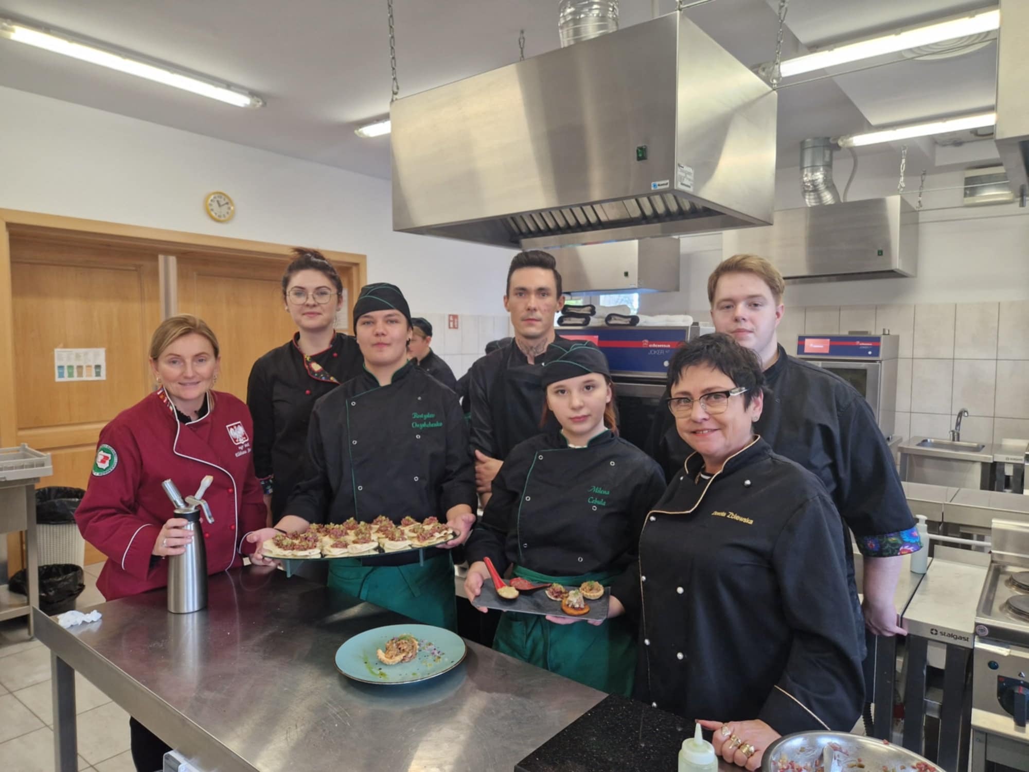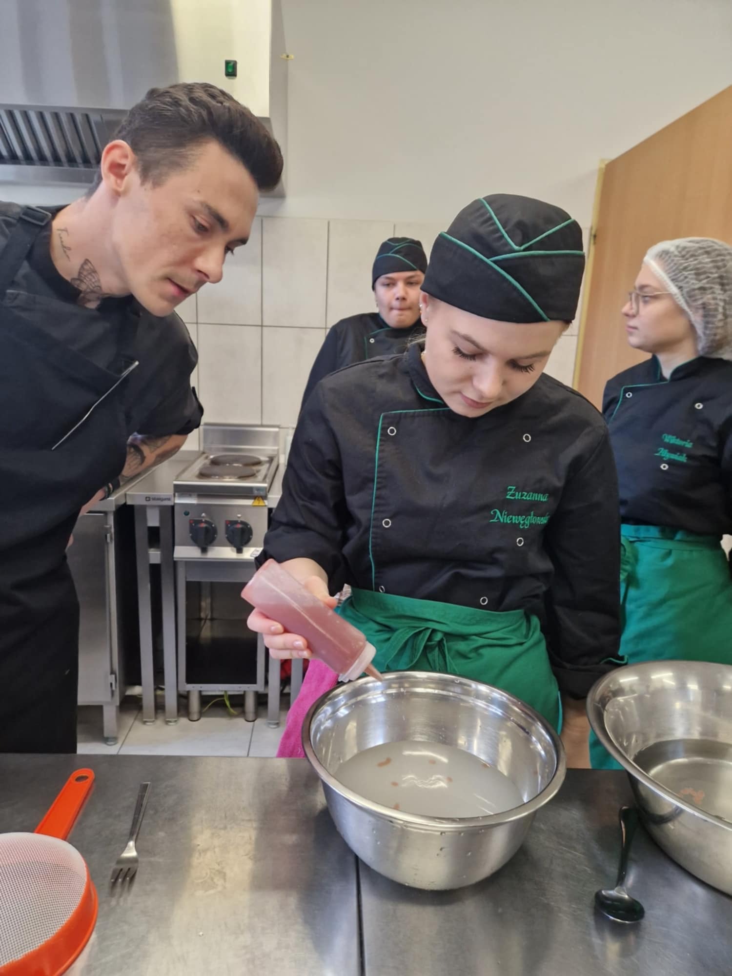 "HOKUS-POKUS" restauracja i szef kuchni Patryk Początko. To były prawdziwe czary-KUCHNIA MOLEKULARNA. Nowoczesne techniki sporządzania potraw wciąż zadziwają. Mieliśmy tą okazję poznać jak osiągnąć nowoczesny talerz do serwowania potraw, a także sporządzić kilka FINGER- FOOD. To w chwili obecnej najnowsze trendy kuchni światowej. W asyście szefa kuchni uczestniczył nasz absolwent starszy kucharz Mateusz Głowiński.