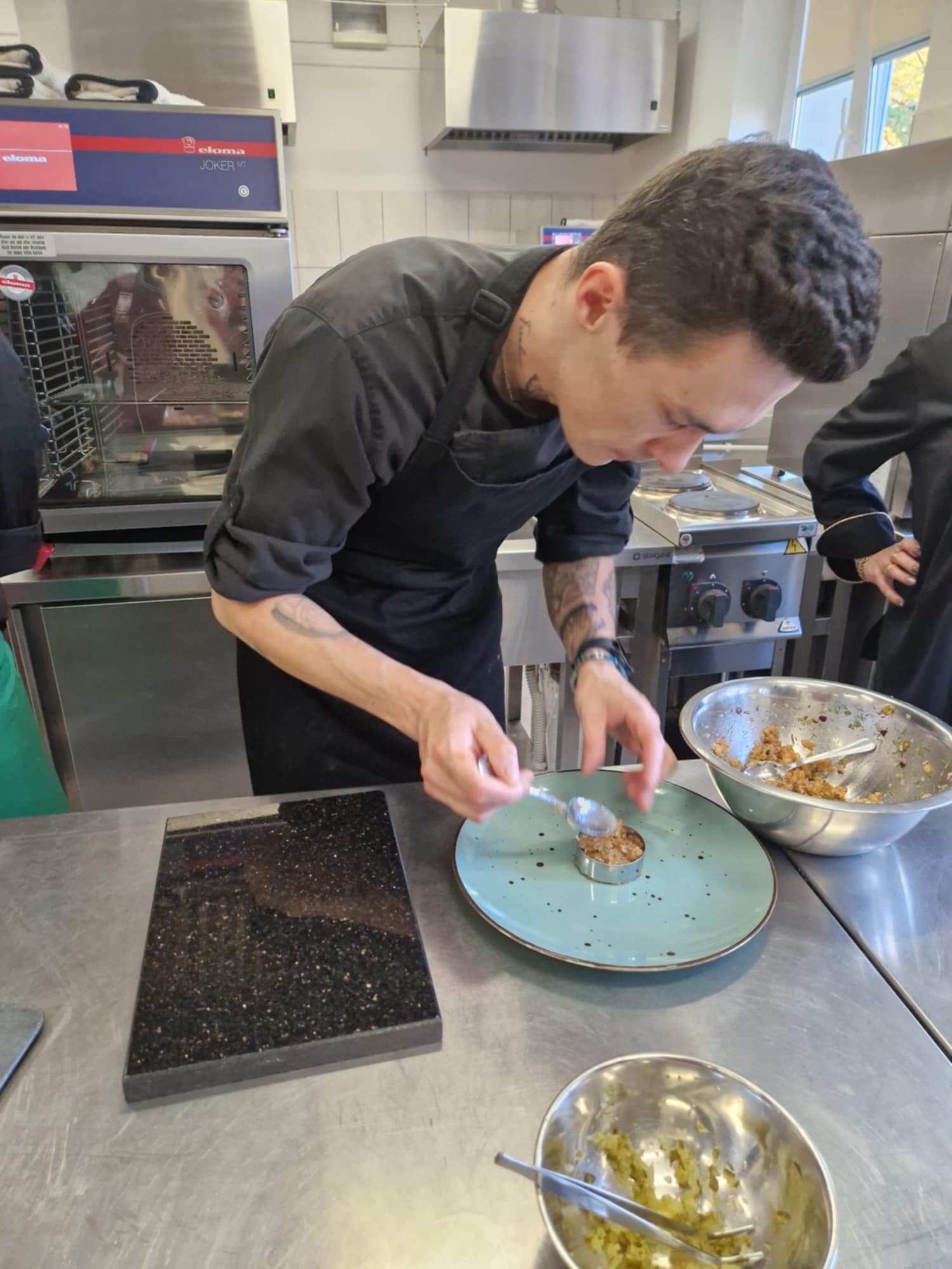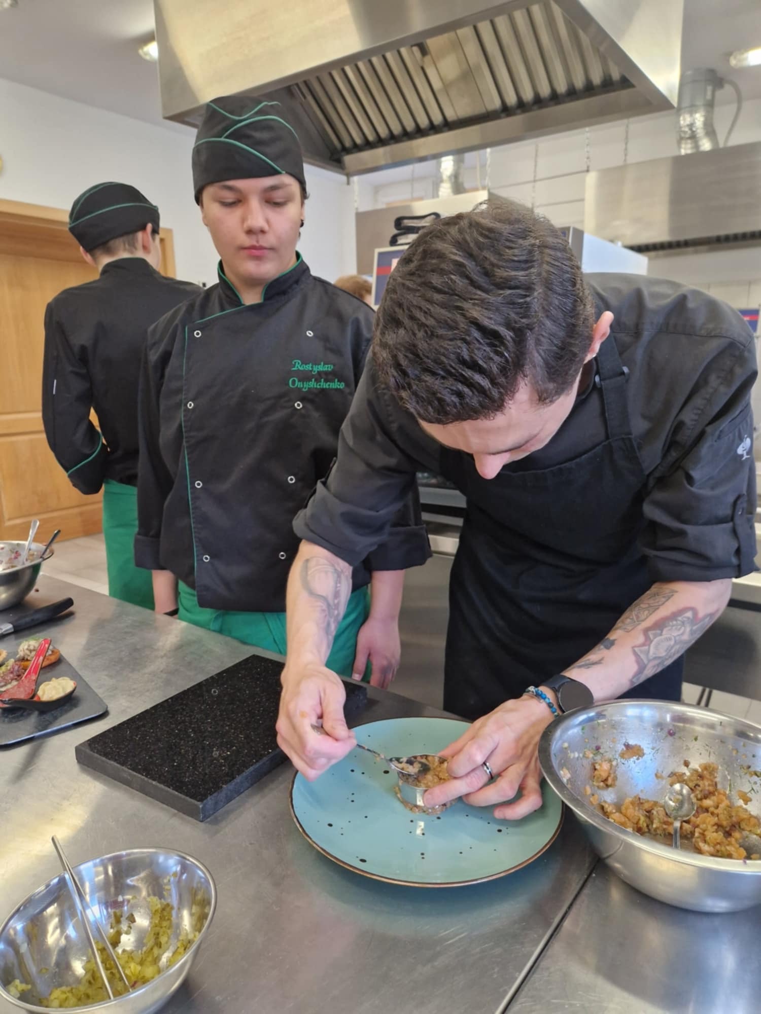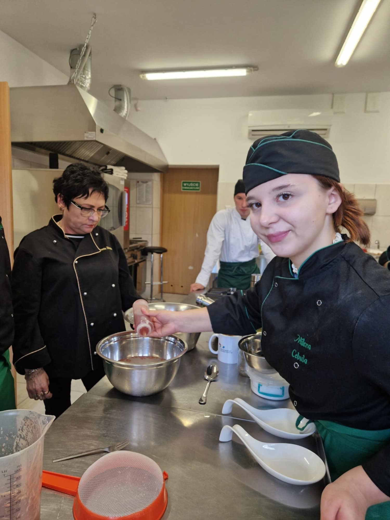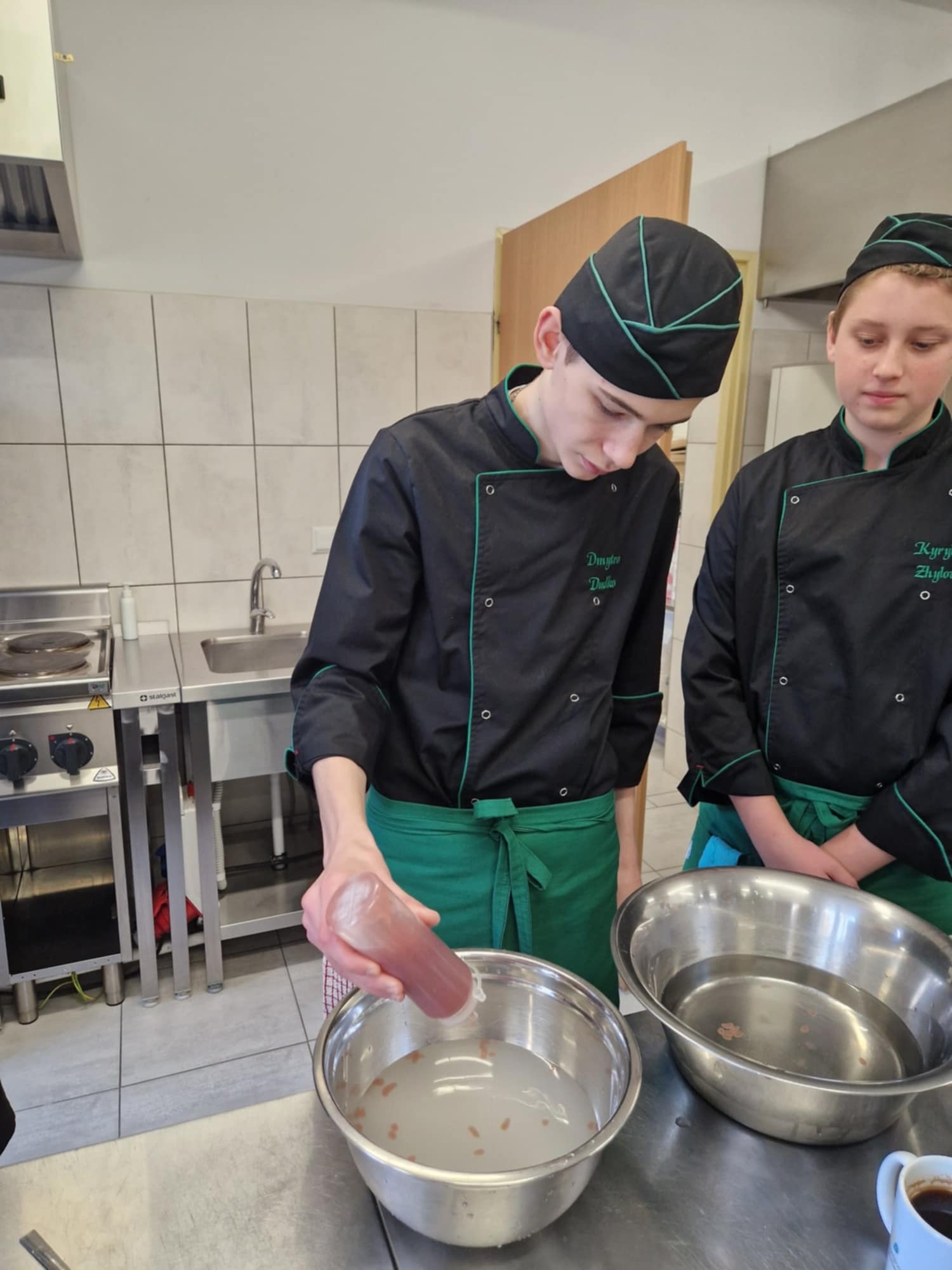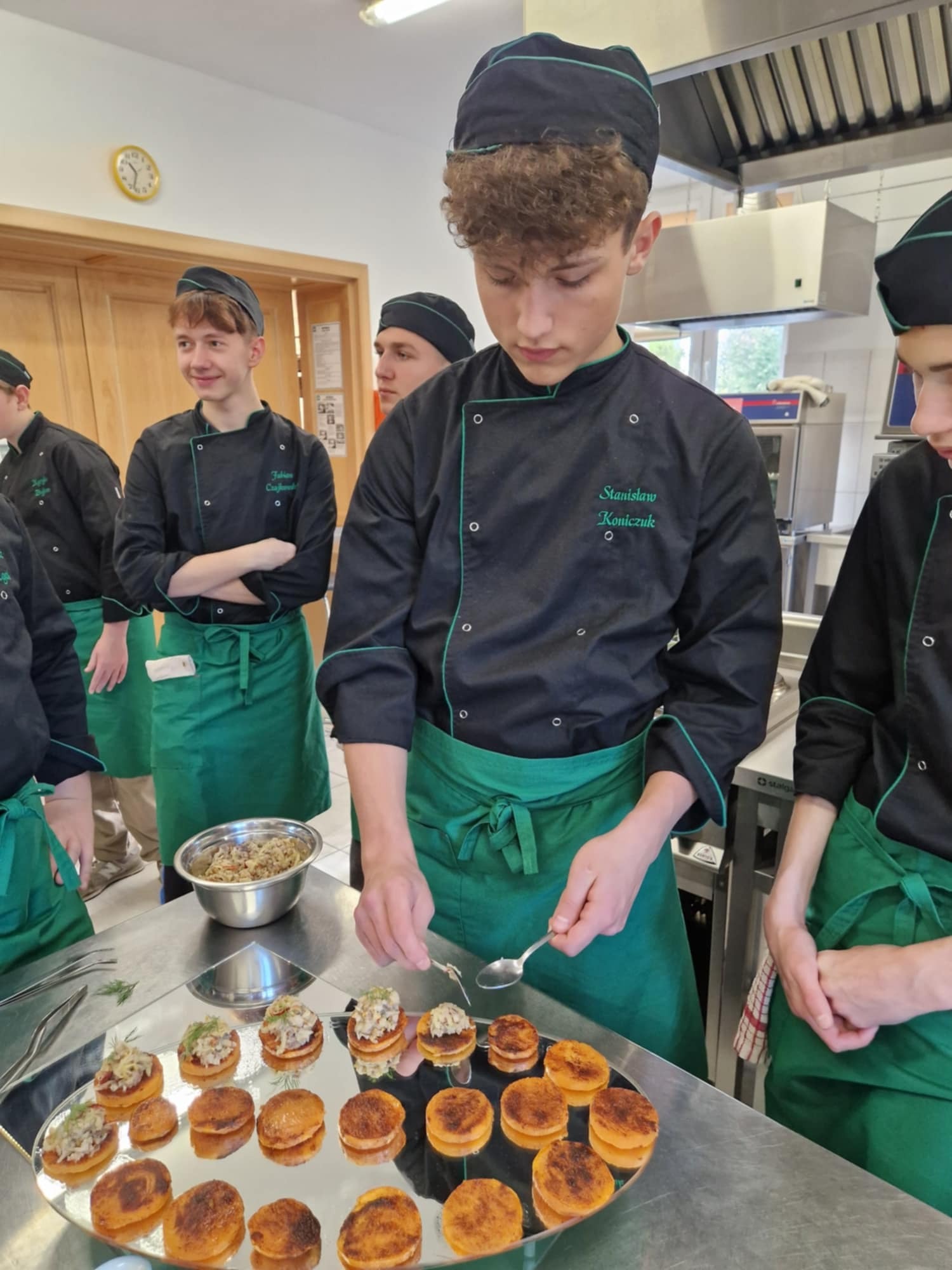"HOKUS-POKUS" restauracja i szef kuchni Patryk Początko. To były prawdziwe czary-KUCHNIA MOLEKULARNA. Nowoczesne techniki sporządzania potraw wciąż zadziwają. Mieliśmy tą okazję poznać jak osiągnąć nowoczesny talerz do serwowania potraw, a także sporządzić kilka FINGER- FOOD. To w chwili obecnej najnowsze trendy kuchni światowej. W asyście szefa kuchni uczestniczył nasz absolwent starszy kucharz Mateusz Głowiński.
