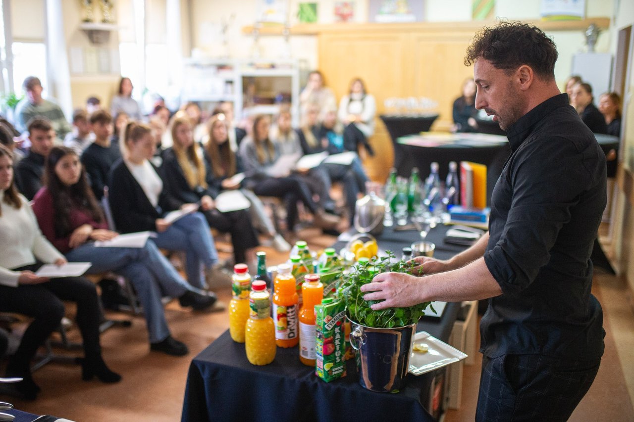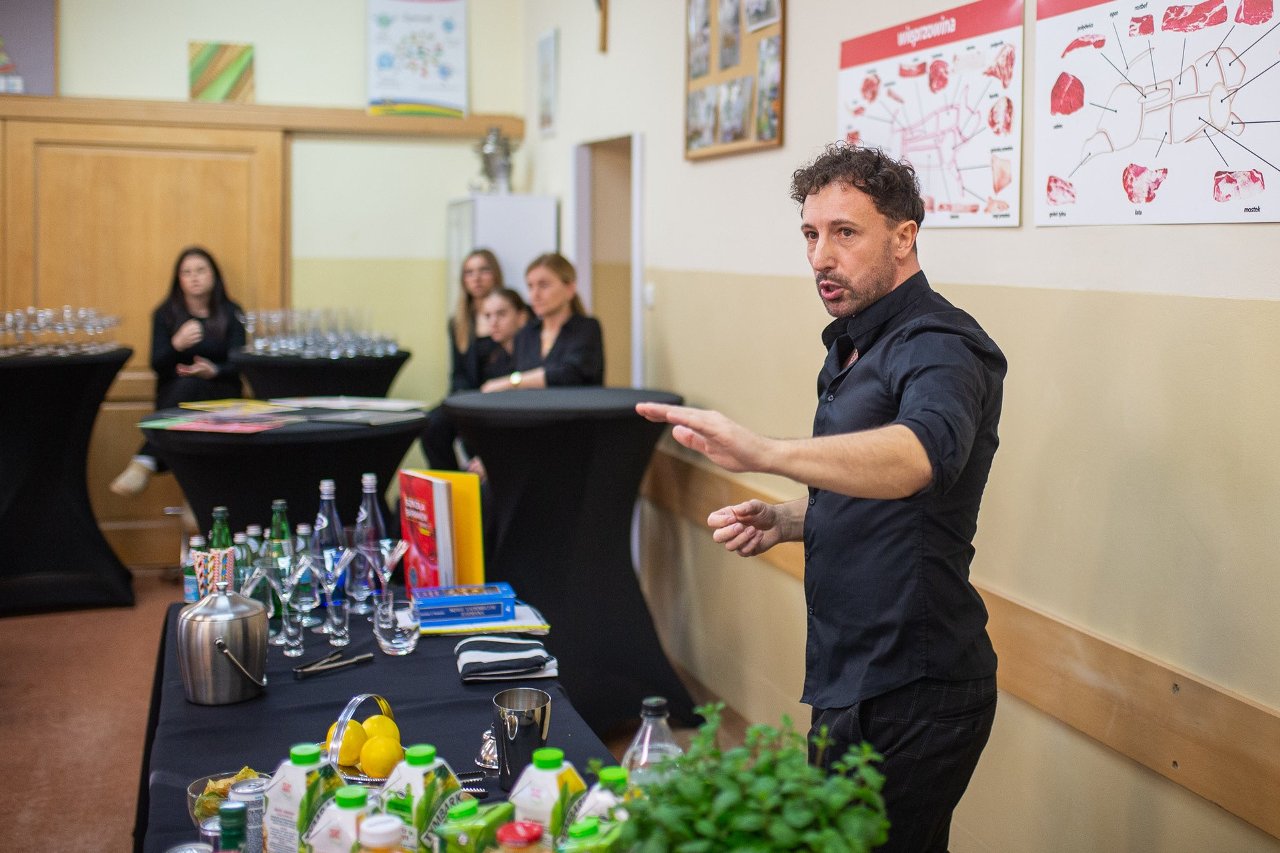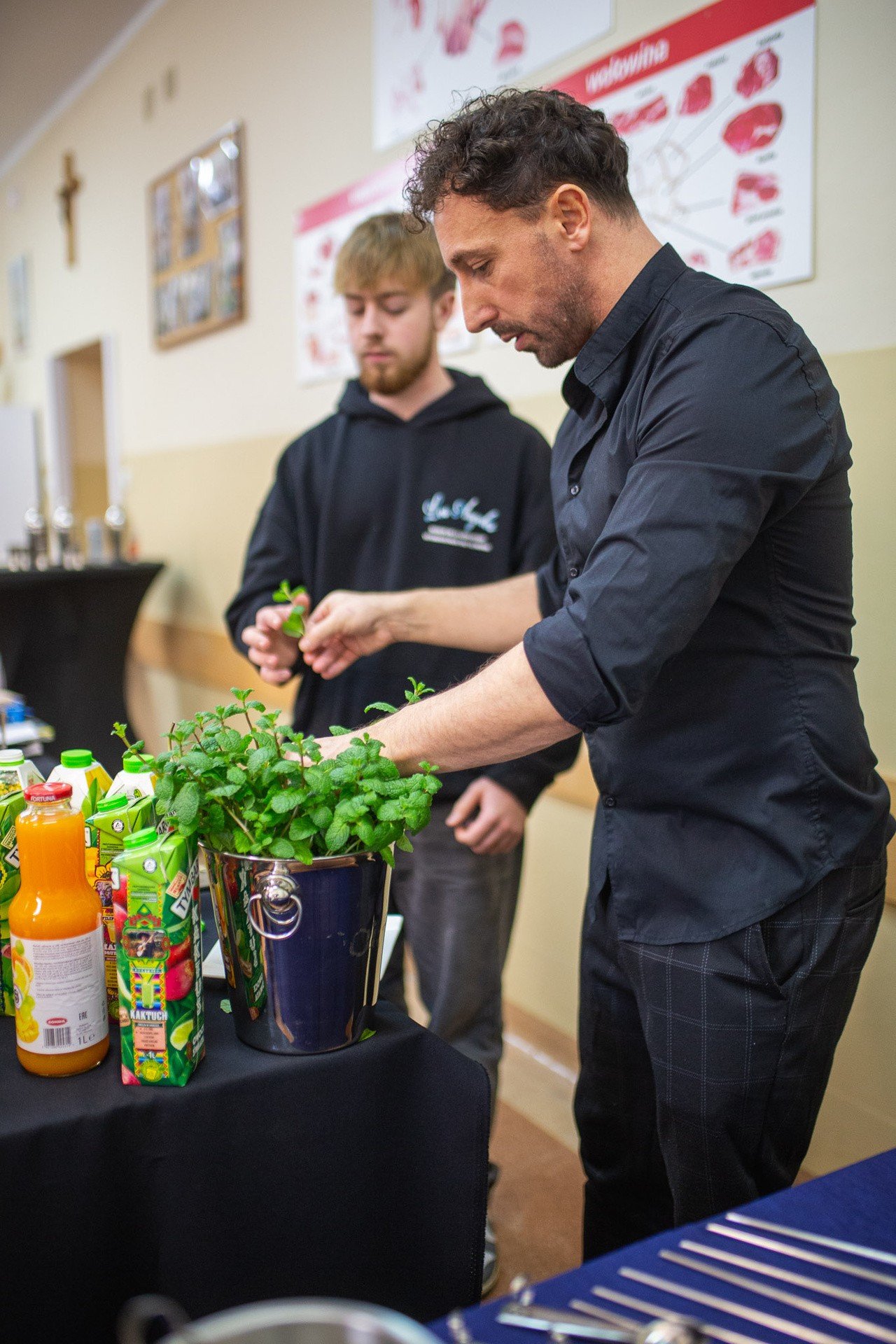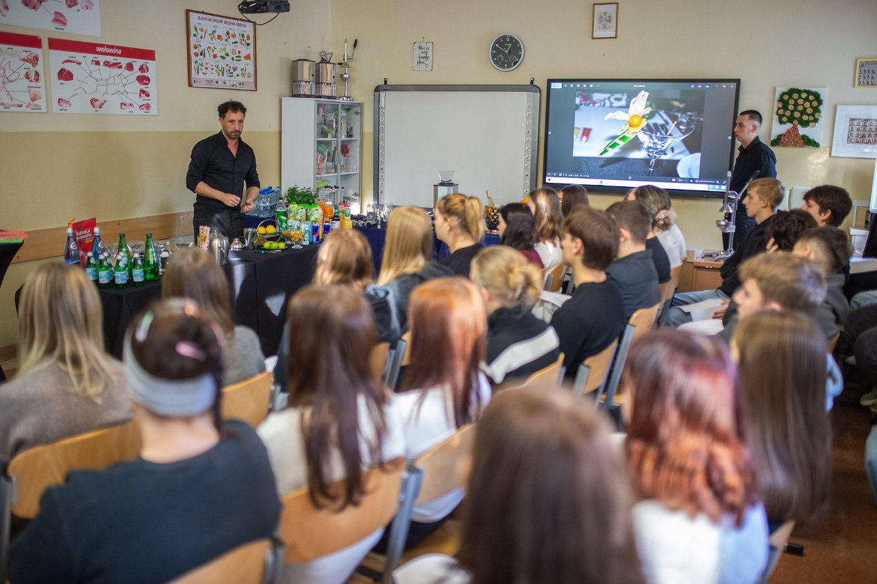 Zajęcia dla uczniów piątych klas z kierunków technik żywienia i usług gastronomicznych oraz technik technologii żywności poprowadził Daniel Poświętny - dyplomowany barman mixer drugiego stopnia, były członek Stowarzyszenia Polskich Barmanów, współzałożyciel pierwszego w Słupsku koła barmańskiego.