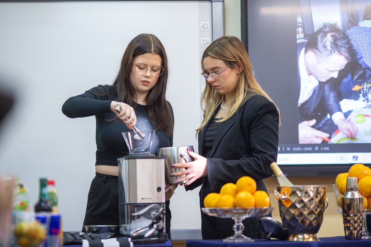 Na zajęciach uczniowie poznali techniki atrakcyjnego prezentowania drinków, czy też różne metody mieszania. Wszystko po to, aby uzyskać pożądany smak i konsystencję napojów. Oprócz tego, uczniowie zapoznali się z recepturami, proporcjami i pomiarami, nauczyli się przygotowywać klasyczne koktajle, takie jak Margarita, Mojito, Martini, a także dowiedzieli się, jak wygląda układ i organizacja stanowiska barowego.