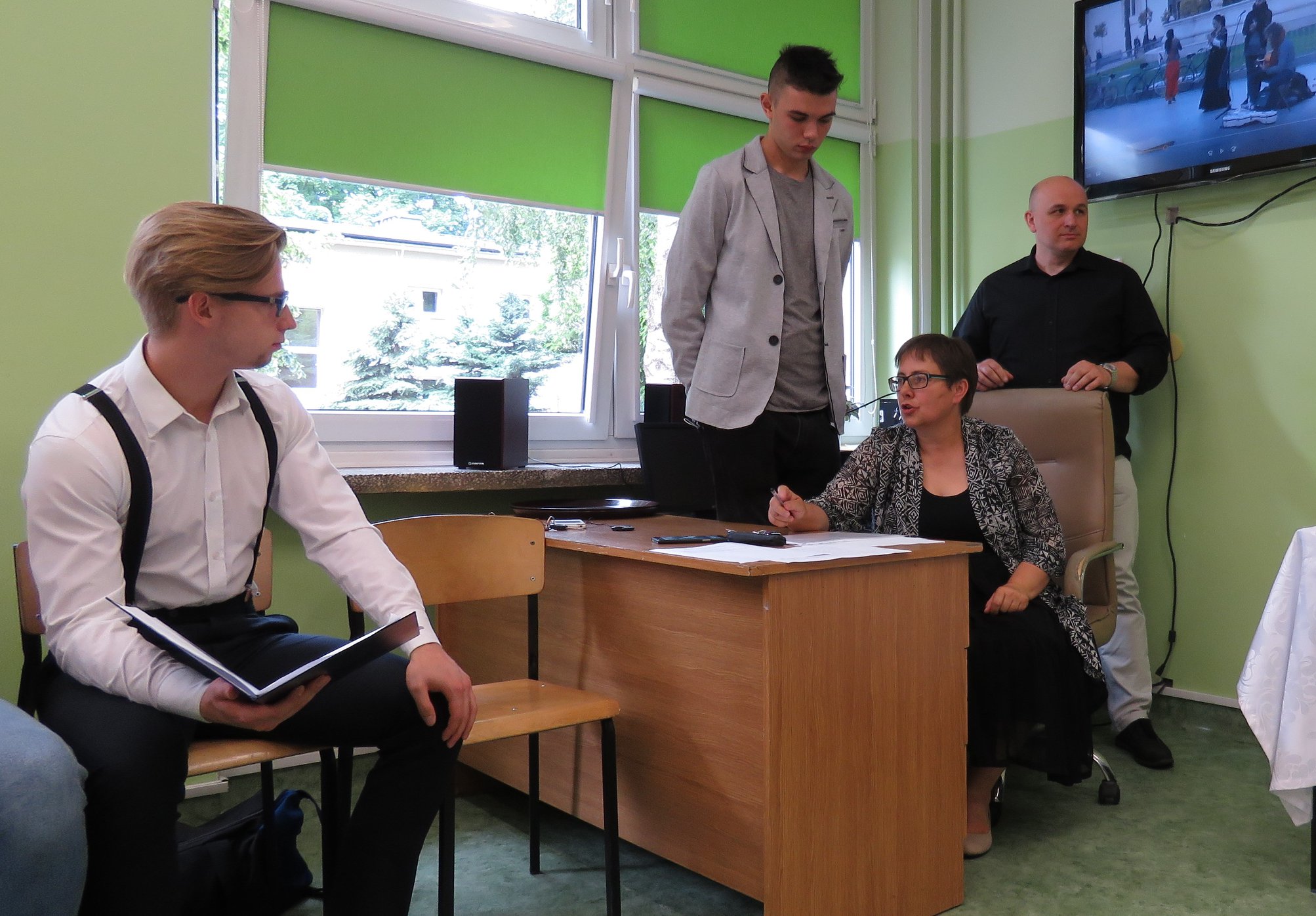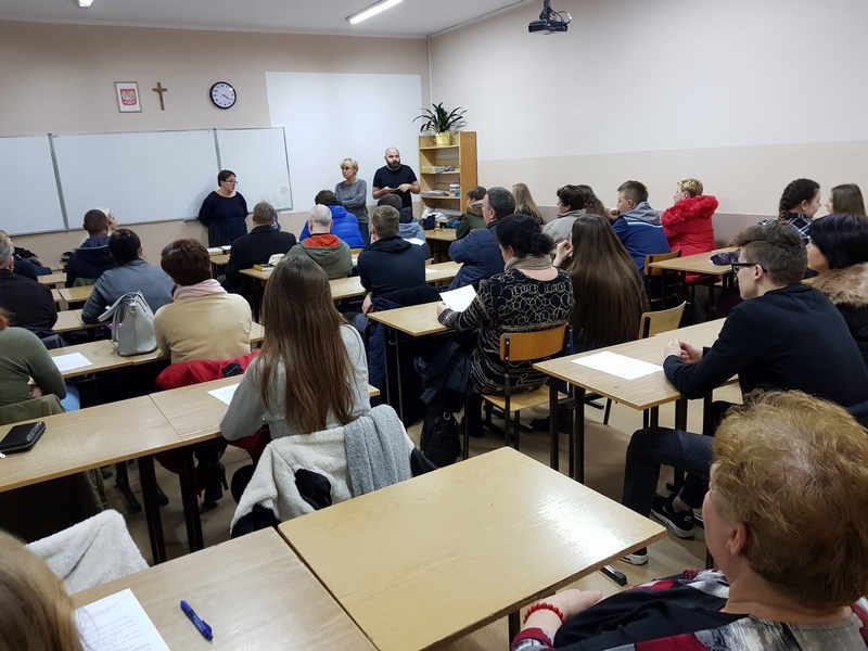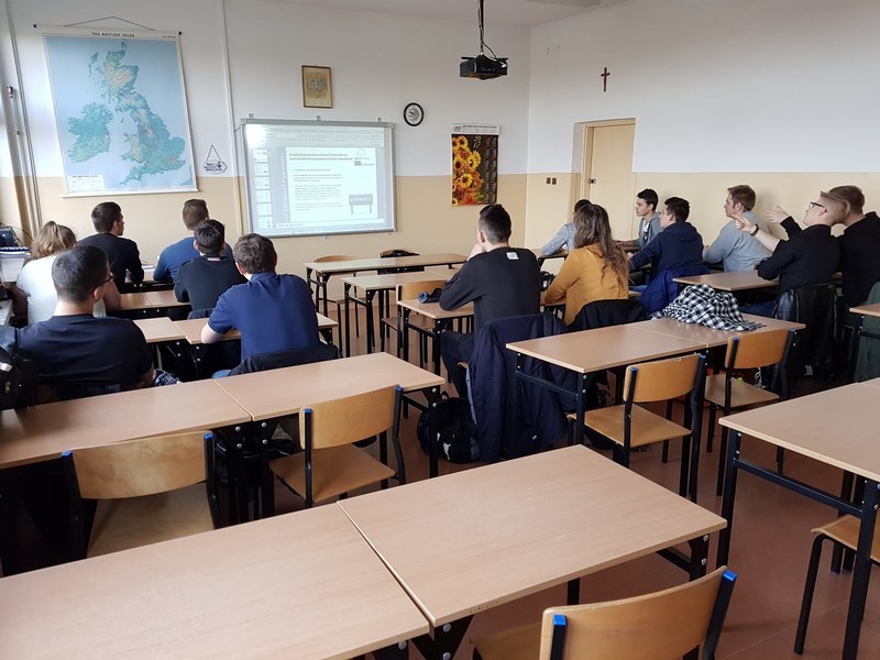 Pani dyrektor- mgr inż. Iwona Wojtkiewicz omówiła główne założenia ww. projektu oraz podsumowała jego przebieg. Przedstawiciele stażystów podzielili się wrażeniami z pobytu na stażach w Hiszpanii oraz omówili korzyści wynikające z udziału w projektach, realizowanych w ramach programu Erasmus+. Następnie zebrani obejrzeli film, dokumentujący przebieg praktyk oraz pobyt stażystów w Hiszpanii.
