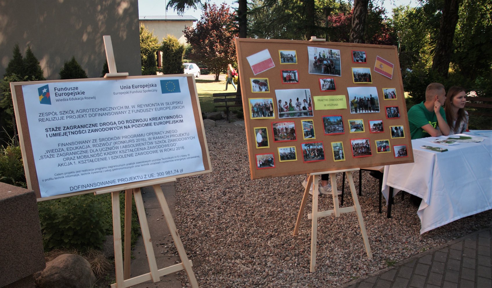 Uczniowie klas III technikum Zespołu Szkół Agrotechnicznych im. W. Reymonta w Słupsku, którzy uczestniczyli w projekcie zagranicznych staży zawodowych odbywanych w Sevilii, upowszechniali efekty projektu i dzielili się swoimi wrażeniami oraz doświadczeniami z uczniami gimnazjów i szkół podstawowych ze Słupska i powiatu słupskiego na II Powiatowej Olimpiadzie Pierwszej Pomocy oraz IV biegu AGRO CROSS. Obie ww. imprezy odbywały się dnia 25.05.2018 r. w Zespole Szkół Agrotechnicznych im. W. Reymonta w Słupsku i były objęte honorowym patronatem Starosty Słupskiego Zdzisława Kołodziejskiego. Uczestniczyło w nich około 200 uczniów oraz przedstawiciele lokalnych władz, jak również osoba delegowana z Urzędu Marszałkowskiego z Gdańska. Uczestnicy projektu staży zawodowych, realizowanego przez uczniów ZSA im. W. Reymonta w Słupsku, pod nazwą „Staże zagraniczne drogą do rozwoju kreatywności i umiejętności zawodowych na poziomie europejskim”, finansowanego ze środków Programu Operacyjnego Wiedza Edukacja Rozwój (Konkurs 2016), w ramach projektu „Staże zagraniczne dla uczniów i absolwentów szkół zawodowych oraz mobilność kadry kształcenia zawodowego” przygotowali plakaty, filmy, ulotki oraz tablicę ze zdjęciami, które dokumentowały przebieg i efekty ww. projektu. Prezentowali i rozpowszechniali je wśród uczniów gimnazjów i szkół podstawowych ze Słupska i powiatu słupskiego, biorących udział ww. imprezach, odpowiadali na ich pytania oraz zachęcali do uczestniczenia w projektach ERASMUS+. Promocją i upowszechnianiem efektów projektu zajmowała się Zenobia Dąbrowska – koordynator projektu, nauczyciel Zespołu Szkół Agrotechnicznych w Słupsku.