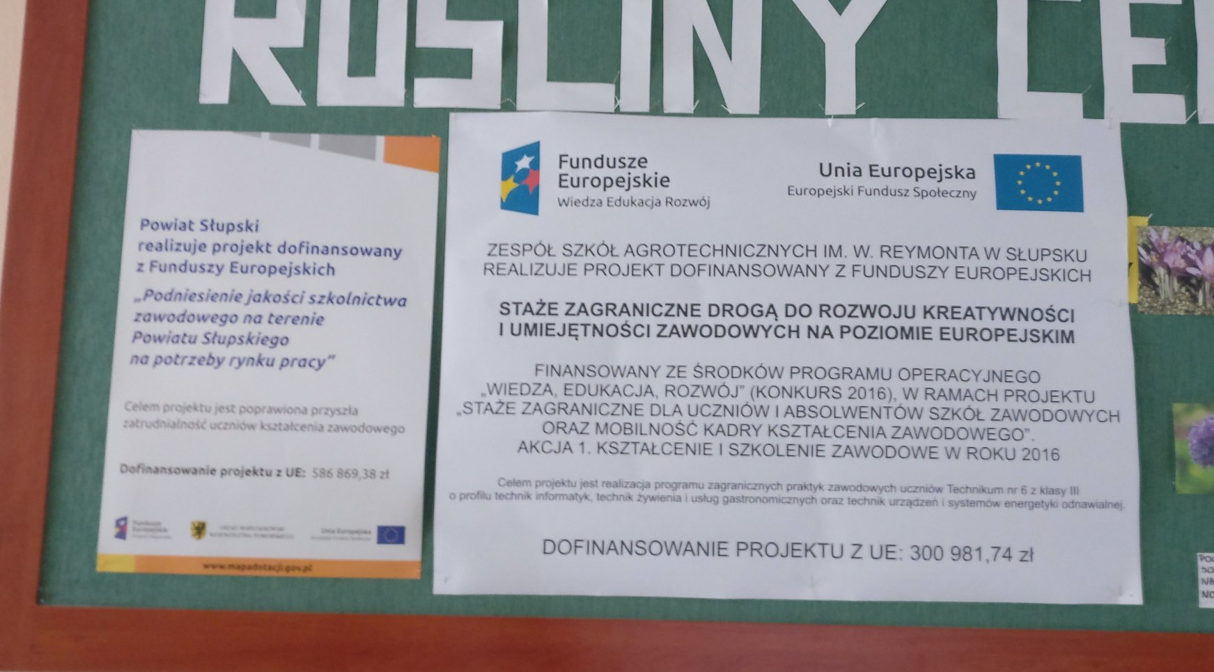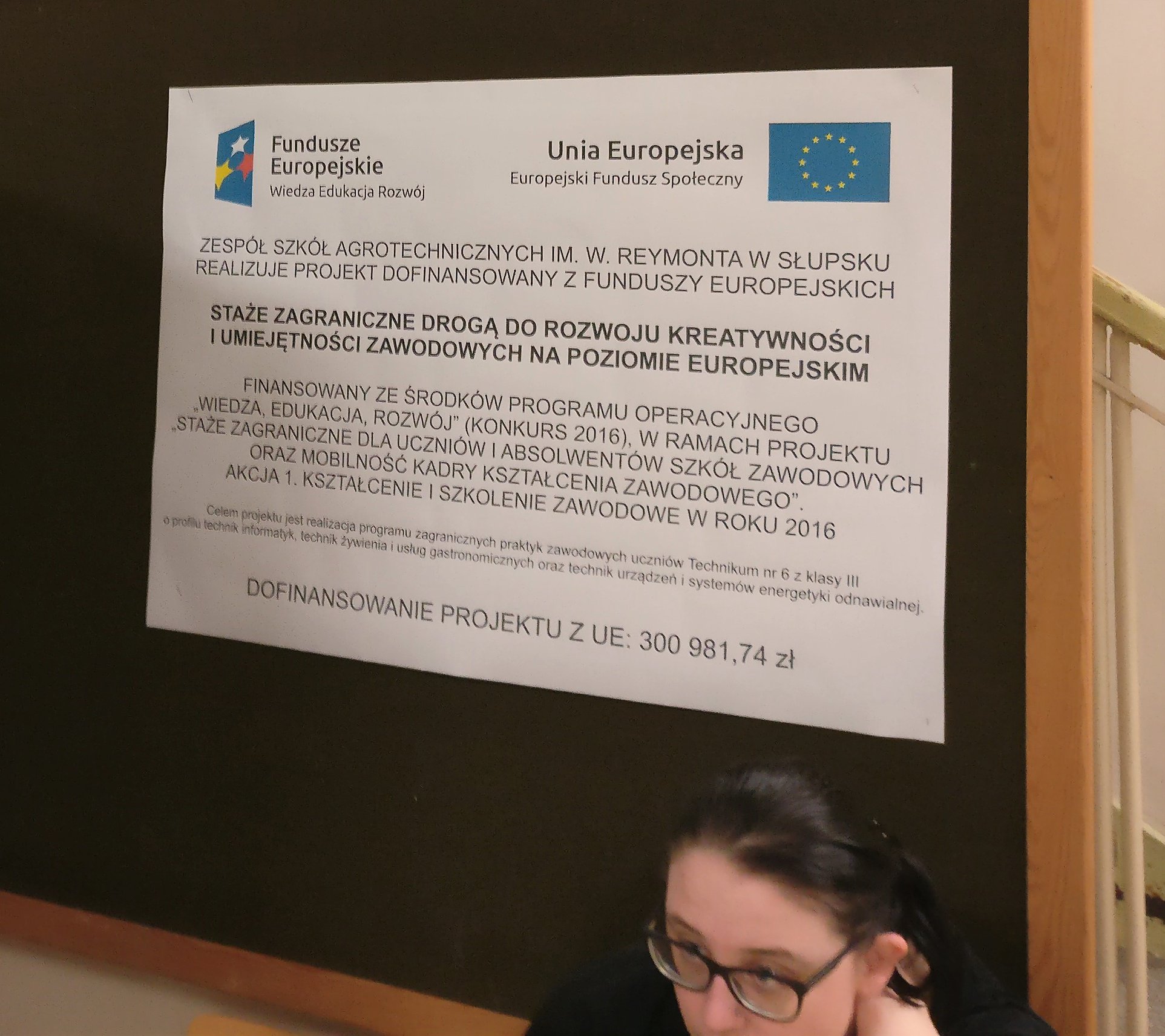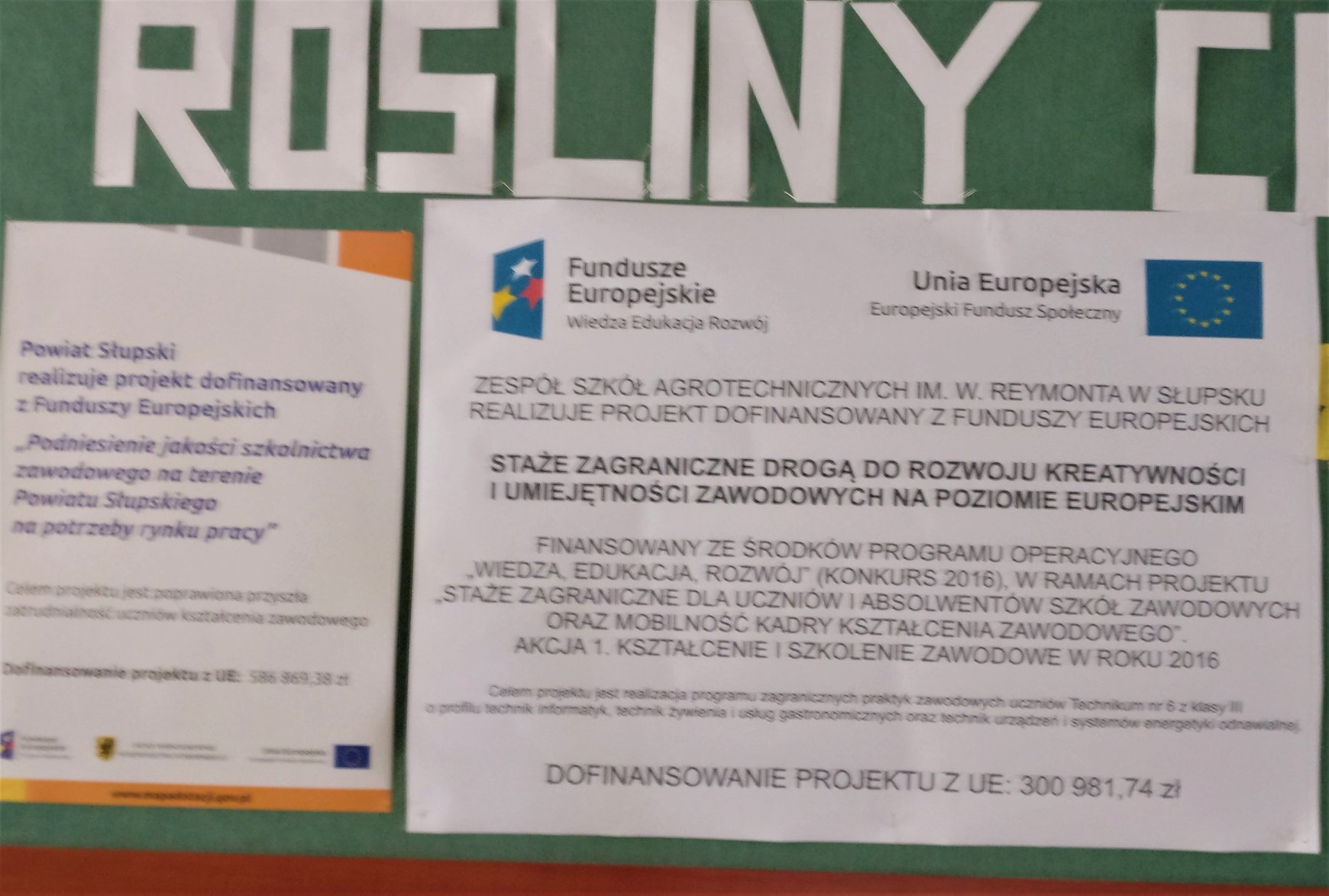 Projekt pn. "Staże zagraniczne drogą do rozwoju kreatywności i umiejętności zawodowych na poziomie europejskim" realizowany jest przez Zespól Szkół Agrotechnicznych/Starostwo Powiatowe w Słupsku na zasadach Programu Erasmus + finansowanego ze środków Programu Operacyjnego Wiedza Edukacja Rozwój (Konkurs 2016).