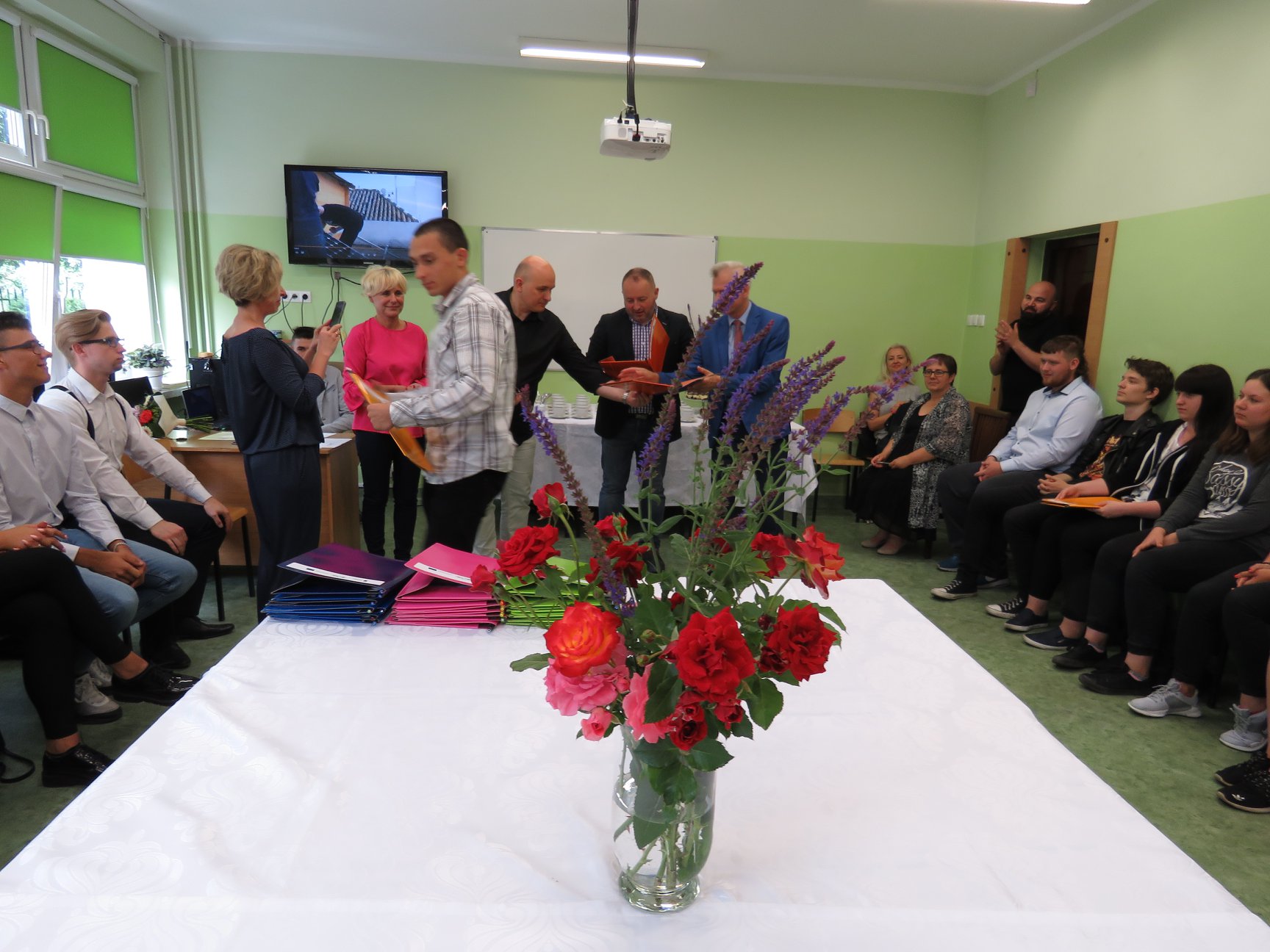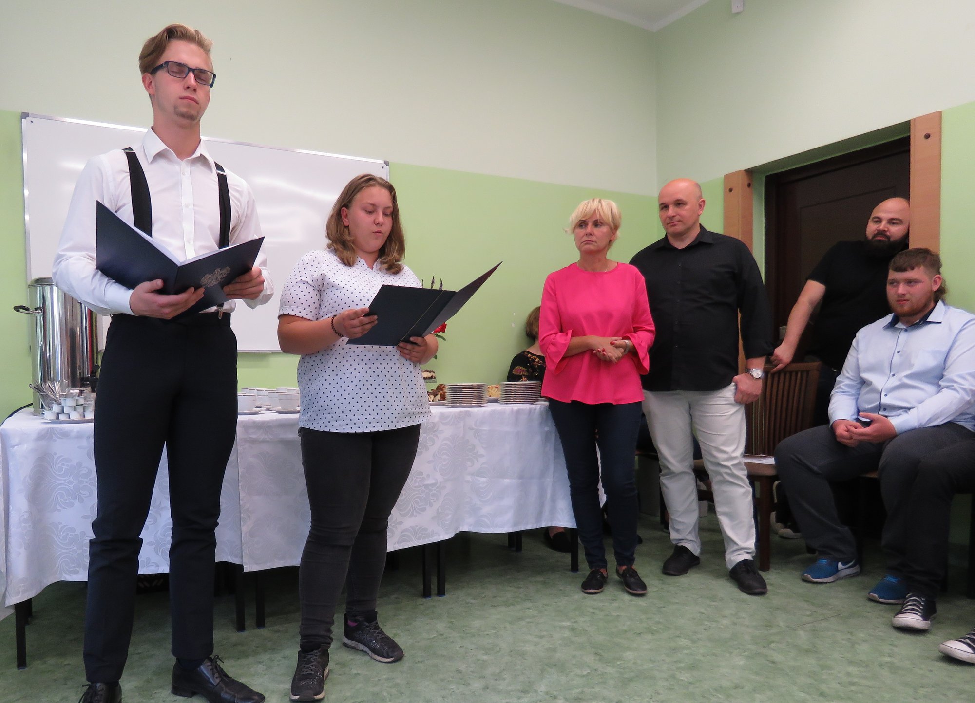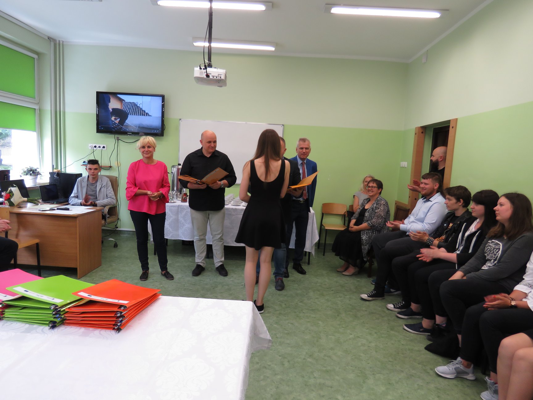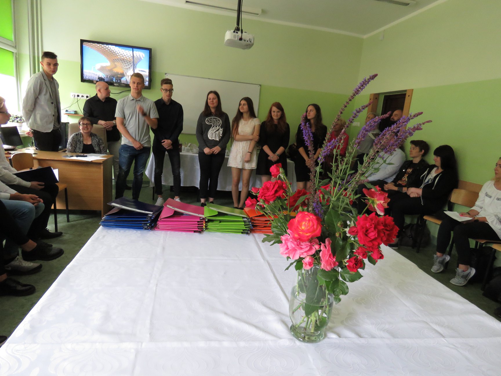 W uroczystości zakończenia projektu wzięli również udział zaproszeni goście, reprezentujący Starostwo Powiatowe w Słupsku, Kuratorium Oświaty w Gdańsku, lokalnych pracodawców przedstawiciele klas II i III technikum, oraz nauczyciele sprawujący opiekę nad uczniami w Hiszpanii.