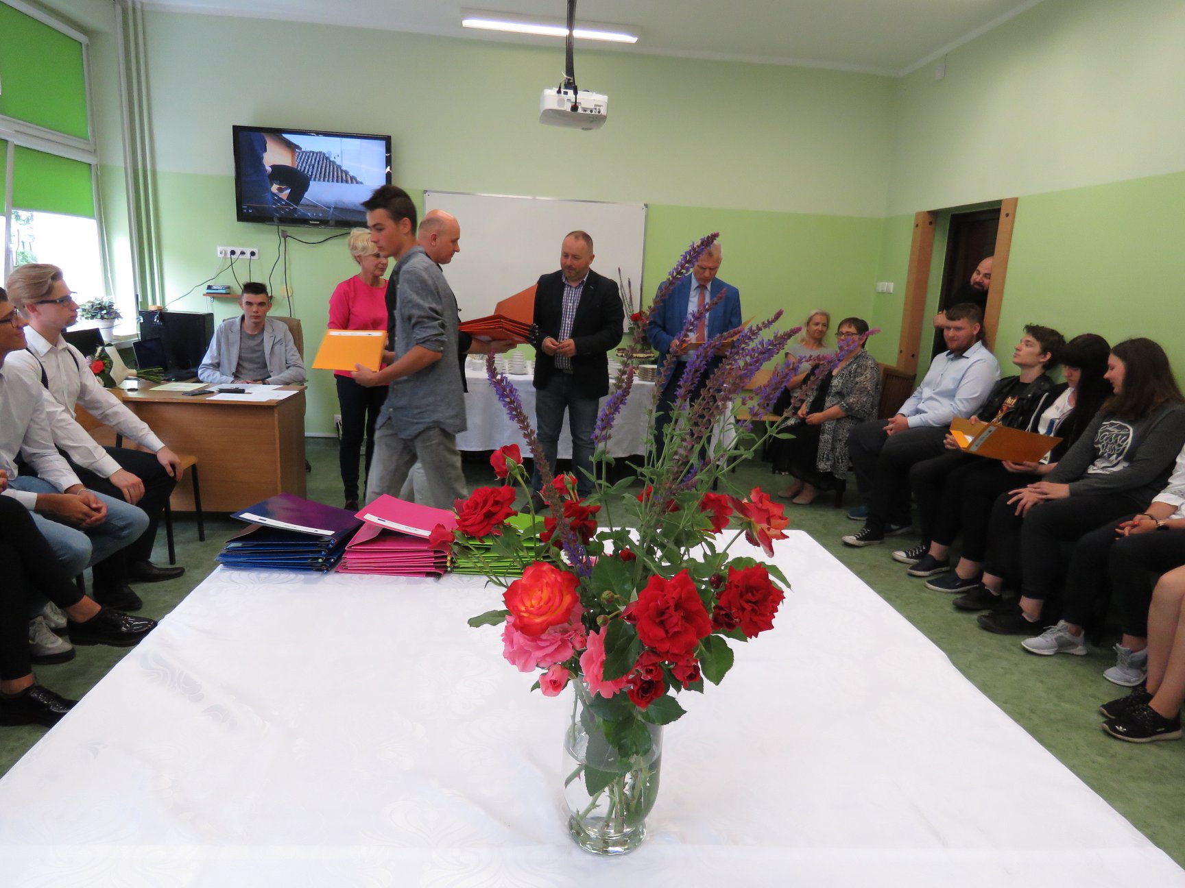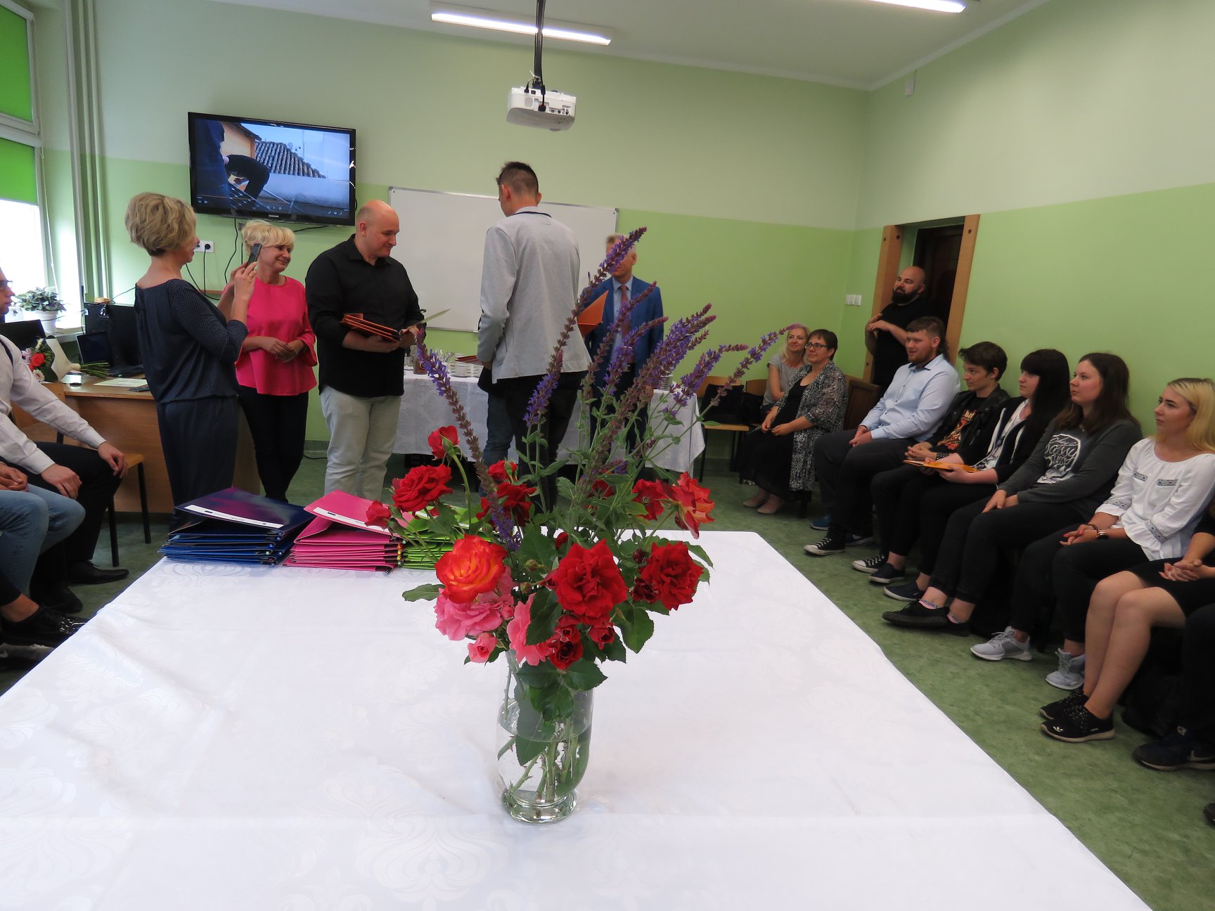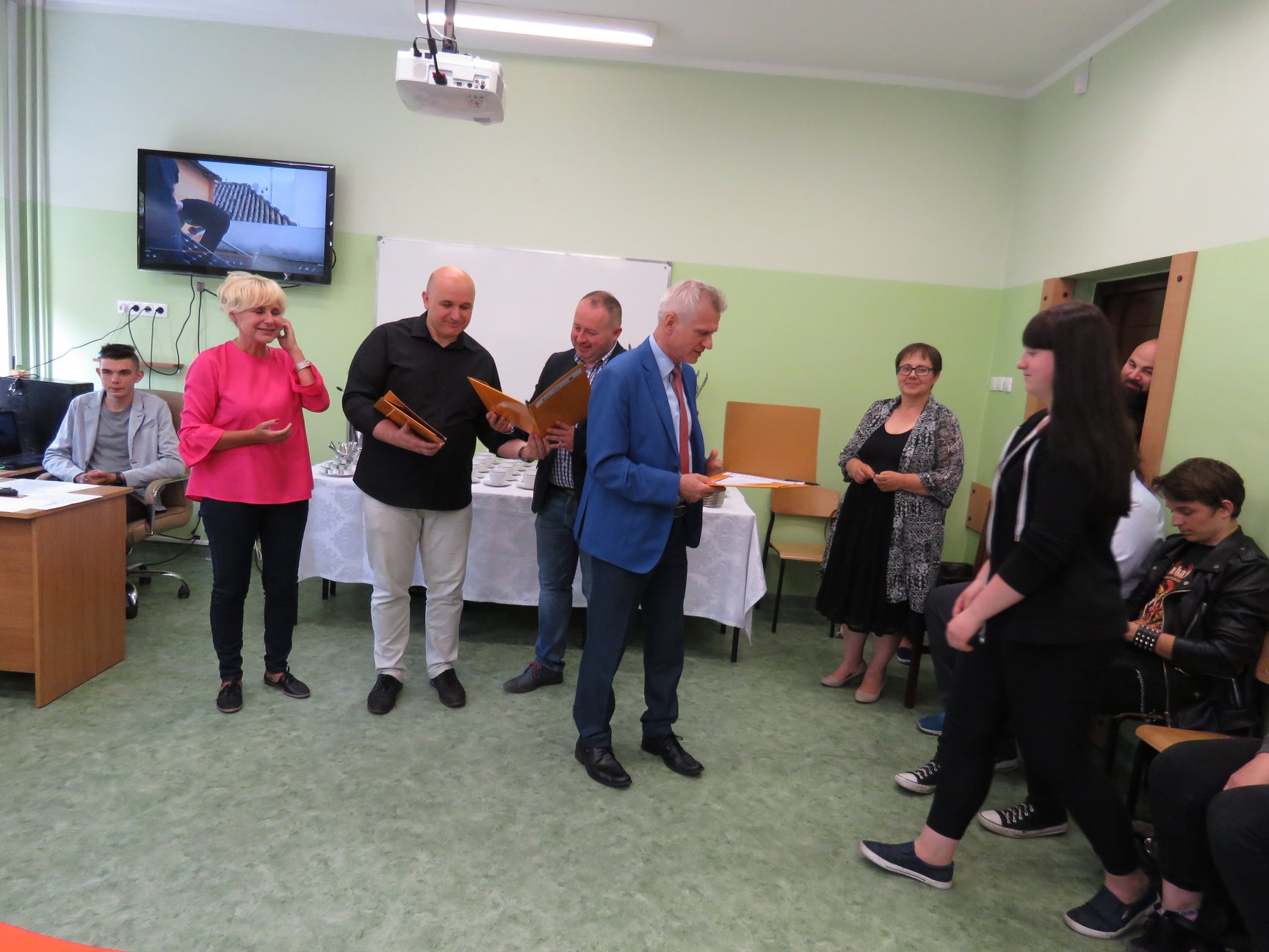 W uroczystości zakończenia projektu wzięli również udział zaproszeni goście, reprezentujący Starostwo Powiatowe w Słupsku, Kuratorium Oświaty w Gdańsku, lokalnych pracodawców przedstawiciele klas II i III technikum, oraz nauczyciele sprawujący opiekę nad uczniami w Hiszpanii.