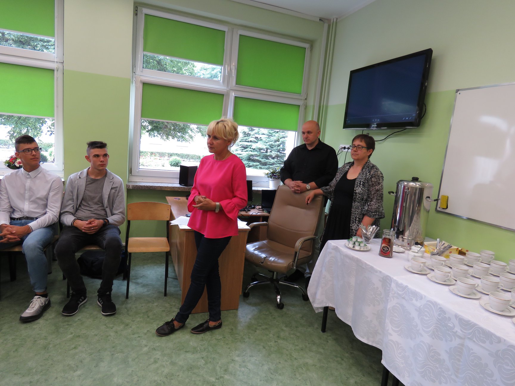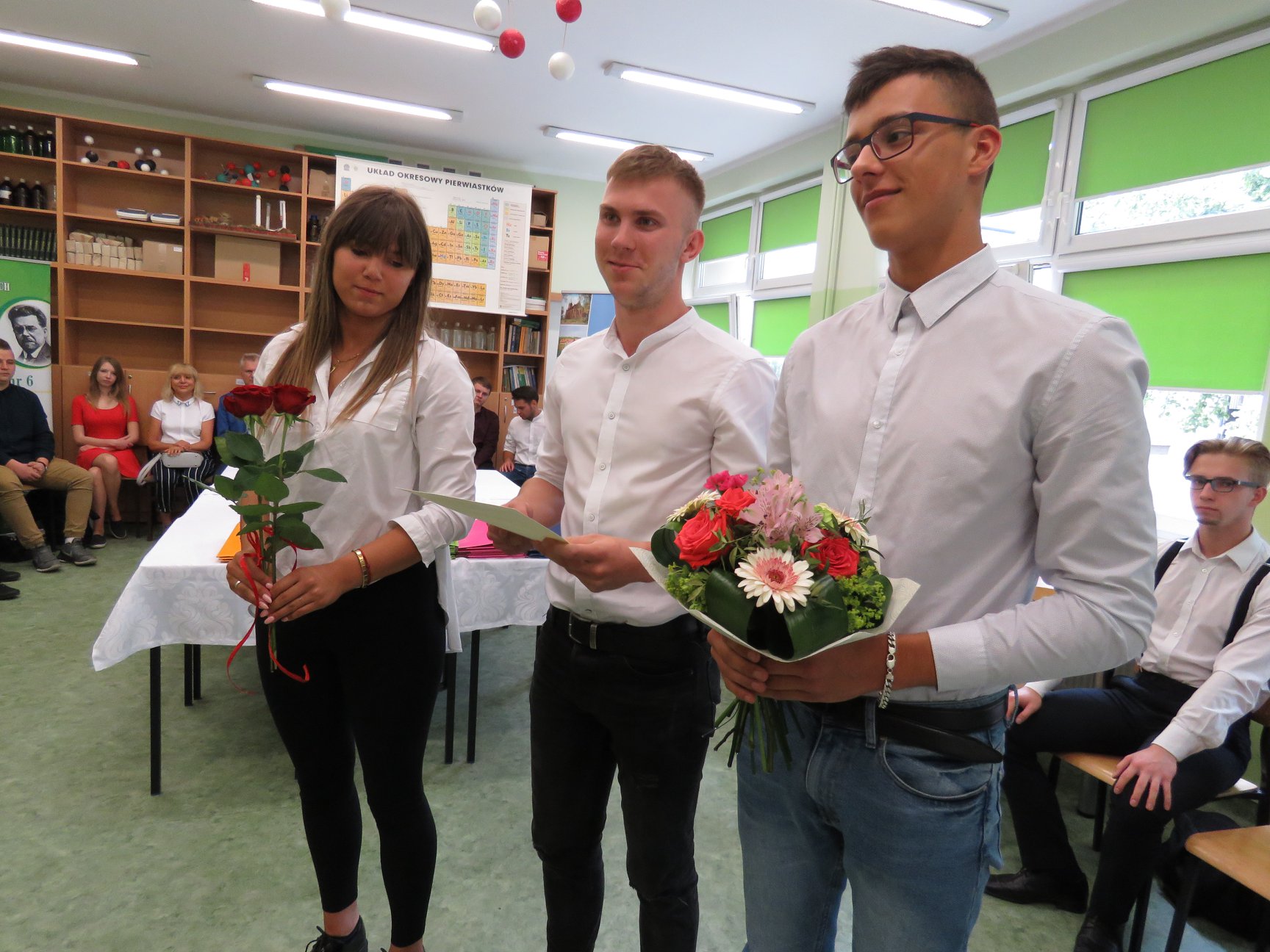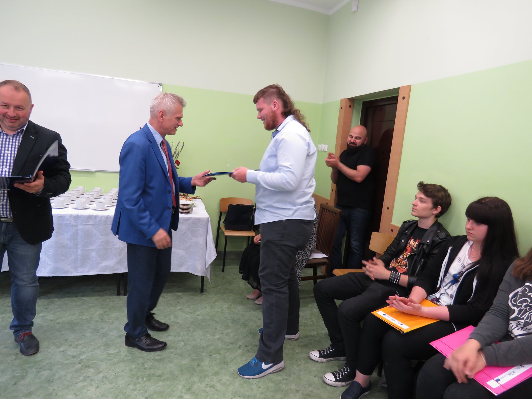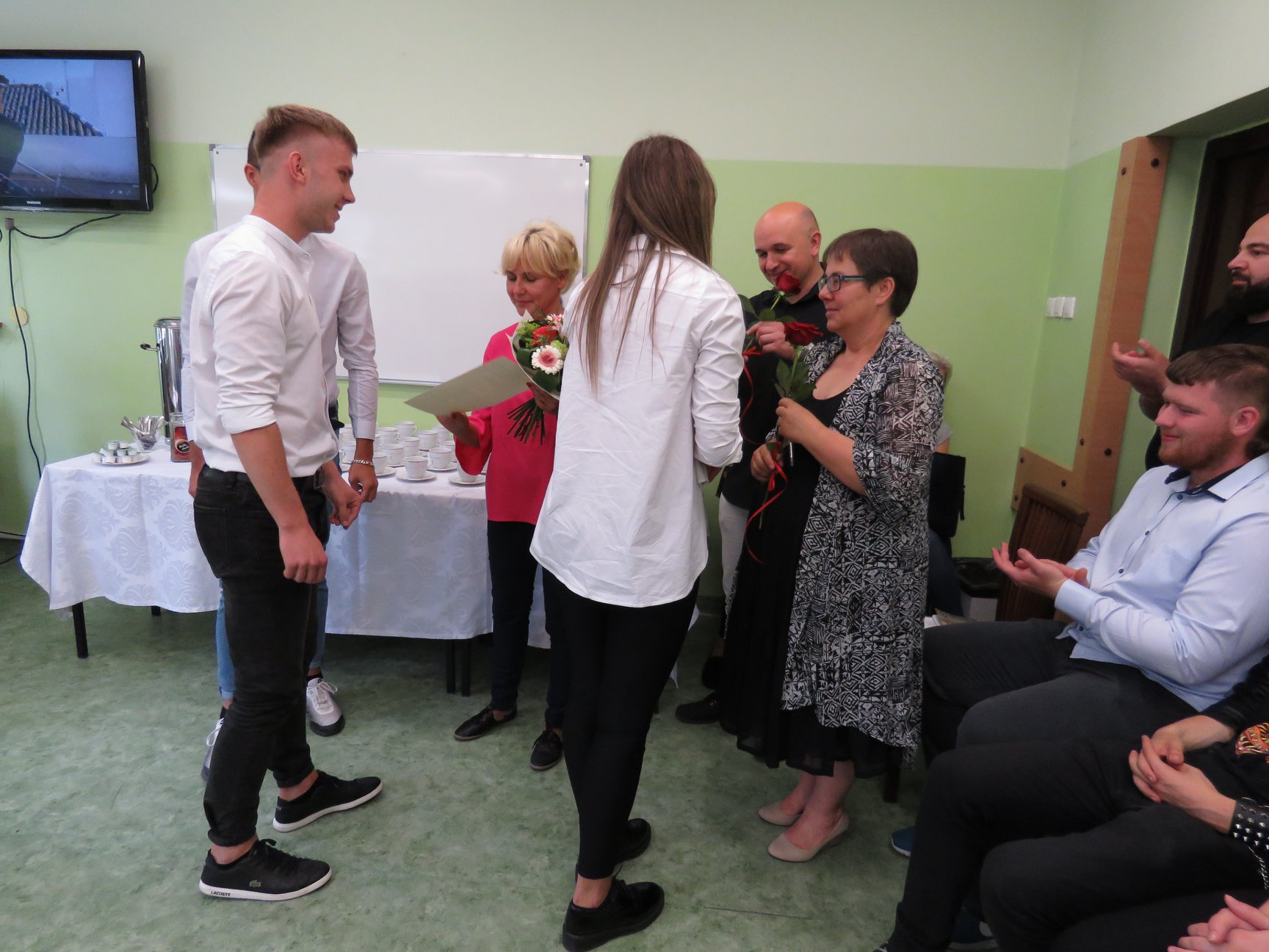 W uroczystości zakończenia projektu wzięli również udział zaproszeni goście, reprezentujący Starostwo Powiatowe w Słupsku, Kuratorium Oświaty w Gdańsku, lokalnych pracodawców przedstawiciele klas II i III technikum, oraz nauczyciele sprawujący opiekę nad uczniami w Hiszpanii.
